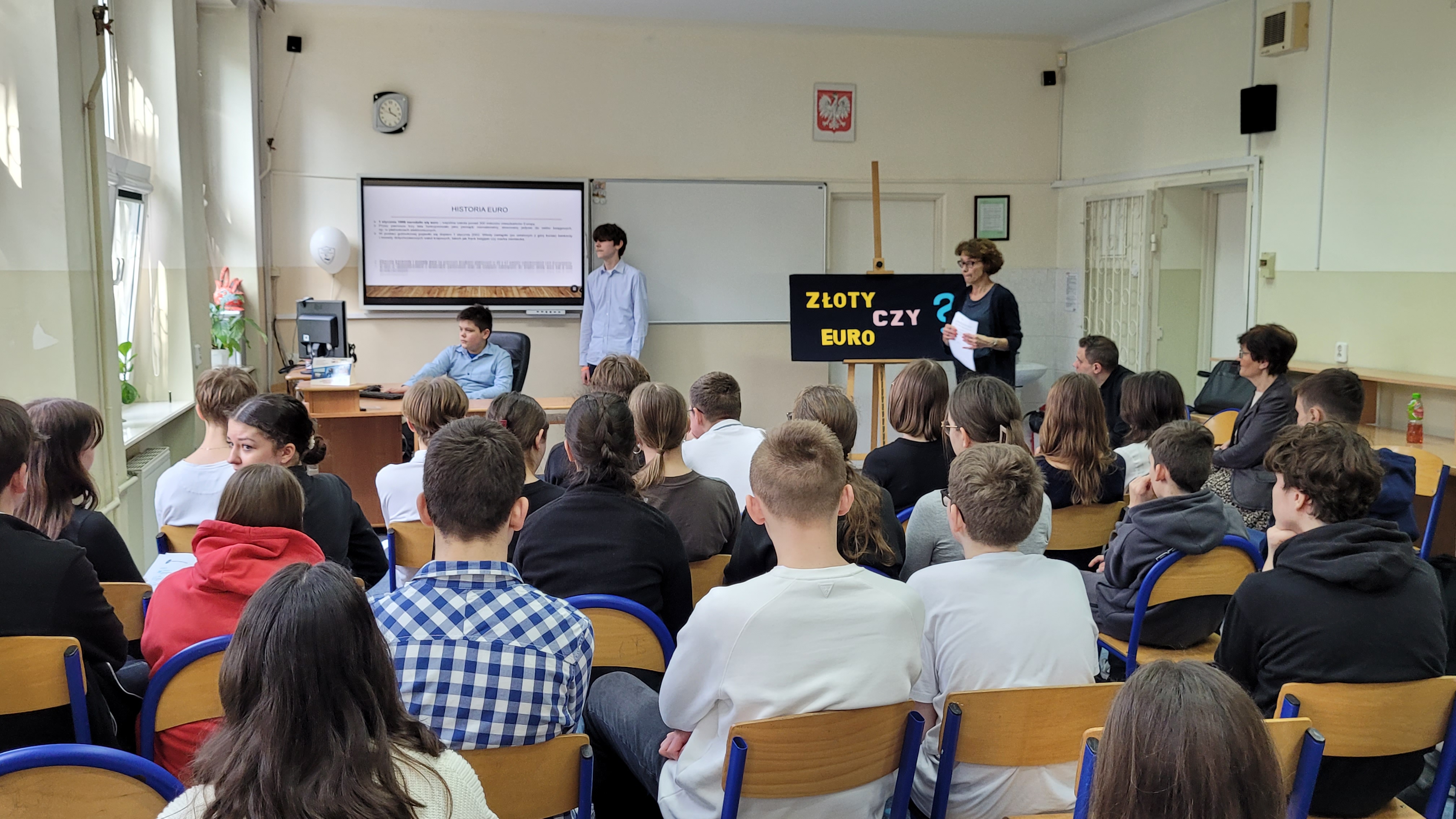 W ramach programu Złote Szkoły NBP - IV edycja, dnia 27 lutego 2024 roku odbyła się w naszej szkole debata szkolna pod tytułem "Złoty czy Euro?". Debata została zorganizowana z myślą o uczniach klas siódmych i ósmych, którzy zgromadzili się, aby podjąć dyskusję na temat dwóch kluczowych walut: polskiego złotego i euro.