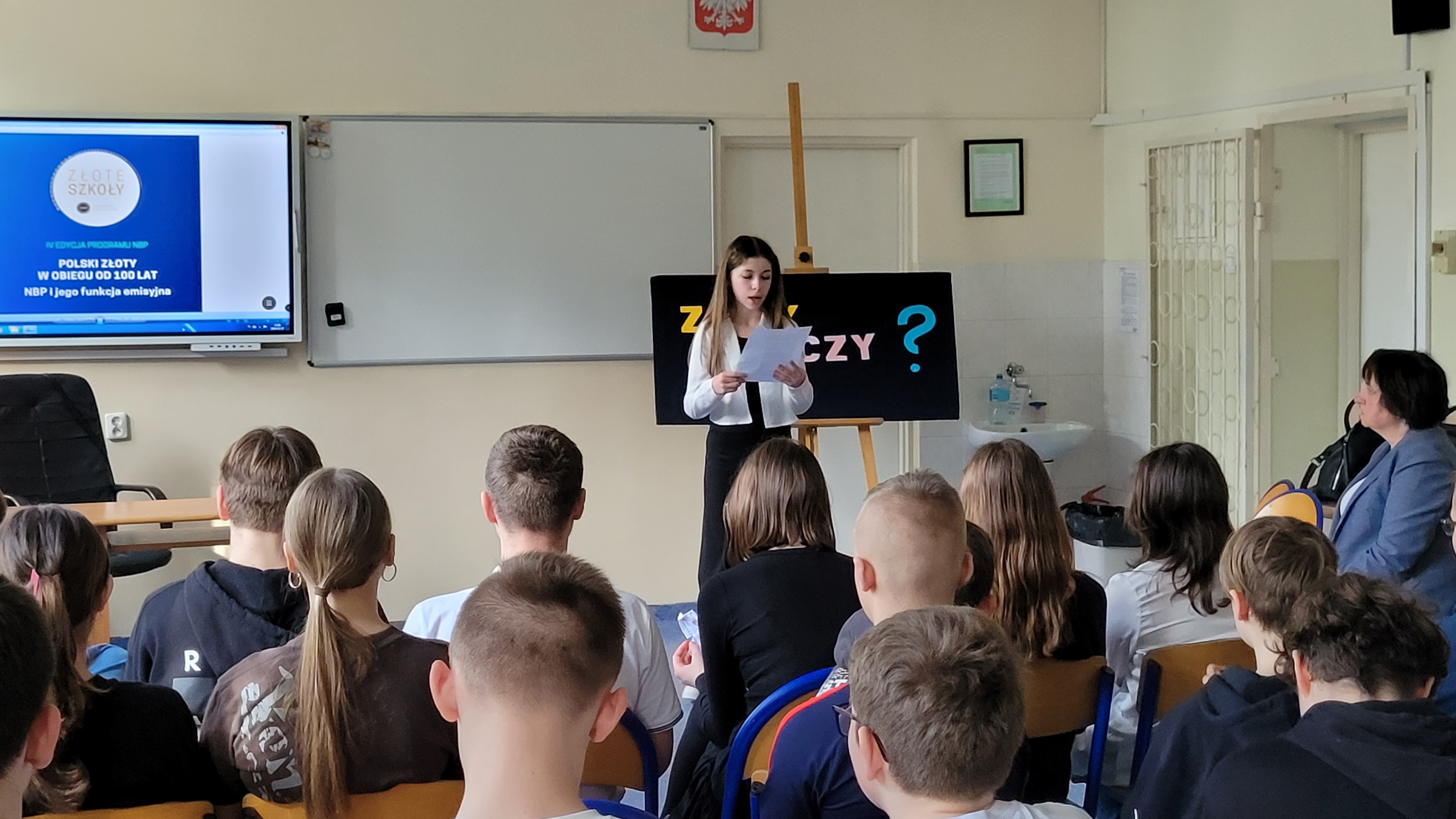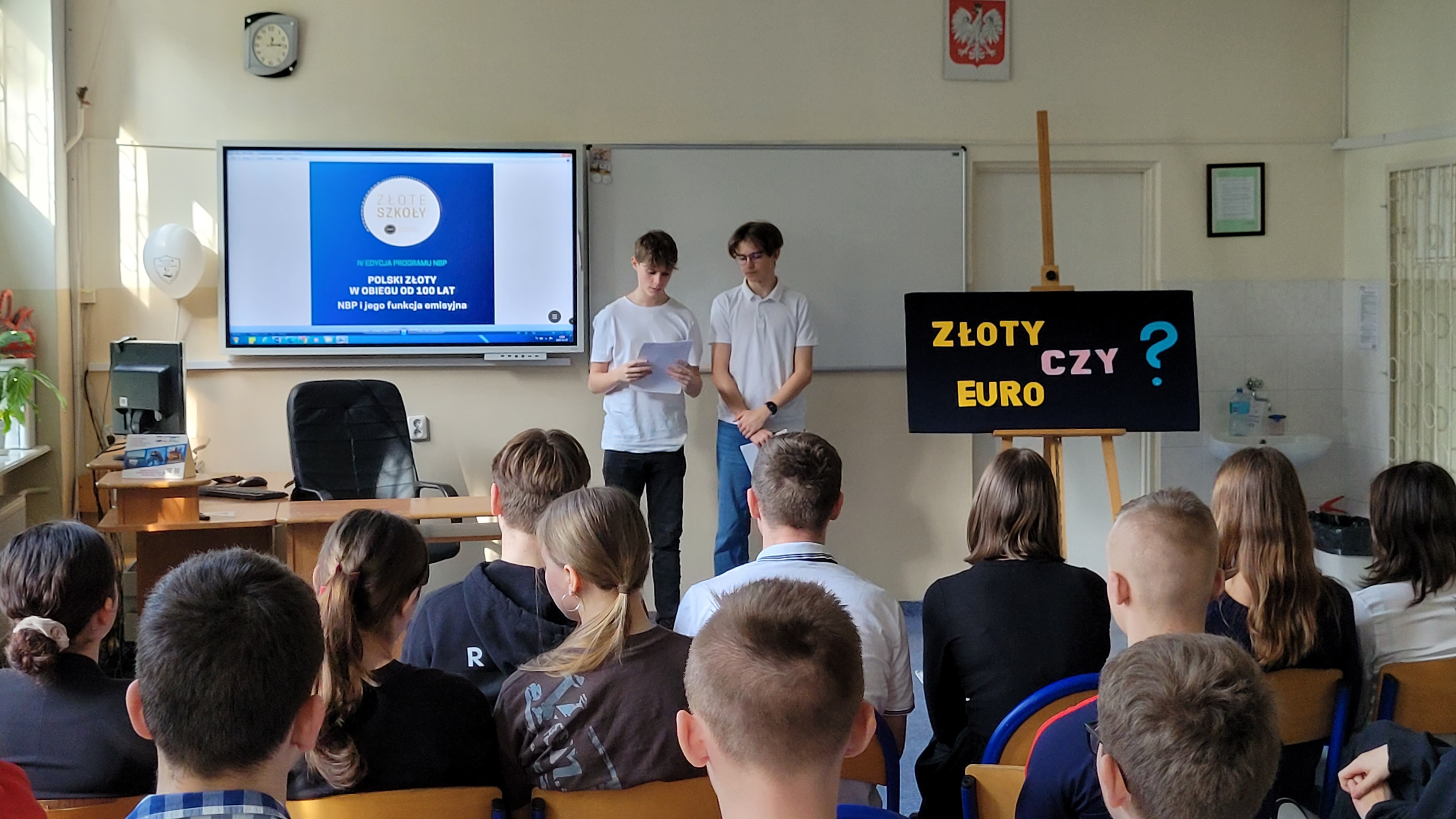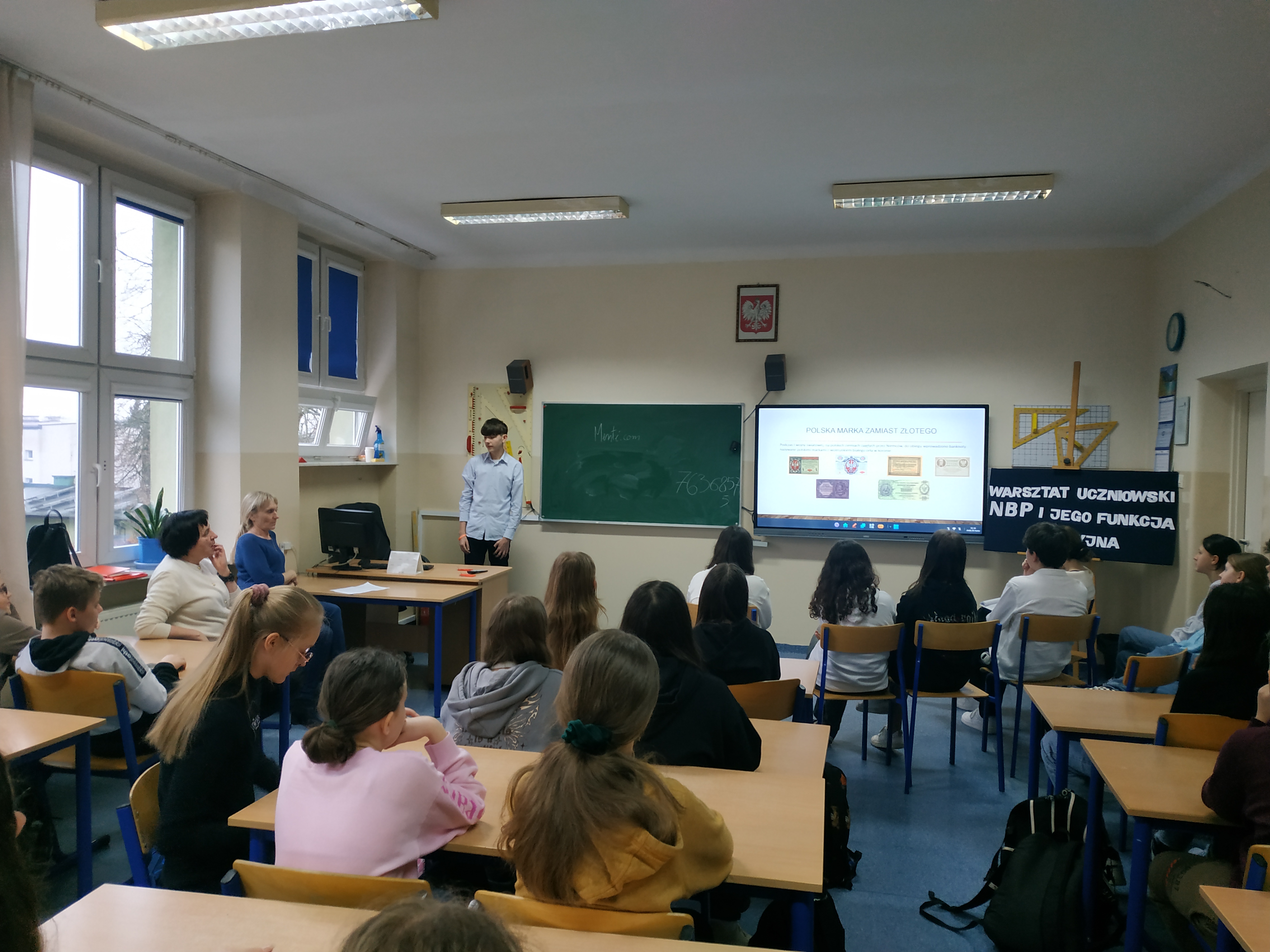 Dla uczniów klas starszych zajęcia koncentrowały się na bardziej zaawansowanych zagadnieniach związanych z historią polskiego złotego i jego funkcjonowaniem w gospodarce. Uczniowie mieli okazję m.in. eksplorować różne aspekty waluty narodowej poprzez zadania praktyczne i analizę danych historycznych. Rozwijali swoje umiejętności pracy z arkuszem kalkulacyjnym. Mieli możliwość spotkania z przedstawicielem Polskiego Towarzystwa Numizmatycznego.