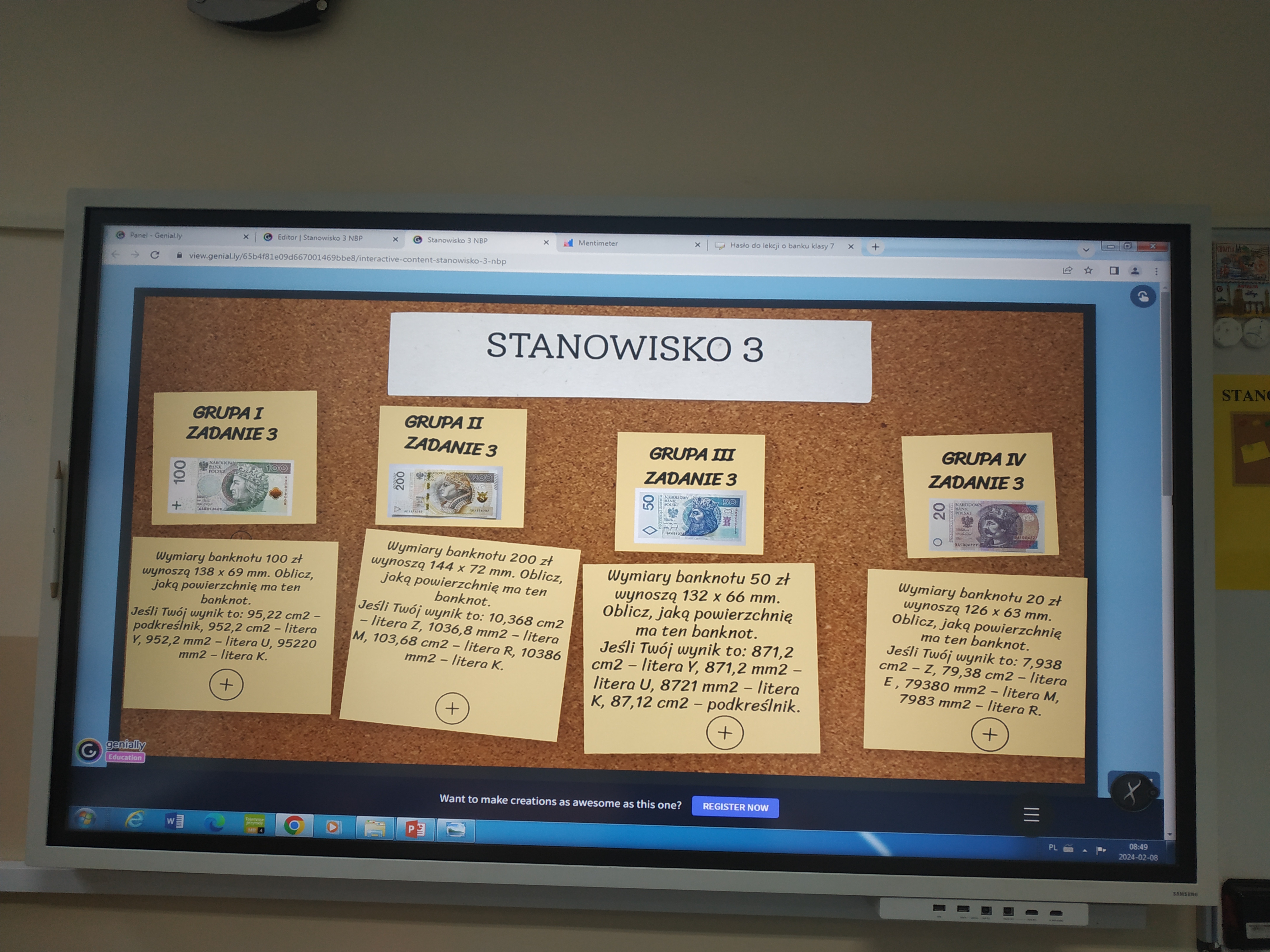 Po prezentacjach i filmach uczestnicy mieli możliwość sprawdzenia swojej wiedzy na temat NBP i jego funkcji emisyjnej, rozwiązując zadania na platformach LearningApps oraz Kahoot. Zadania te zostały również opracowane przez członków Drużyny.