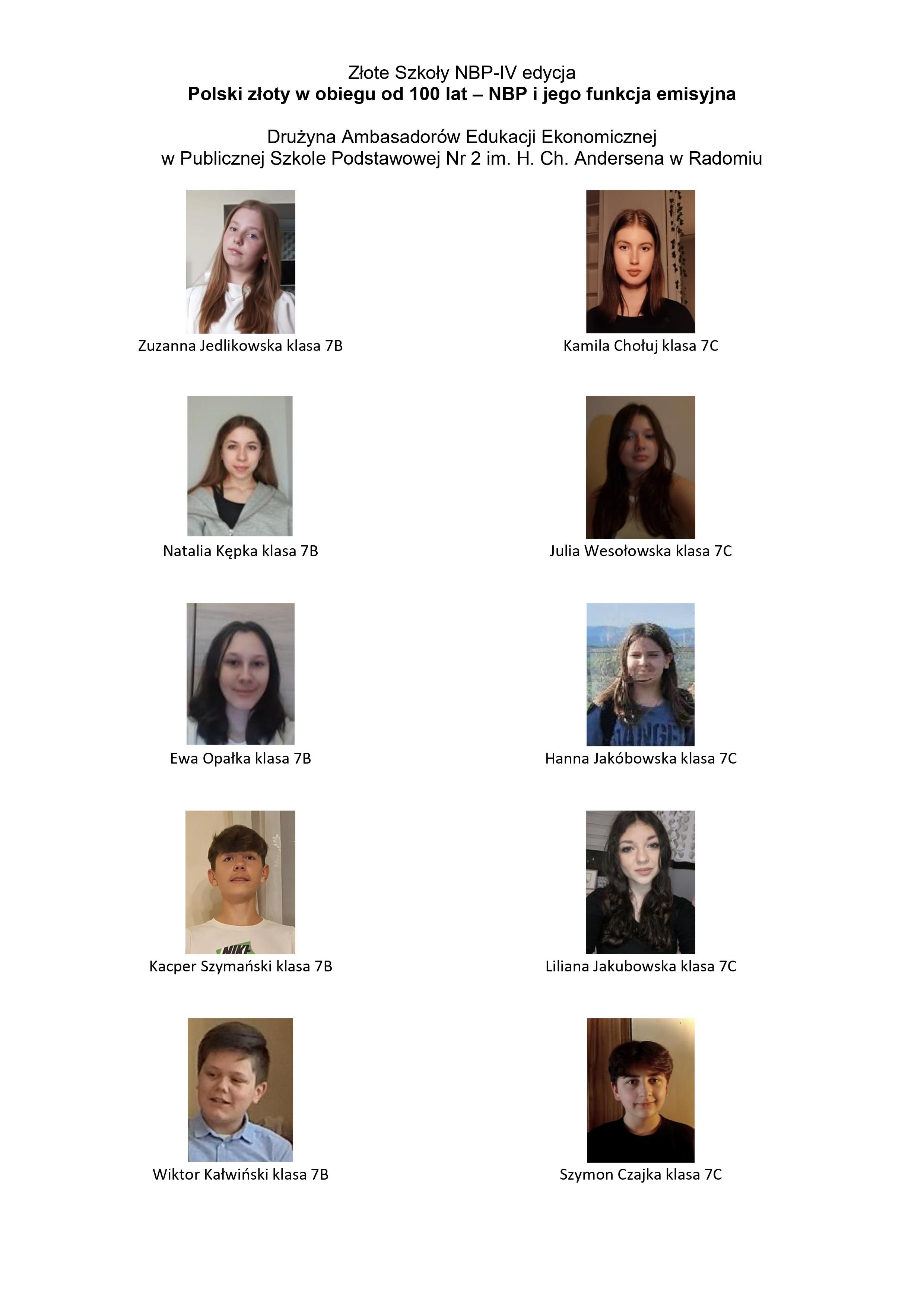 W lutym i marcu 2024 roku w Publicznej Szkole Podstawowej nr 2 im. H. Ch. Andersena w Radomiu miała miejsce realizacja zadania "Lekcja z ekonomią - Polski złoty w obiegu od 100 lat" w ramach programu Złote Szkoły NBP – IV edycja POLSKI ZŁOTY W OBIEGU OD 100 LAT. NBP I JEGO FUNKCJA EMISYJNA.