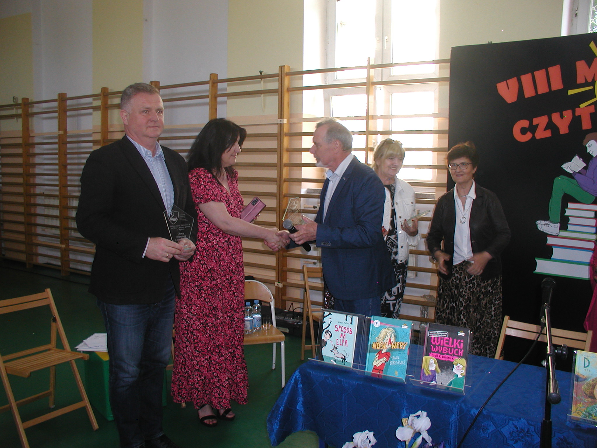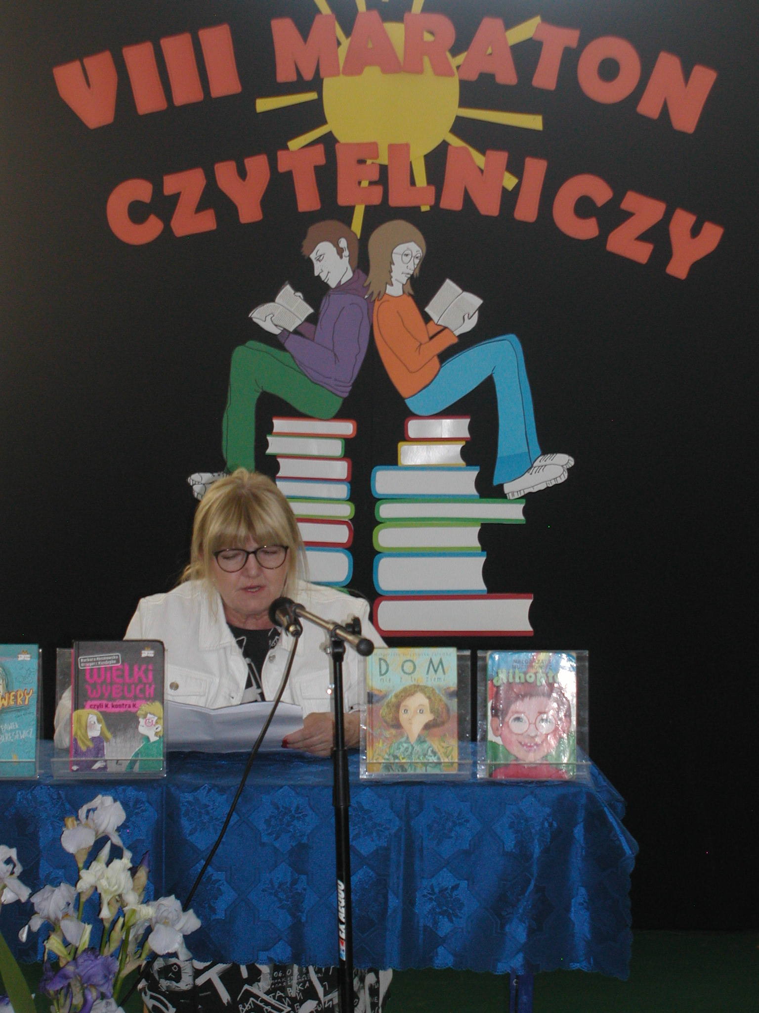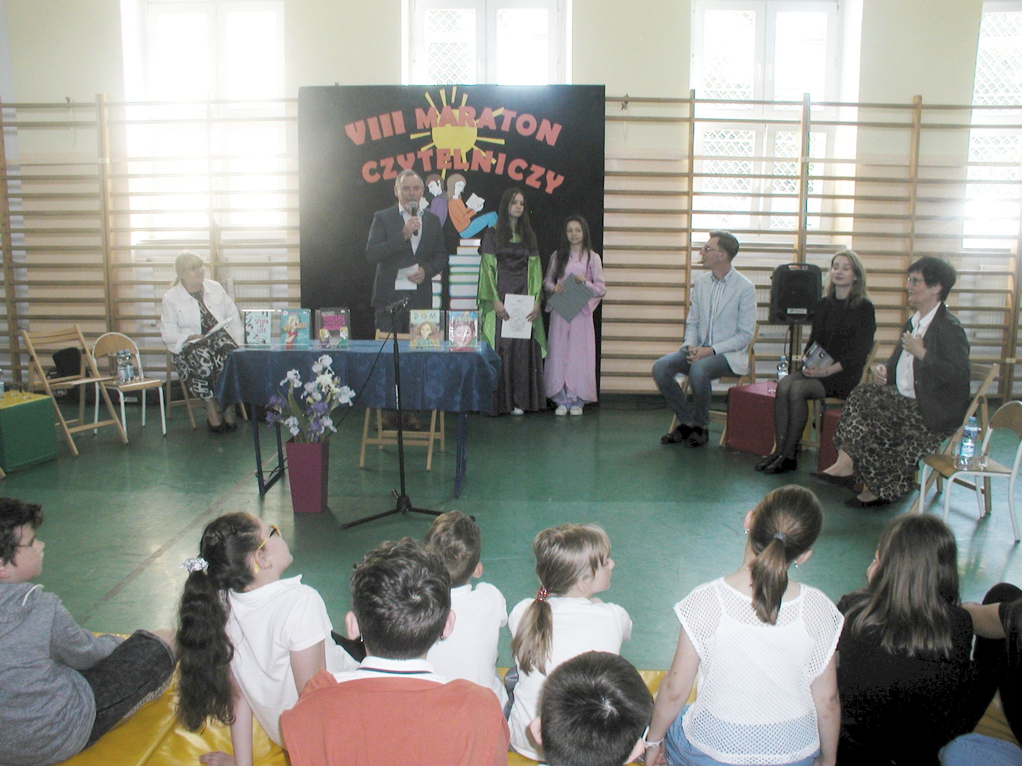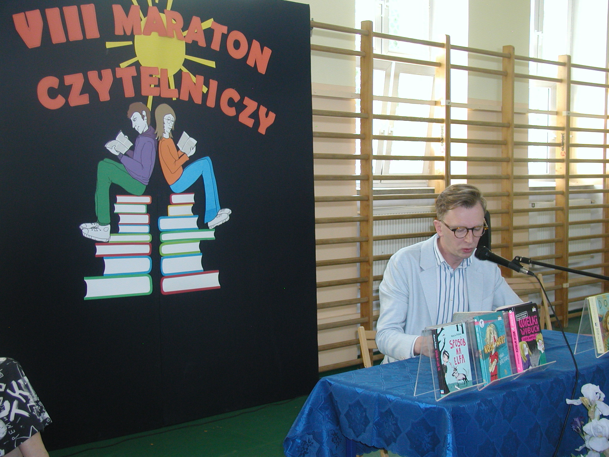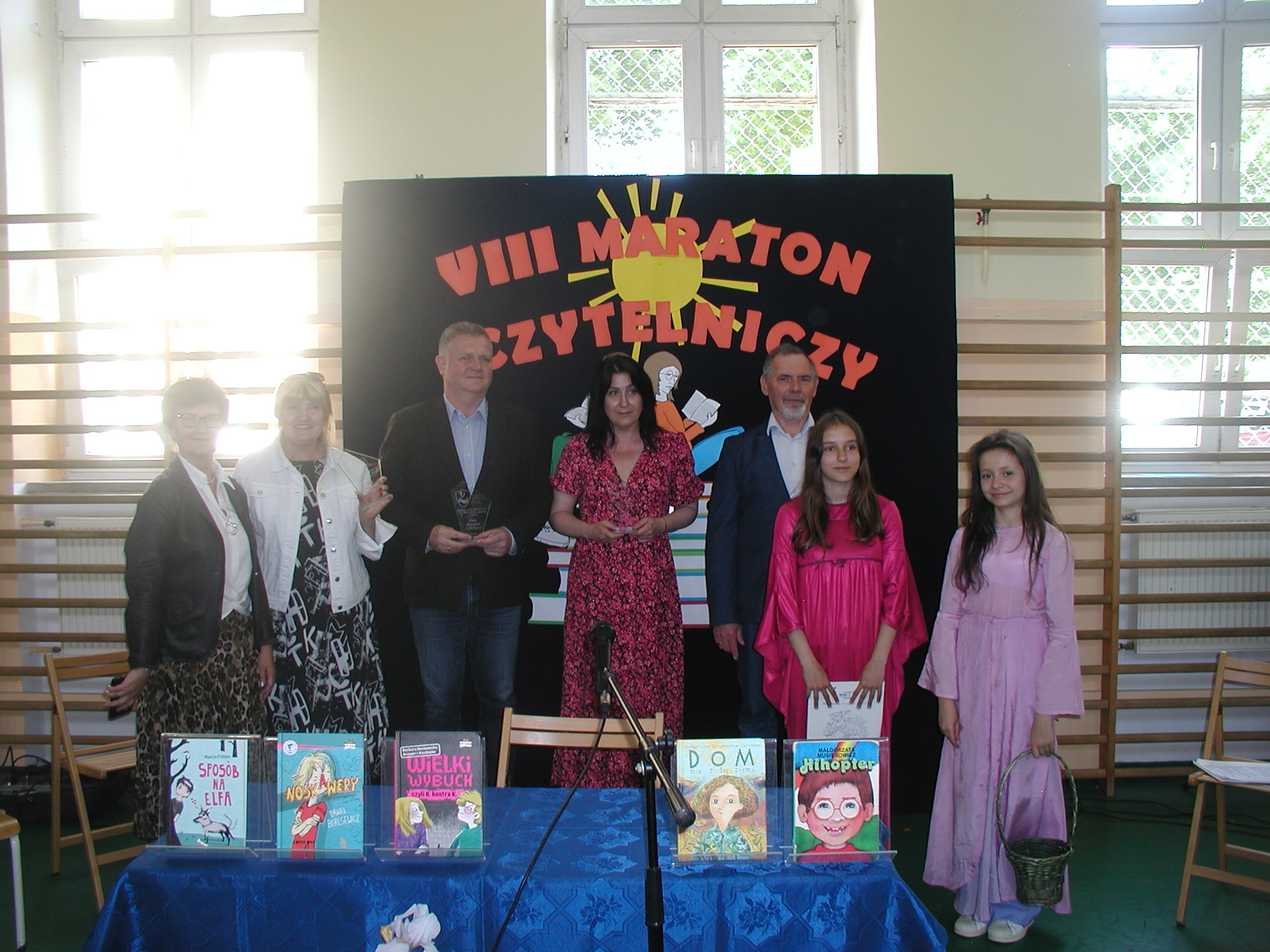 VIII Maraton czytelniczy już za nami. W ostatnim dniu gościliśmy: panią Grażynę Czyżewską – St. Wizytator Kuratorium Oświaty w Warszawie delegatura w Radomiu, pana Przemysława Czaję – dyrektora Miejskiej Biblioteki Publicznej im. Józefa A. i Andrzeja S. Załuskich w Radomiu, panią Katarzynę Kosternę - kierownik działu promocji Miejskiej Biblioteki Publicznej w Radomiu, pana Adama Duszyka – zastępcę dyrektora Muzeum im. Jacka Malczewskiego w Radomiu, panią Iwonę Pulnar – Duszyk - Kierownika Działu Naukowo - Oświatowego. Goście czytali uczniom klas 7 i 8 opowiadania z książek: „Noskavery” Pawła Beręsewicza i „Wielki wybuch” Barbary Kosmowskiej i Grzegorza Kasdepka. Jak zawsze za uważne słuchanie i poprawne odpowiedzi na pytania dotyczące czytanego tekstu na uczniów czekały słodkie niespodzianki. Z niecierpliwością czekamy na kolejny - XIX maraton:)