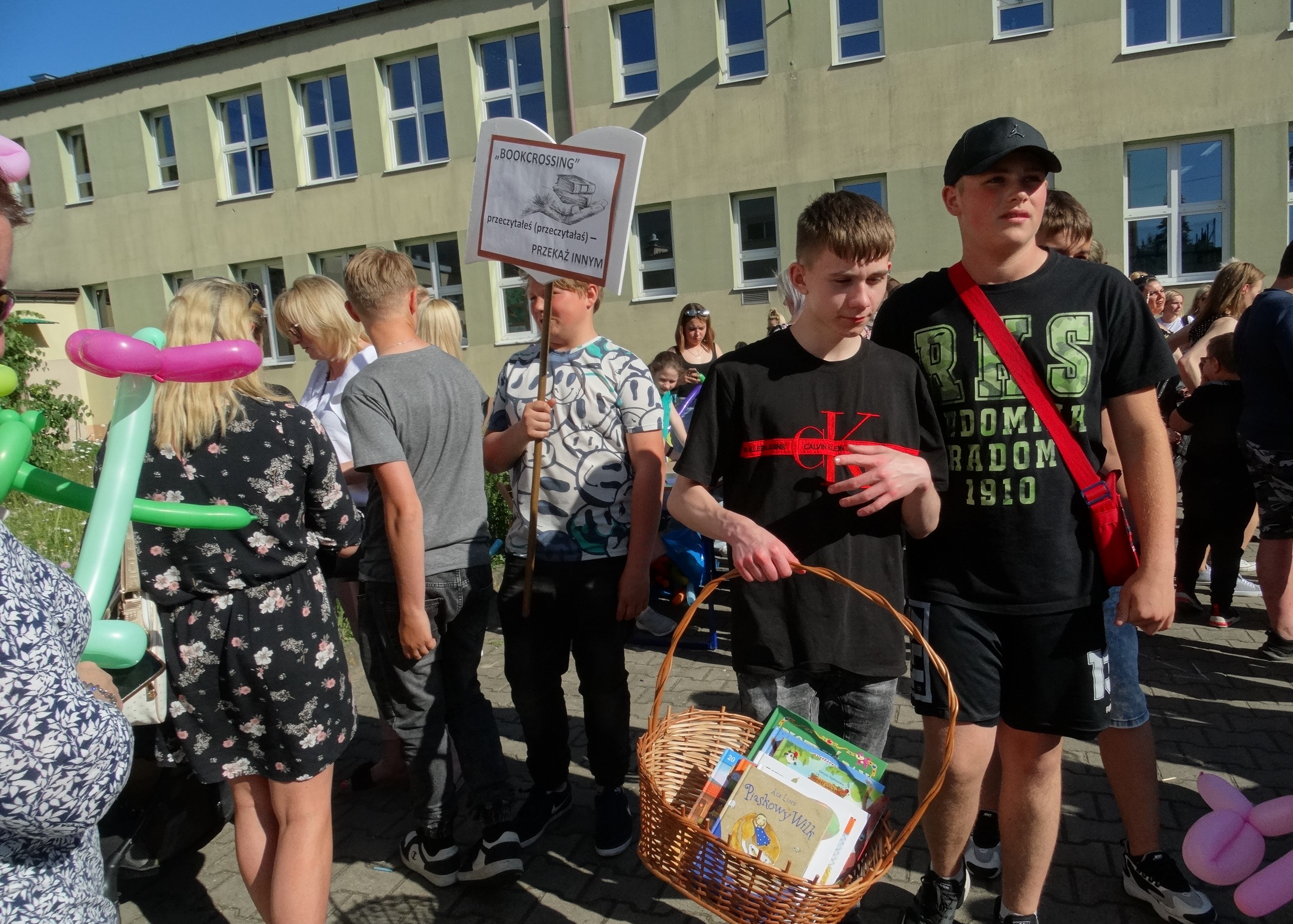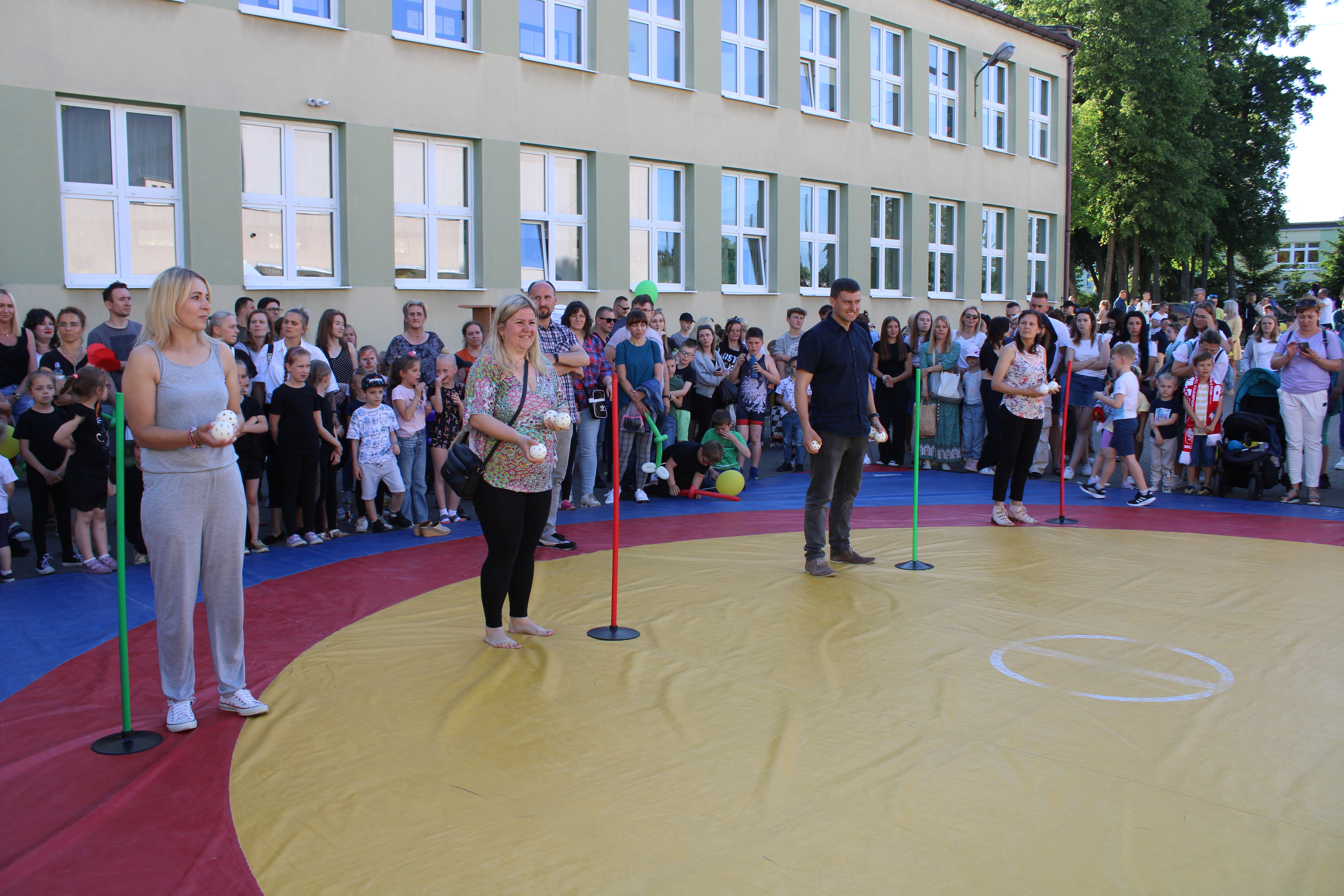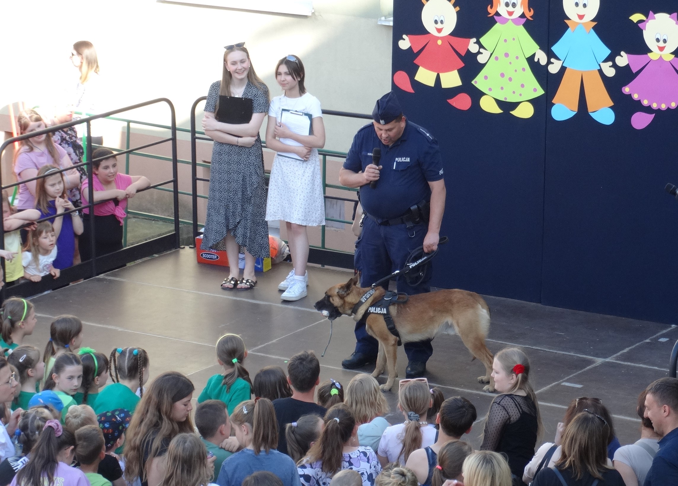 Dnia 31.05.2023 r. w godzinach 16.00 - 18.00 na terenie szkoły odbył się Festyn Rodzinny. Uczniowie z klas 0-8 zaprezentowali na scenie swoje talenty. W trakcie festynu można było skorzystać z licznych atrakcji takich jak: dmuchańce, malowanie twarzy, kolorowanki, bańki mydlane, modelowanie balonów. Można było zakupić ciasta, watę cukrową i popcorn. W ramach projektu UNICEF Klimat dla Młodych została zaprezentowana wystawa plastyczna prac uczniów o tematyce: Jak zanieczyszczenie środowiska wpływa na zdrowie człowieka. Kolejnym działaniem w ramach realizacji projektu był bookcrossing „Przeczytałeś- Przekaż dalej”. Każdy zainteresowany mógł wybrać sobie książkę z wielu oferowanych tematyk i zabrać ją ze sobą do domu. MOPS zorganizował loterię fantową a wolontariusze rozdawali wszystkim dzieciom balony, lizaki i cukierki. Zaproszeni goście GIMART, FRAJDA i RESZKA zaakcentowali swoimi występami zżycie z lokalną społecznością. Gościliśmy policjanta, który zaprezentował psa policyjnego i krótkie informacje o jego szkoleniu. W trakcie festynu była możliwość znakowania rowerów przez Wydział Prewencji Komendy Miejskiej Policji oraz zaprezentowano dwa motocykle wykorzystywane w codziennej pracy użyczone dzięki uprzejmości Wydziału Ruchu Drogowego Komendy Miejskiej Policji w Radomiu.