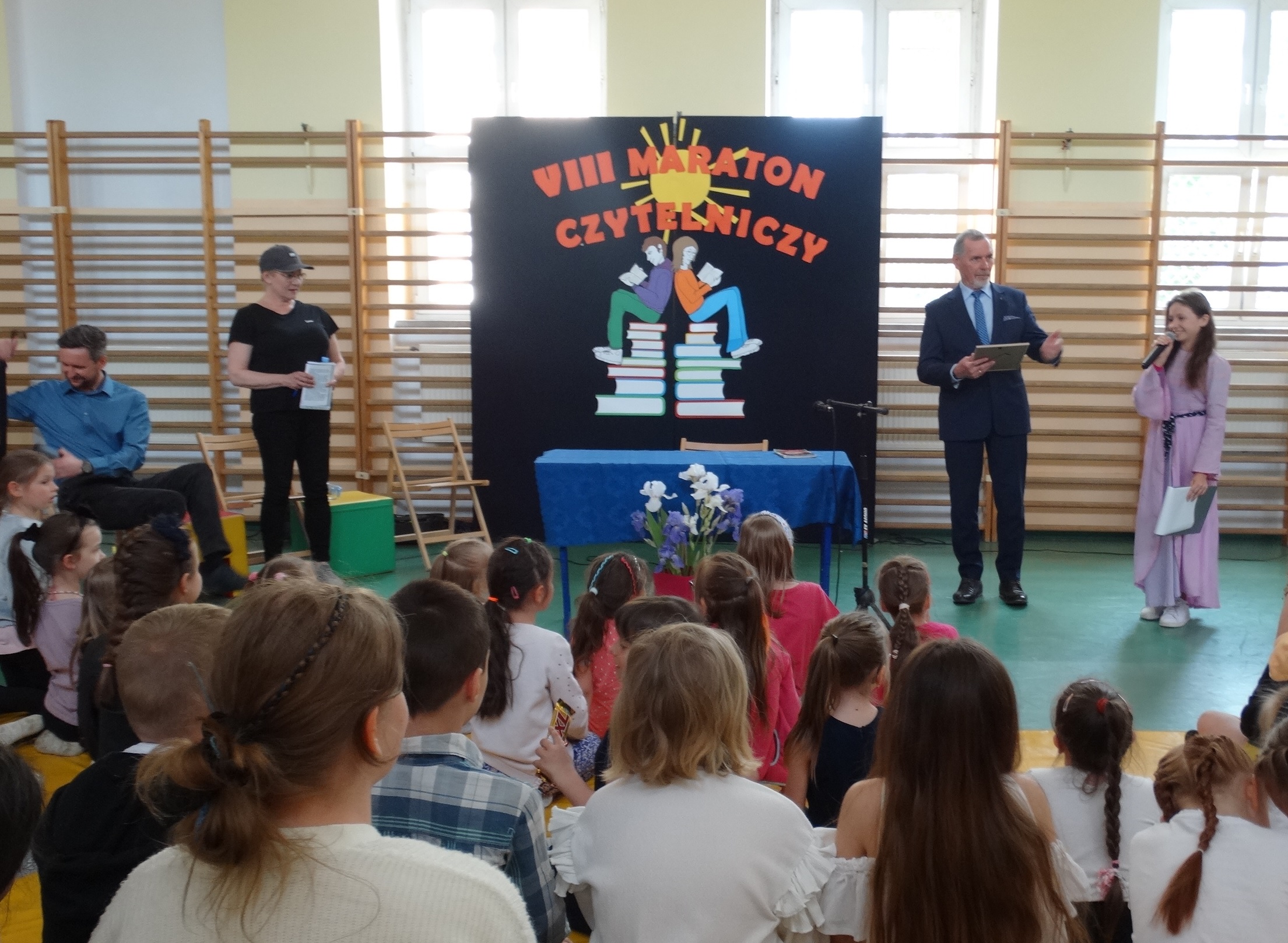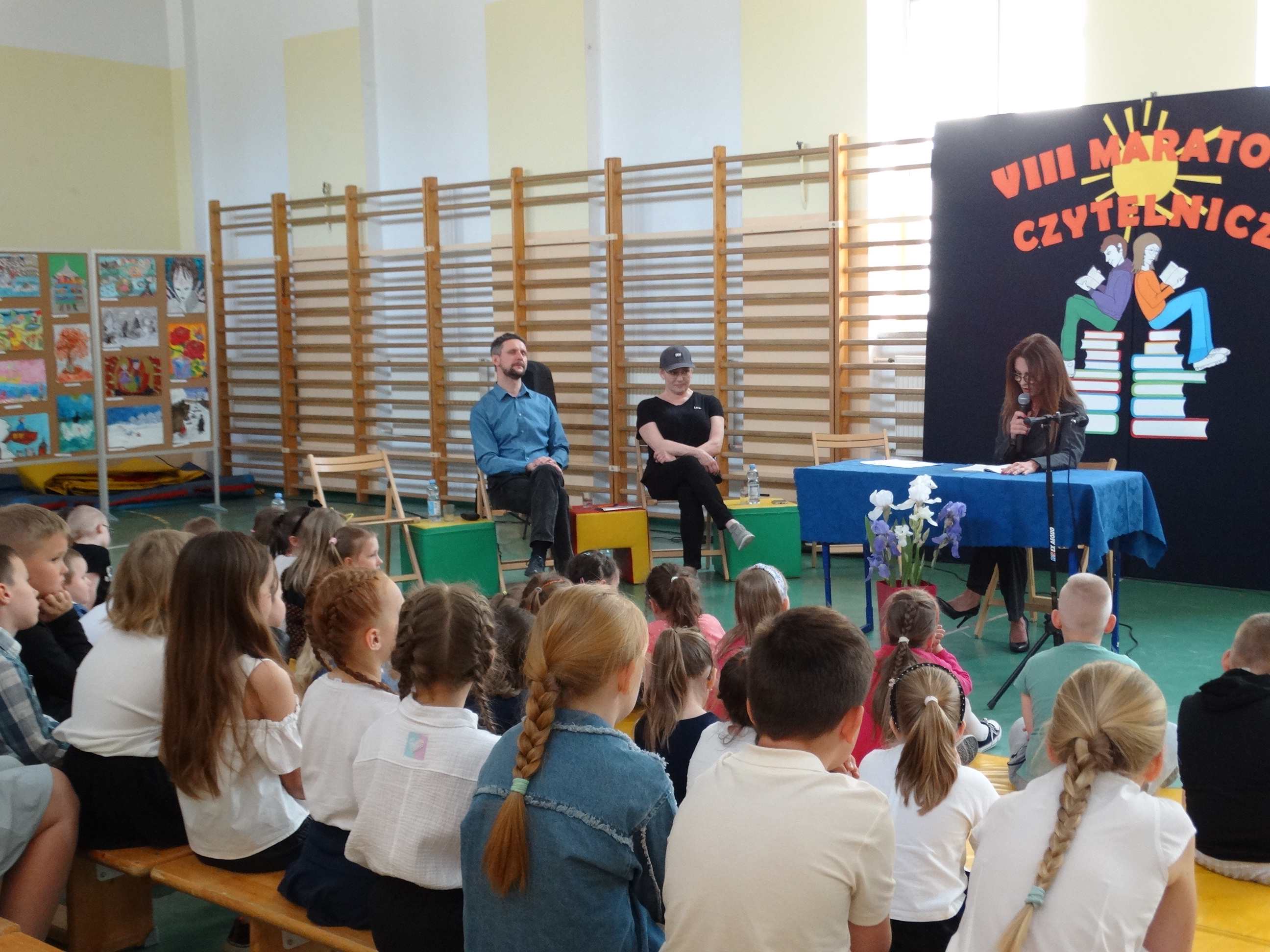 29.05.2023 r. w naszej szkole rozpoczął się VIII Maraton Czytelniczy. Zaproszeni przez nas goście: pani Katarzyna Kalinowska - Zastępca Prezydenta Miasta Radomia, pani Izabela Brejtkop - aktorka Teatru Powszechnego im. Jana Kochanowskiego w Radomiu i pan Andrzej Ciesielski - dyrektor kina Helios czytali fragmenty książki Małgorzaty Musierowicz „Hihopter”. Słuchaczami byli uczniowie z klas I– III i z oddziału przedszkolnego naszej szkoły. Zebrani z ciekawością wysłuchali tekstów i wzięli udział w przygotowanych quizach.