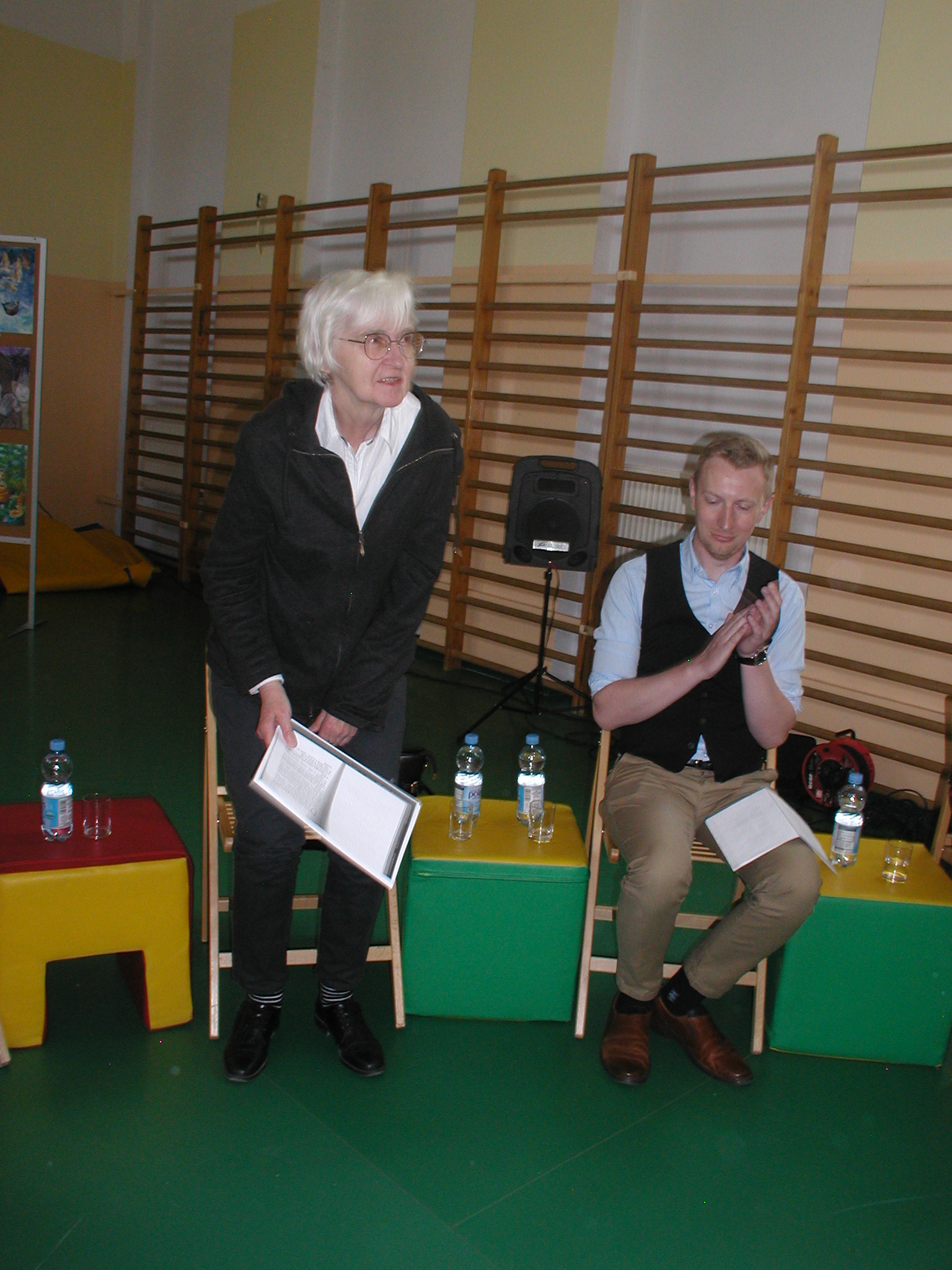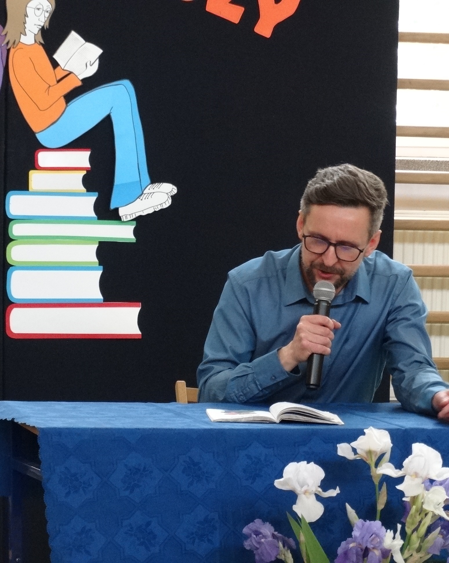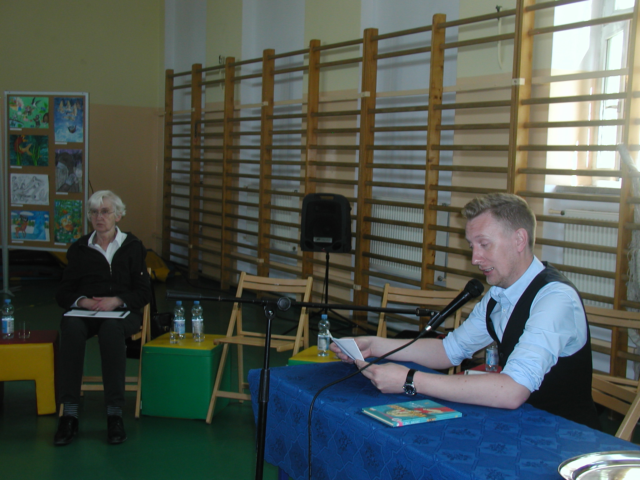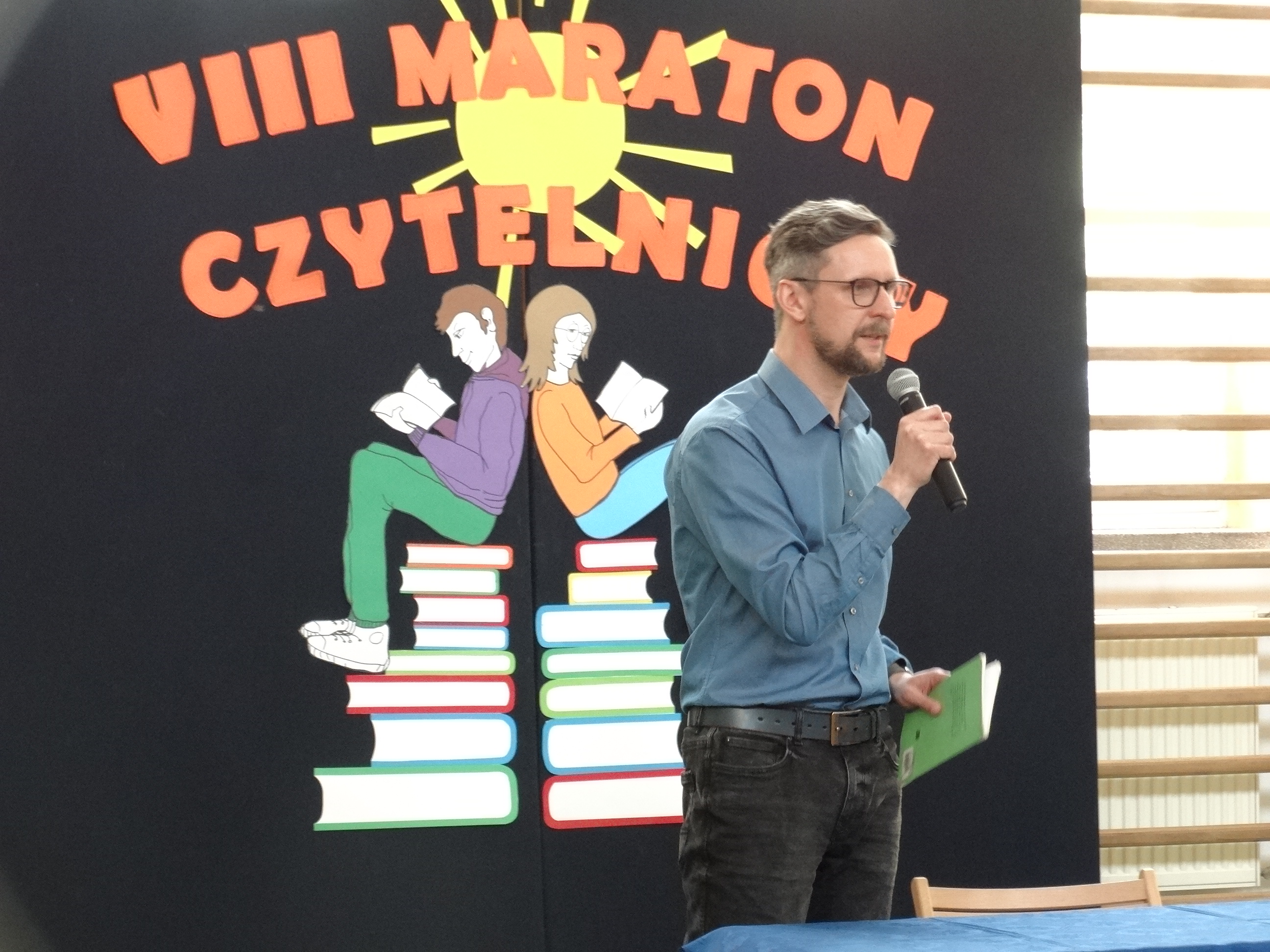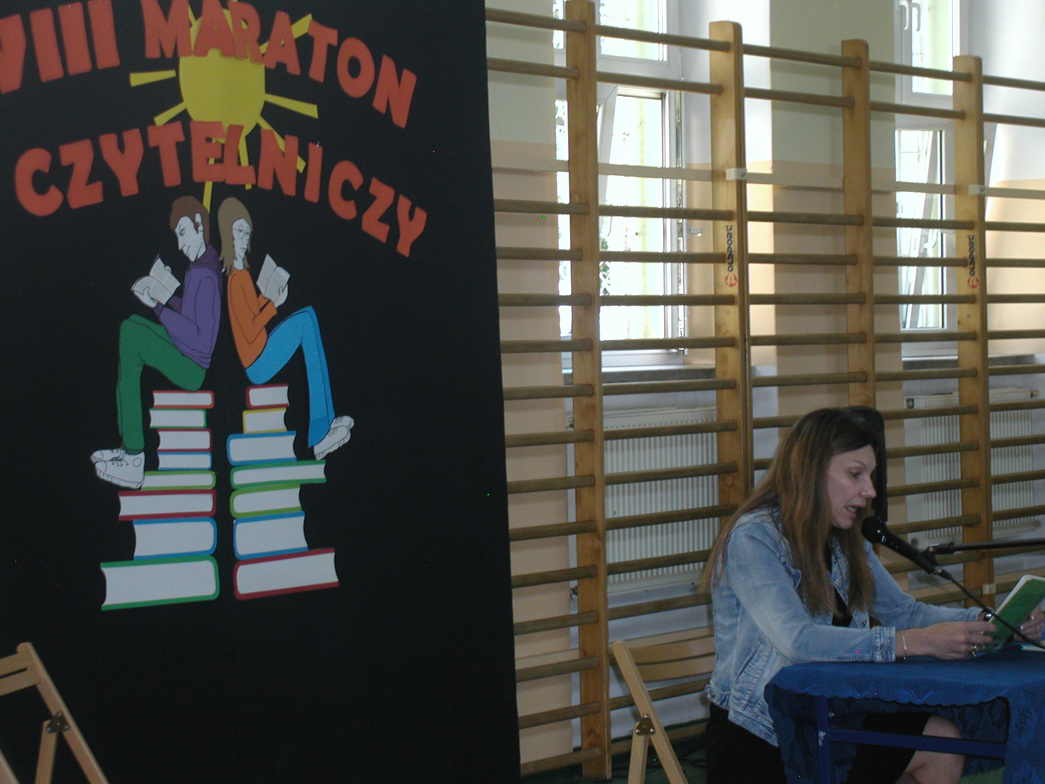 W drugim dniu VIII Maratonu Czytelniczego, zaproszeni przez nas goście: Małgorzata Potocka – dyrektor Teatru Powszechnego im. Jana Kochanowskiego w Radomiu, Mateusz Paluch – aktor Teatru Powszechnego im. Jana Kochanowskiego w Radomiu, Joanna Nagay – z Centrum Rzeźby Polskiej w Orońsku, Magdalena Gliszczyńska – dziennikarka Radia Plus, Adam Miernik z Muzeum Ludowych Instrumentów Muzycznych w Szydłowcu przeczytali naszym uczniom książki: „Noskavery” Pawła Beręsewicza i „Hihopter” Małgorzaty Musierowicz i „Dom nie z tej ziemi” Małgorzaty Strękowskiej - Zaremby. Dzieci z ogromnym zainteresowaniem wysłuchały fragmentów opowiadań, po czym odpowiadałaby na zadawane pytania. Za poprawne odpowiedzi otrzymywali słodką niespodziankę.