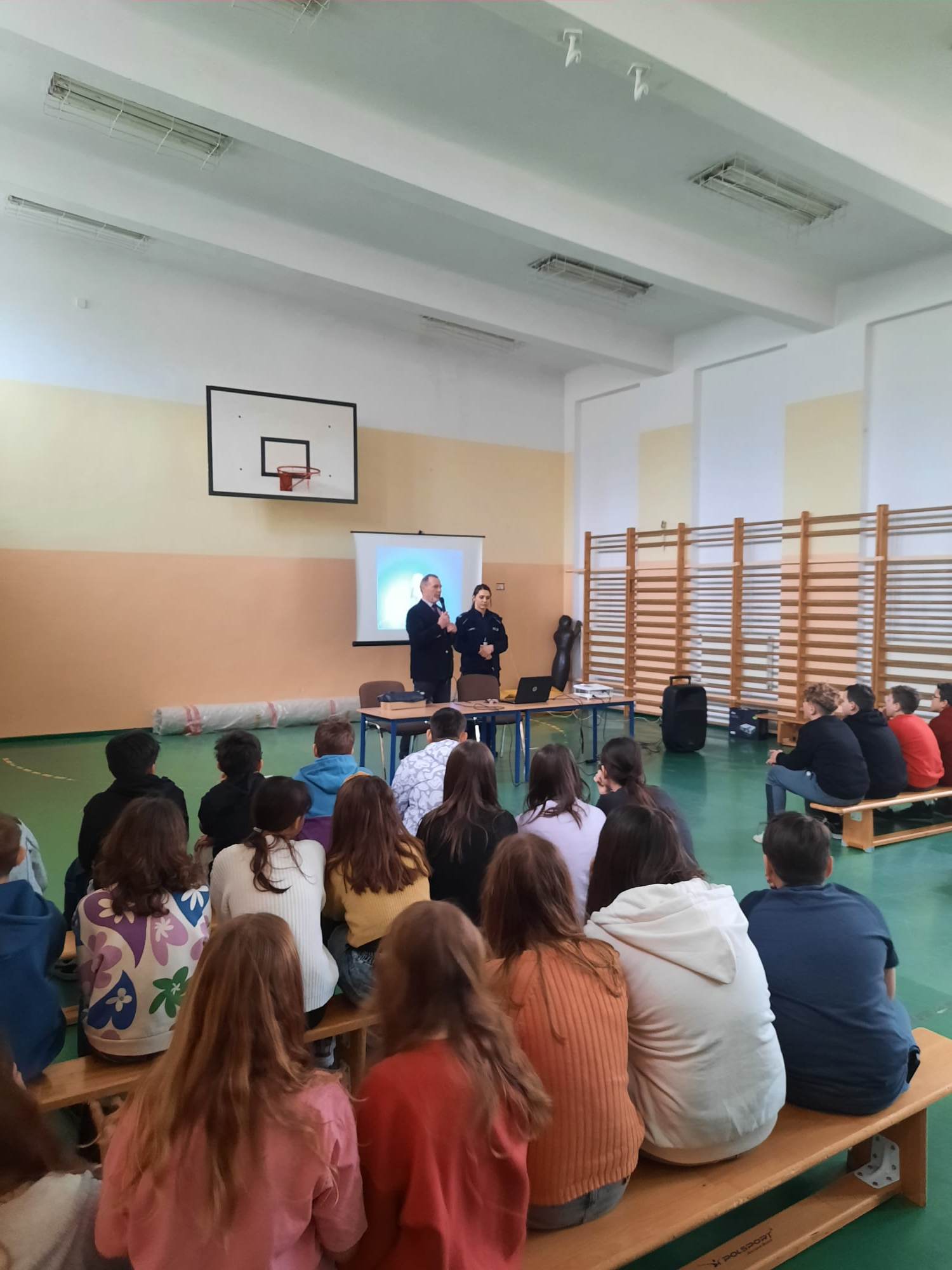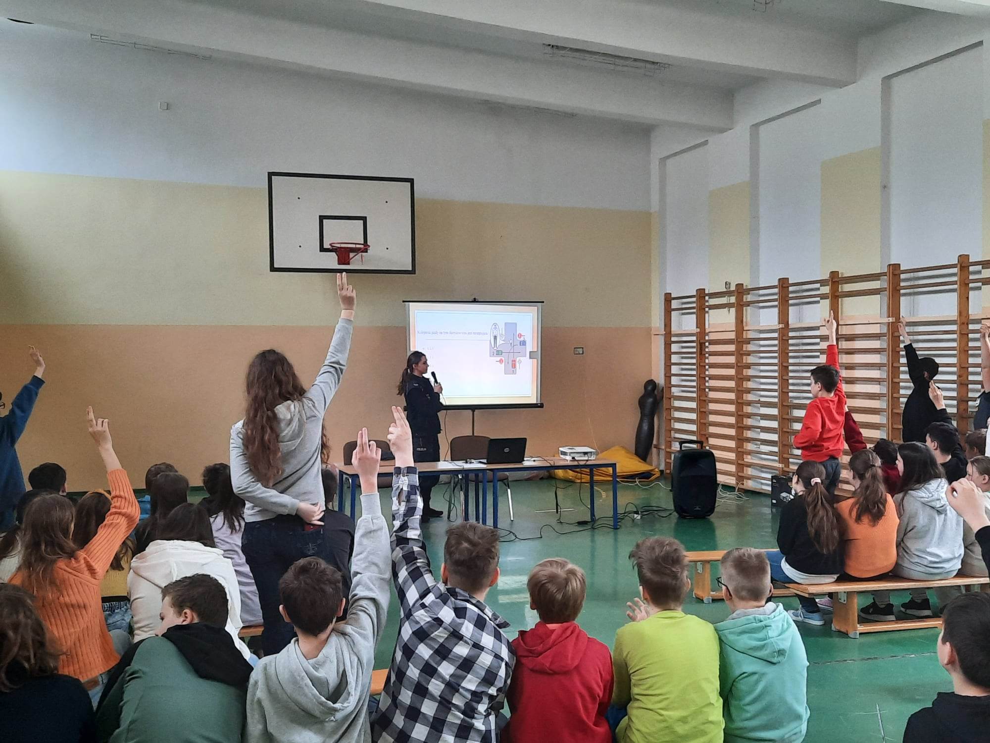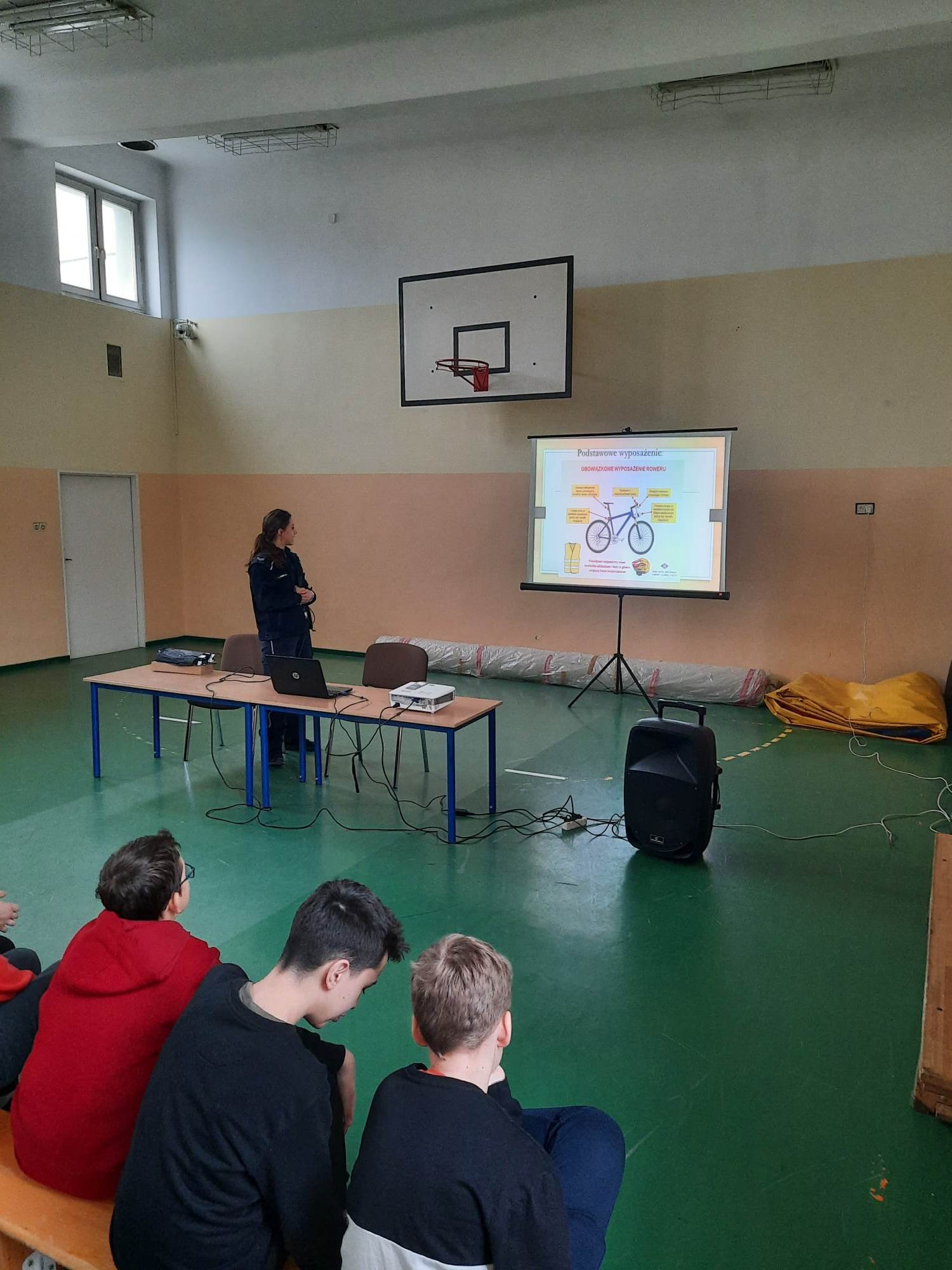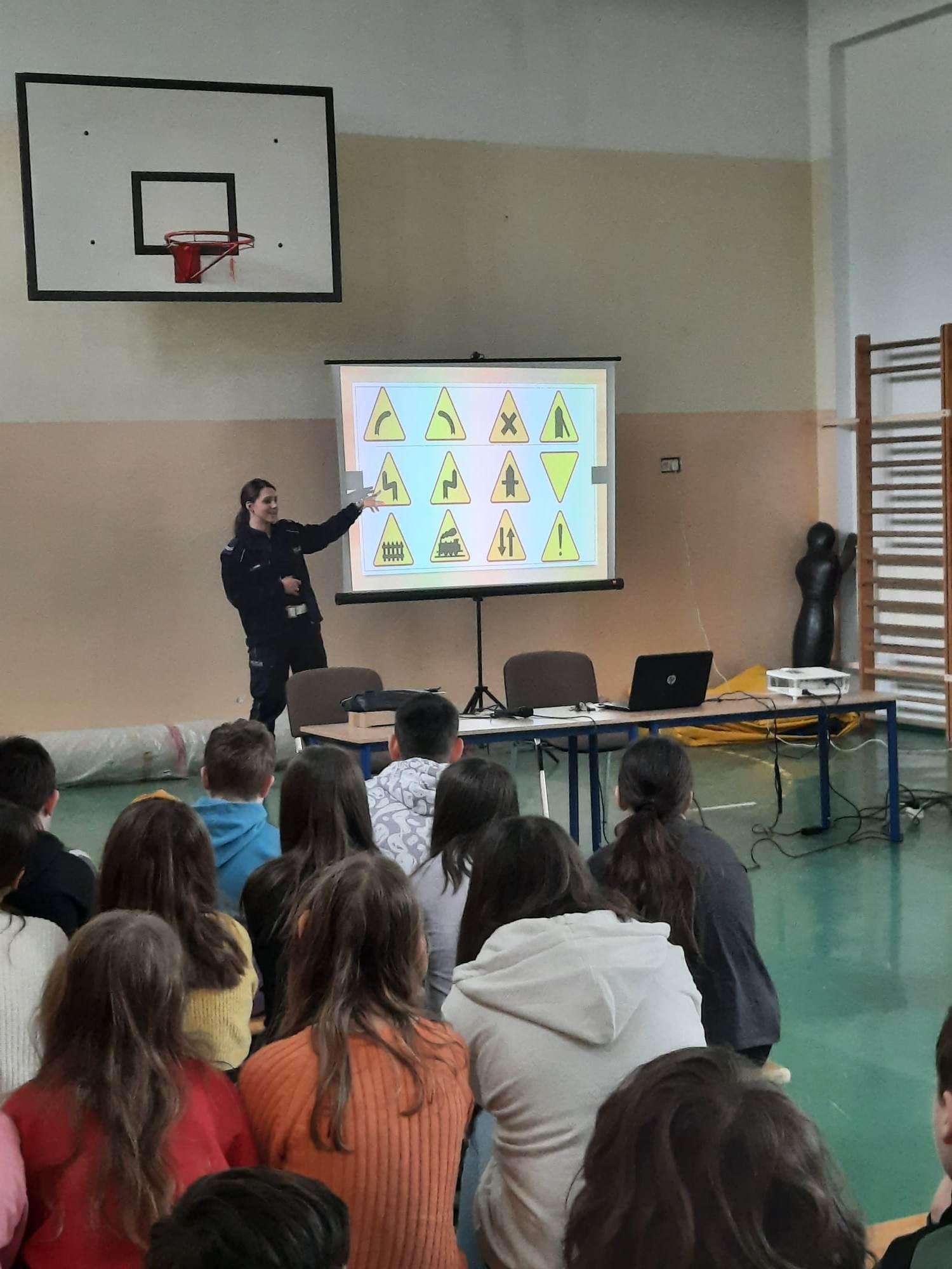 30 marca 2023 roku odbyło się spotkanie z Policją Wydziału Ruchu Drogowego Komendy Miejskiej Policji w Radomiu dla uczniów klas 4 i 5. Starsza sierżant Jolanta Matejek przeprowadziła prelekcję na temat Bezpieczeństwa w ruchu drogowym w kontekście przygotowania do egzaminów na kartę rowerową. Uczniowie mieli okazję powtórzyć poznane na lekcjach techniki zagadnienia z zakresu wychowania komunikacyjnego, poznali również nowe wiadomości m.ni. dotyczące bezpiecznego korzystania z UTO.