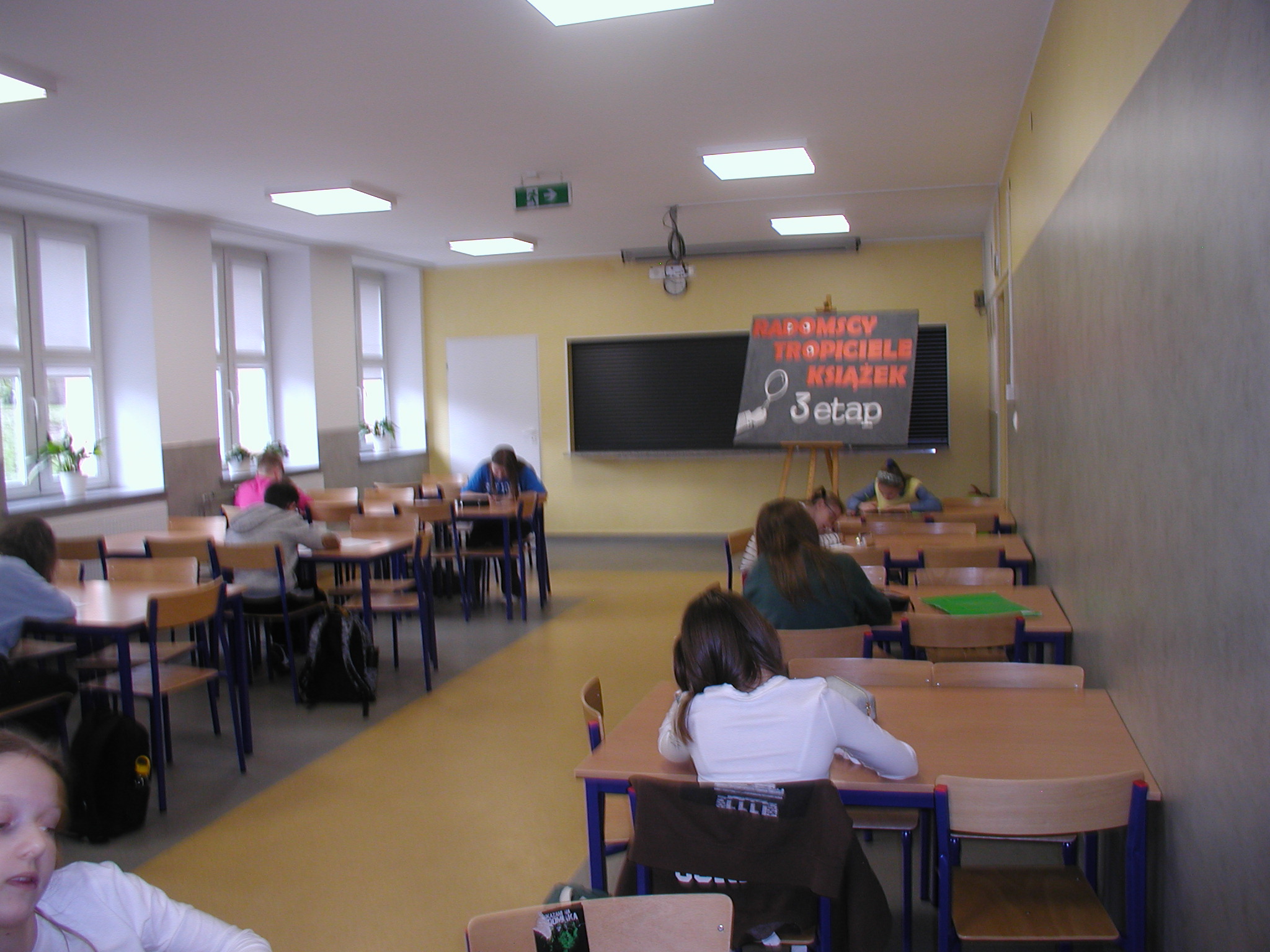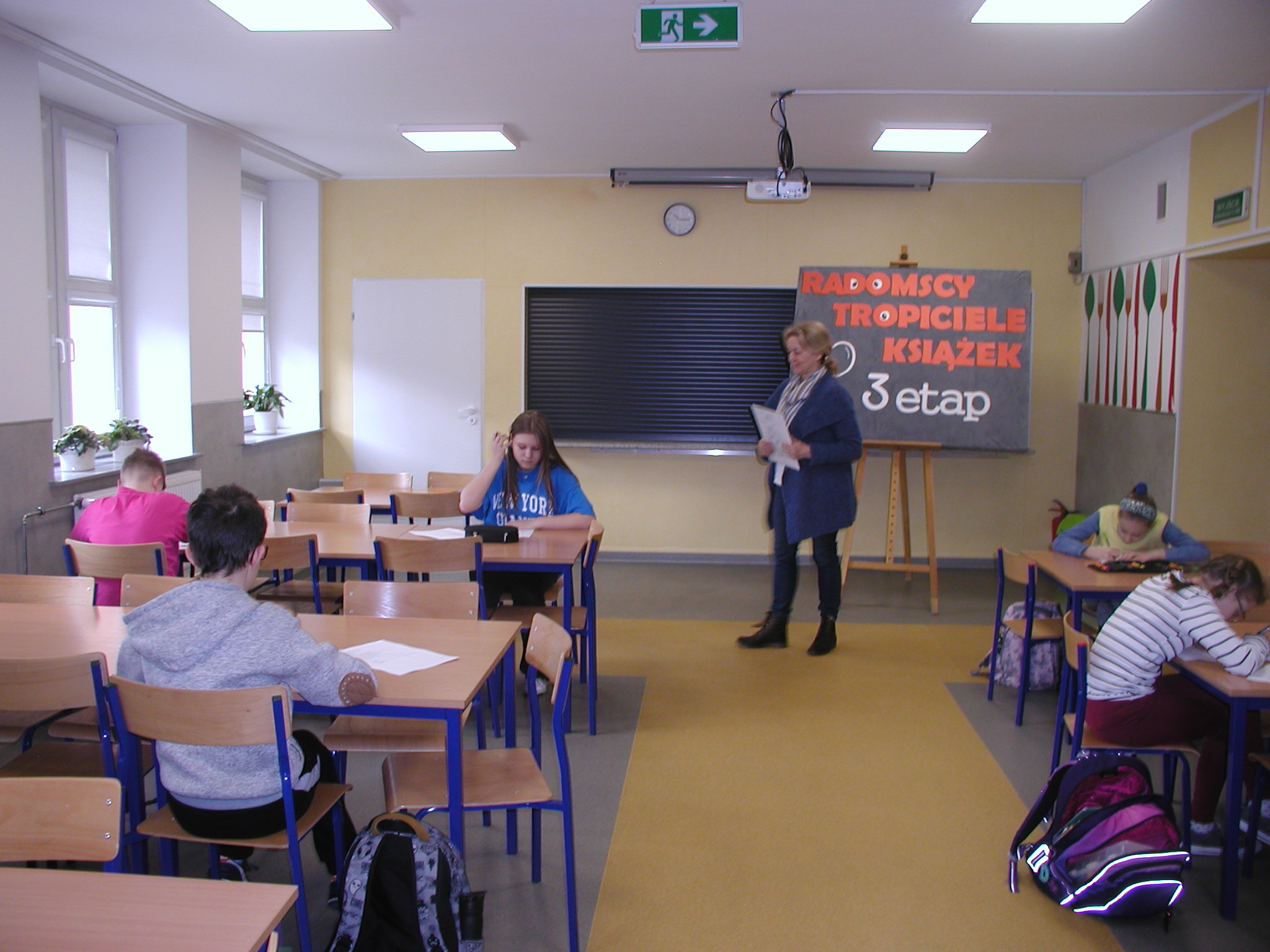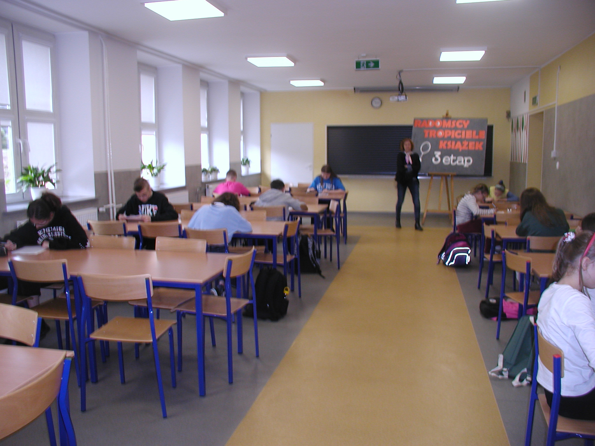 3 kwietnia 2023 r. w naszej szkole odbył się III etap konkursu czytelniczego Radomscy Tropiciele Książek zorganizowany przez Miejską Bibliotekę Publiczną w Radomiu. Przystąpiło do niego 15 uczniów. Zadaniem uczestników było napisanie testu sprawdzającego znajomość treści oraz rozumienie problematyki następujących lektur : klas 2 - 3 „Jajko Króla Robotyka” Zofii Staneckiej, klas 4 - 6 „Zaczarowana Pani Bibliotekarka” Elizy Mikulskiej i klas 7 - 8 „M jak Dżem” Agnieszki Tyszki. Testy zostały sprawdzone na etapie szkolnym, a wyniki przesłane do organizatora. Najlepsi czytelnicy z radomskich szkół zostaną zakwalifikowani do II etapu konkursu. Gratulujemy naszym uczniom udziału w konkursie!