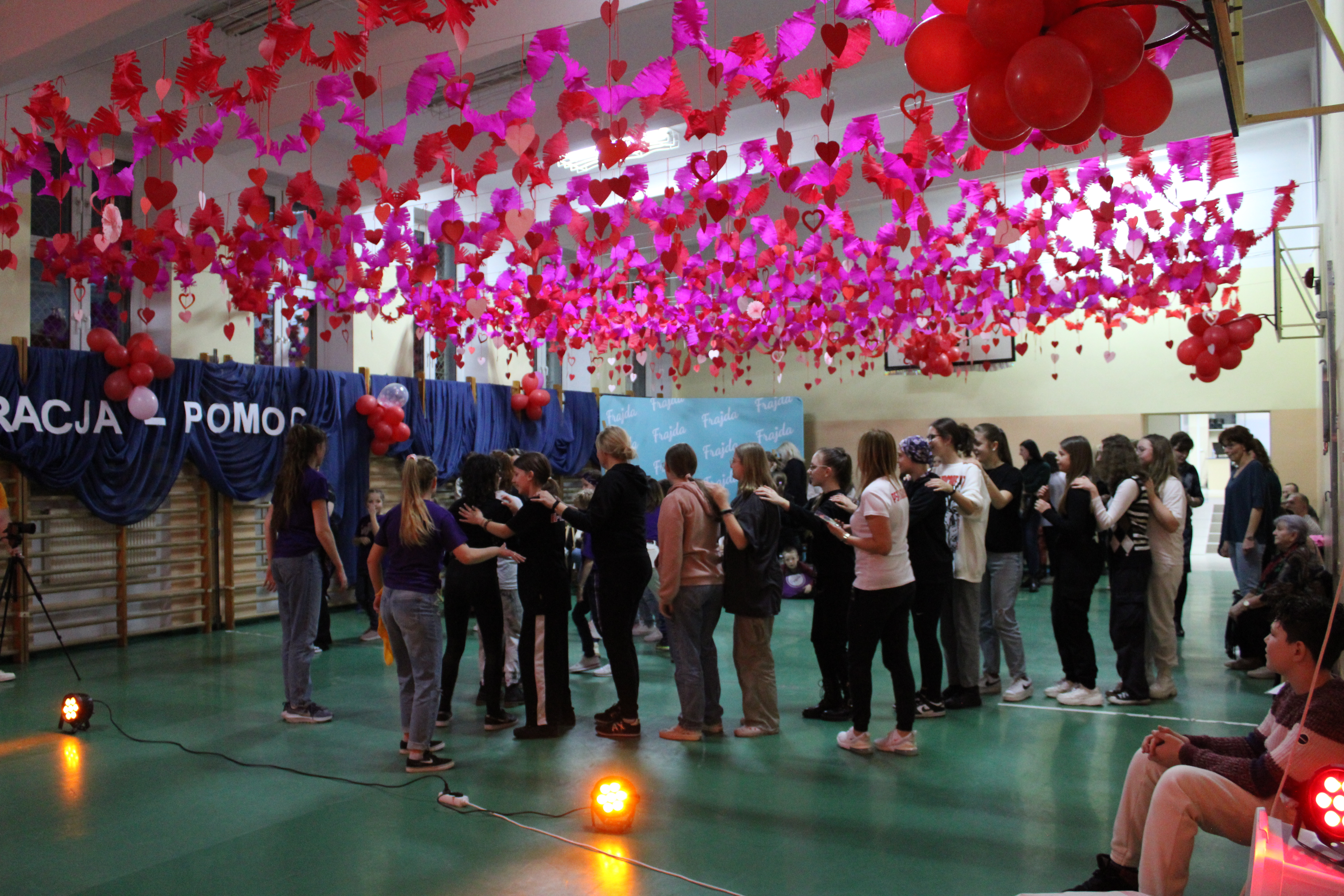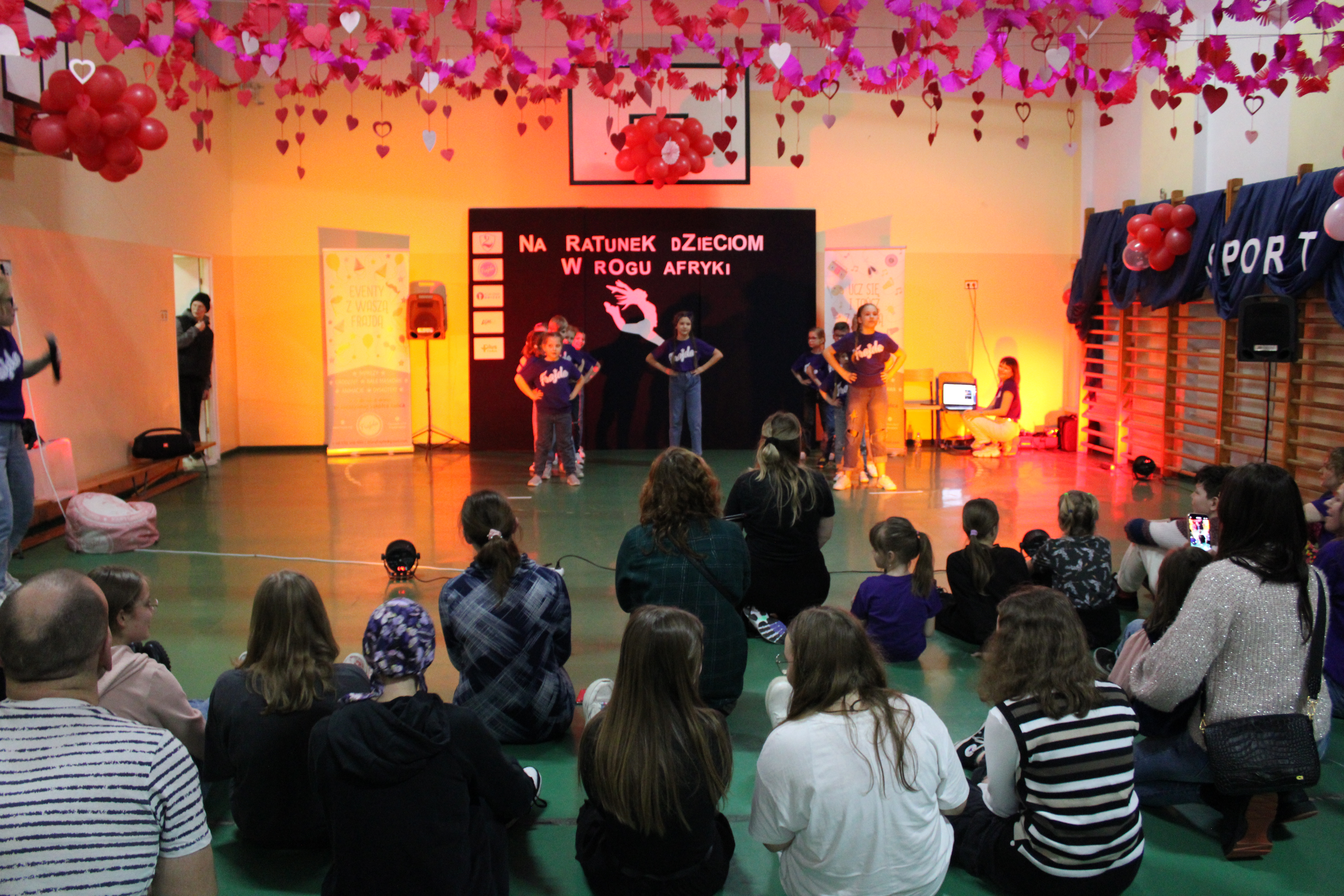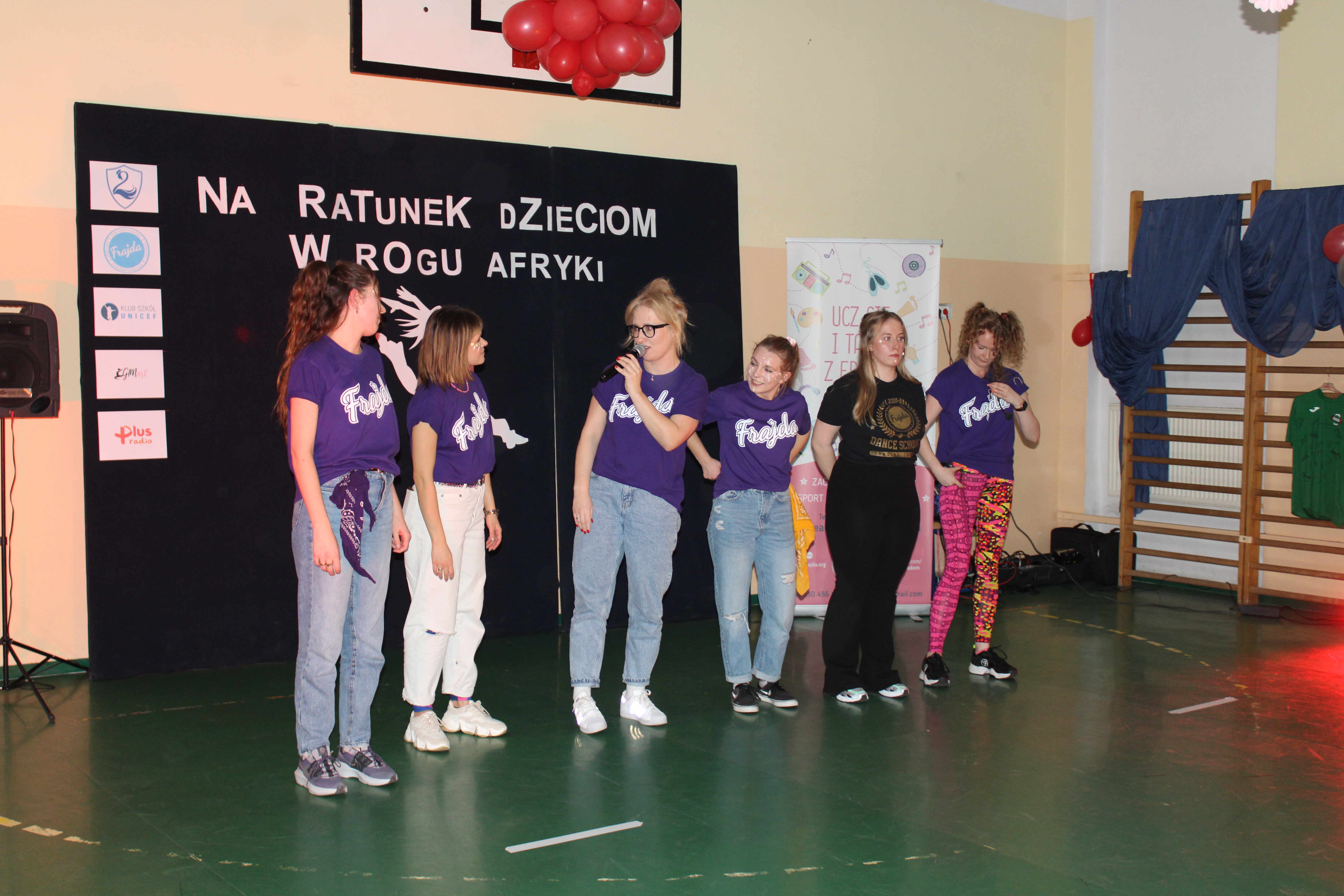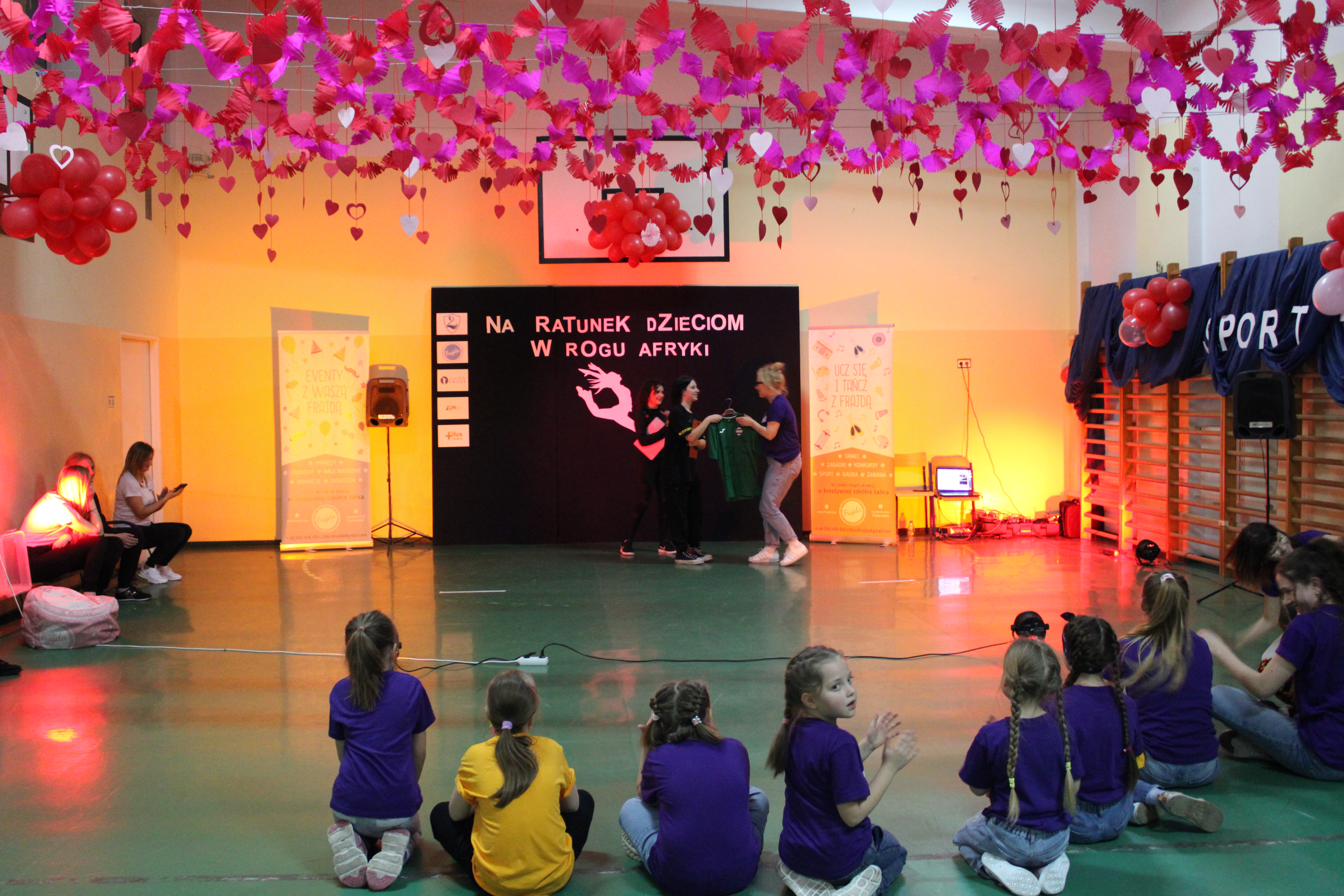 Dzięki współpracy z kreatywną szkołą tańca FRAJDA oraz zespołem gimnastyki artystycznej GimArt w dniu 10 lutego 2023 roku w naszej szkole odbyło się TANECZNE SPOTKANIE Z FRAJDĄ pod hasłem SPORT - INTEGRACJA - POMOC. Każdy z uczestników spotkania mógł przekazać wybraną kwotę do puszki, z której dochód został przeznaczony na projekt UNICEF „Na ratunek dzieciom w Rogu Afryki”. Młodzież Samorządu Uczniowskiego oraz Szkolnego Koła UNICEF opracowała plakaty, przygotowała dekoracje na spotkanie oraz zorganizowała aukcję GALERIA RZECZY ŁADNYCH. Podczas tanecznego spotkania można było odbyć podróż na CZARNY LĄD z instruktorkami FRAJDY. Była również ZUMBA dla małych i dużych, warsztaty manualne - Wyczaruj Kija Mocy. Chętnym uczestnikom spotkania instruktorzy FRAJDY zrobili piękne afrykańskie makijaże. Był również pokaz fantastycznego tańca FRAJDA SQUAD oraz pokaz gimnastyczki artystycznej zespołu GimArt. Bardzo dziękujemy wszystkim, którzy włączyli się w działania naszego projektu, a szczególnie kreatywnej szkole tańca FRAJDA i zespołowi gimnastyki artystycznej gimArt. Dziękujemy również rodzicom, pracownikom szkoły oraz uczniom za przygotowanie pięknych darów, które zostały wystawione w GALERII RZECZY ŁADNYCH.