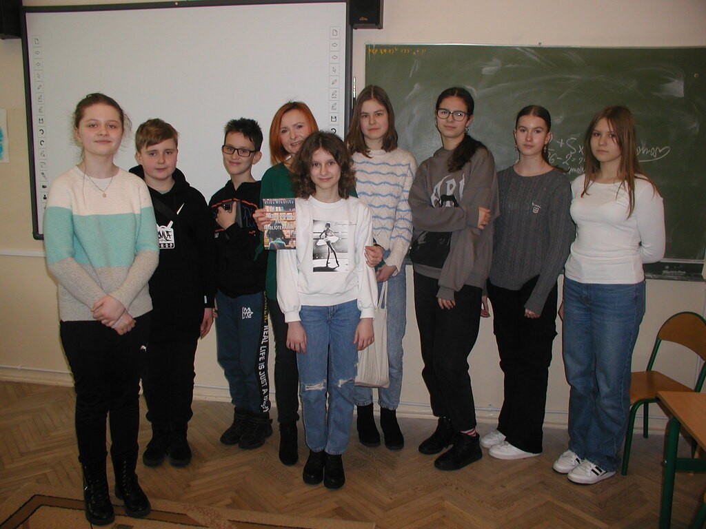 9 marca 2023 r. radomscy tropiciele książek z naszej szkoły wybrali się do PSP 7 w Radomiu na spotkanie z autorką książki "Zaczarowana Pani Bibliotekarka" - Elizą Mikulską. Pisarka opowiedziała zgromadzonym słuchaczom o warsztacie tworzenia książki i swojej twórczości. Następnie zaprezentowała fragment książki "Zaczarowana pani bibliotekarka" oraz odpowiadała na pytania uczniów. Na zakończenie spotkania były autografy i pamiątkowe zdjęcia. "Zaczarowana Pani Bibliotekarka" to kolejna lektura do przeczytania w konkursie czytelniczym "Radomscy Tropiciele Książek" w miesiącu marcu. Przyjemnego czytania:)