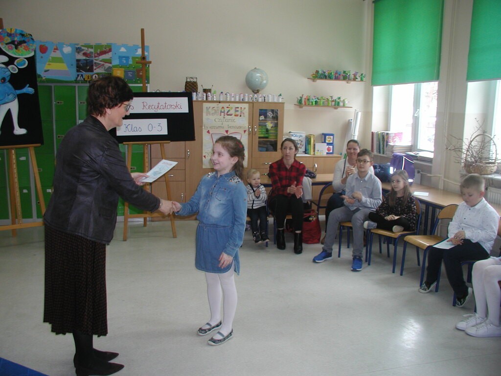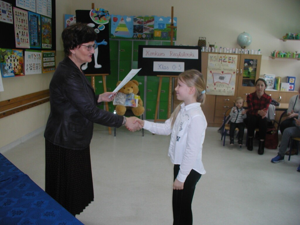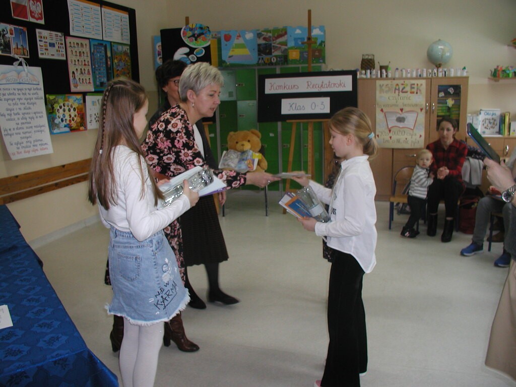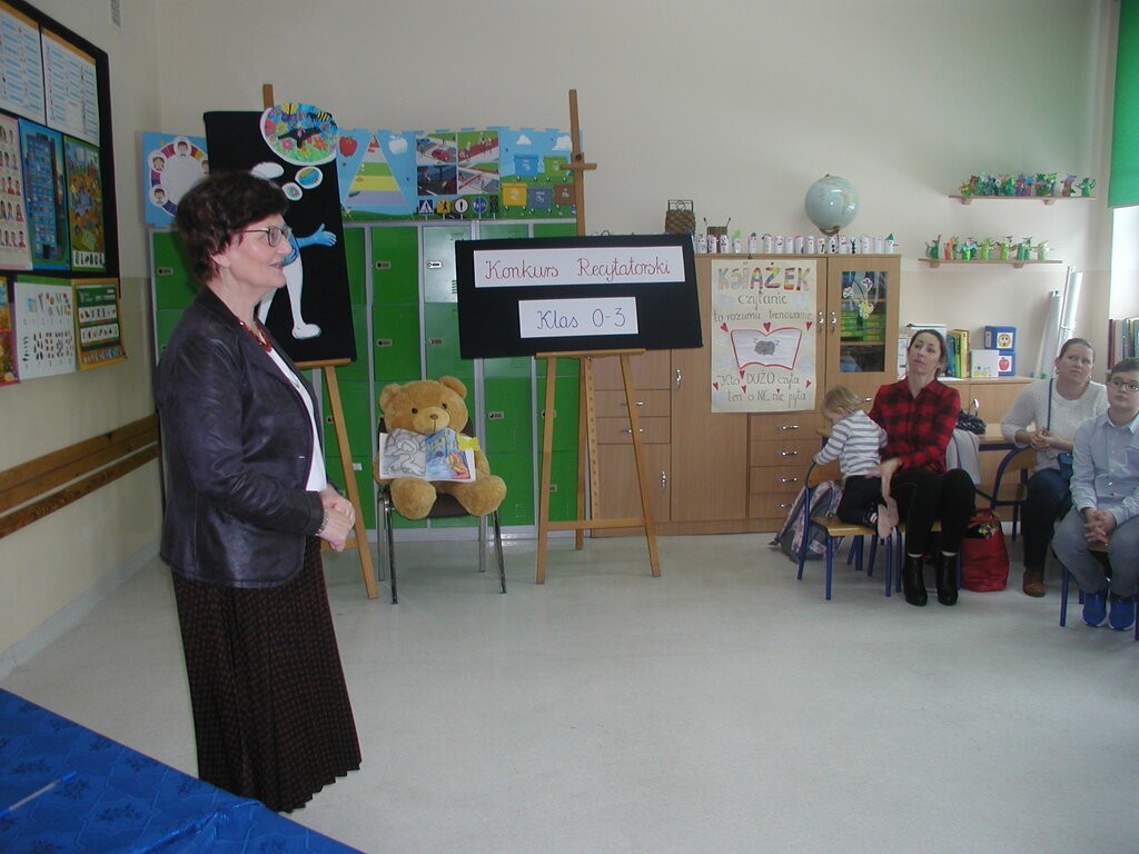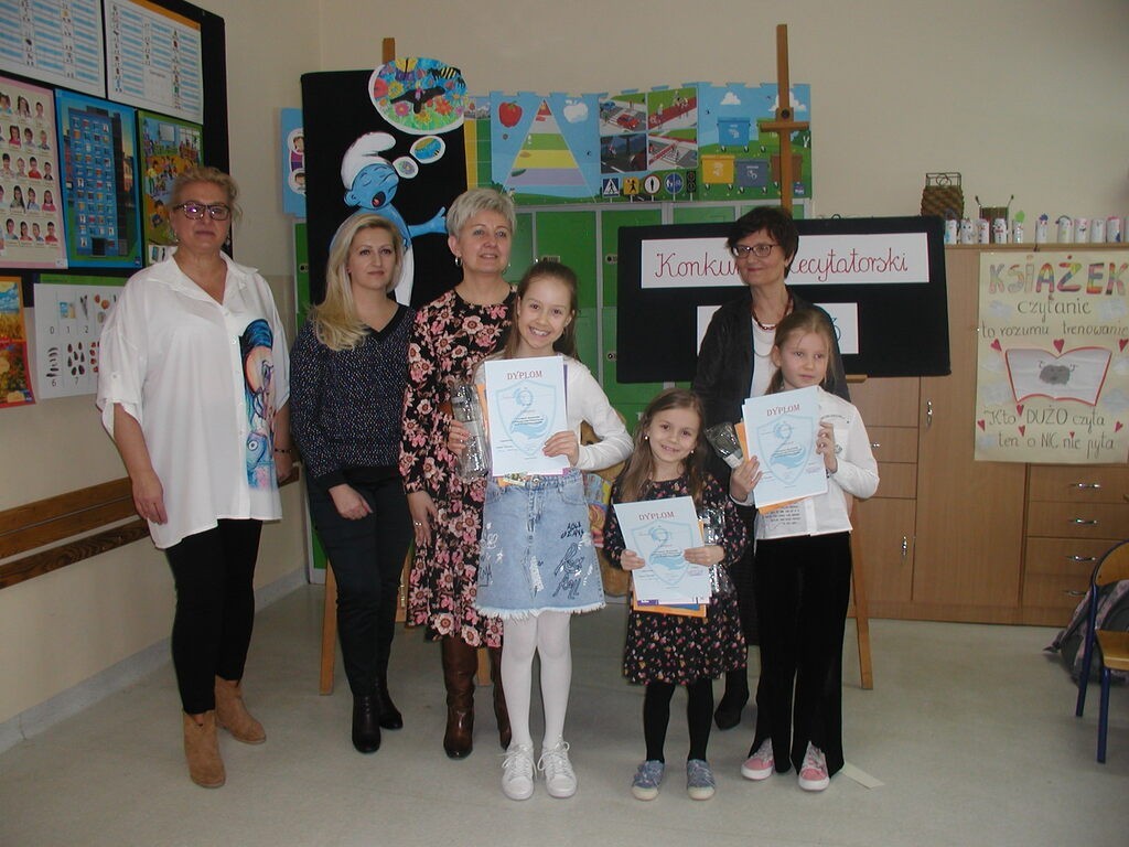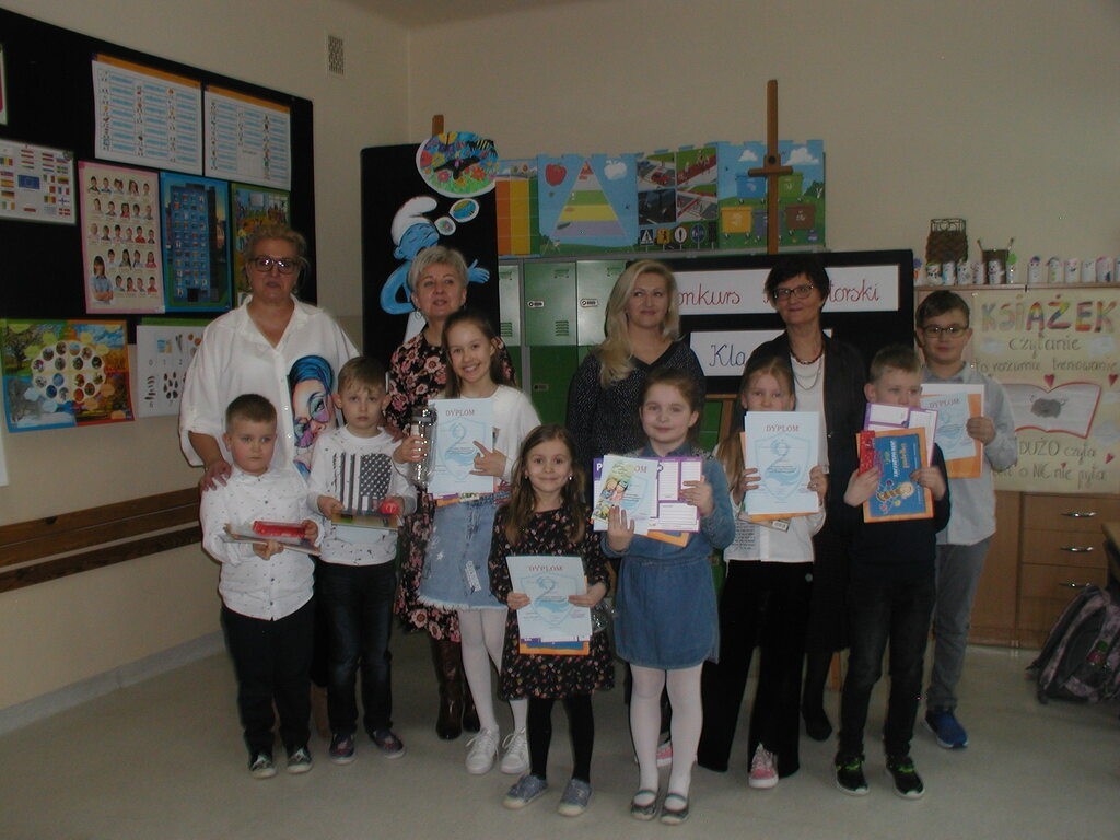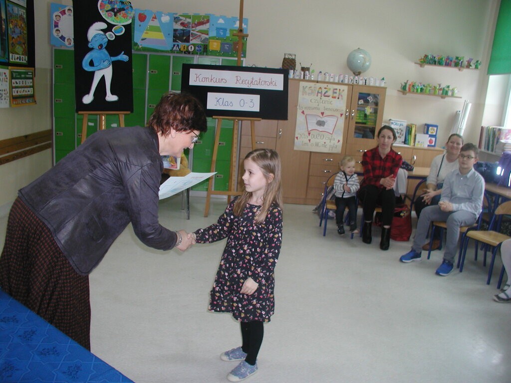 Dnia 06.03.2023 r. odbył się Szkolny Konkurs Recytatorski dla klas 0 – III. Celem konkursu była popularyzacja polskiej literatury wśród dzieci, rozwijanie ich zdolności recytatorskich oraz rozbudzanie wrażliwości na piękno poezji. Jury obradowało w składzie: pani v-ce dyrektor E. Smardz, pani R. Kowal, pani I. Górniewska. Wszyscy uczestnicy konkursu sprostali zadaniu, byli doskonale przygotowani i pokonali tremę podczas występu. Po wysłuchaniu wszystkich wierszy jury wybrało uczennicę- Victorię Czyż z kl. III a, która recytowała wiersz H. Niewiadomskiej ,, Szklanka Przechwalanka’’. Będzie ona reprezentować naszą szkołę w dalszych eliminacjach w Domu Kultury Borki podczas konkursu recytatorskiego ,,Warszawska Syrenka’’. Uczennice Zuzanna Kowalik z klasy II a recytowała wiersz J.Papuzińskiej pt:,, Historia’’ oraz Helena Cichawa z klasy I b , która recytowała wiersz L.J.Kern pt: ,, Krótka rozmowa o metodzie” będą reprezentować naszą szkołę w "Małym Konkursie Recytatorskim". Ponadto wyróżnienie otrzymała Hanna Masiarz za recytację wiersza J. Brzechwy pt:,, Kwoka’’.