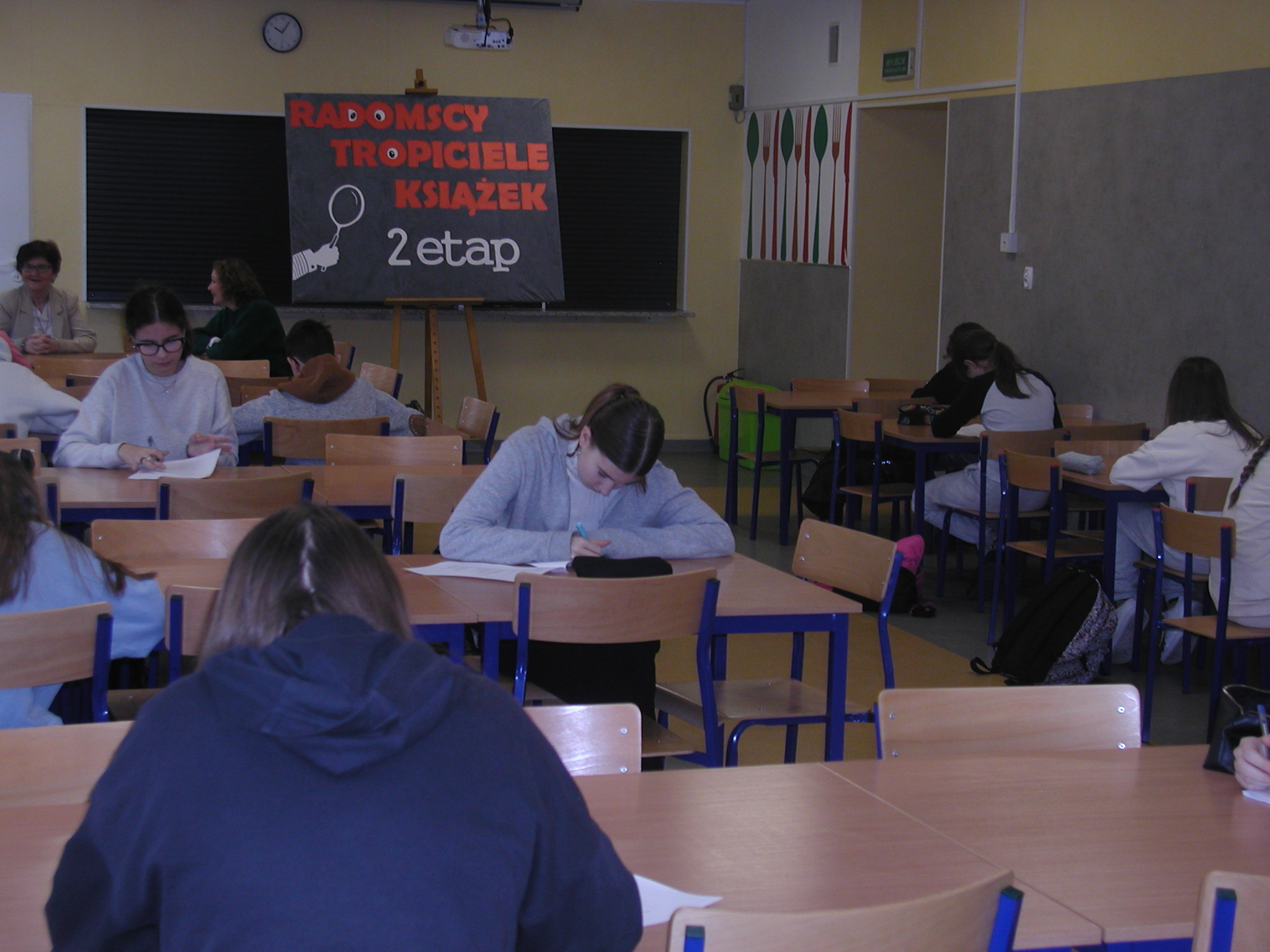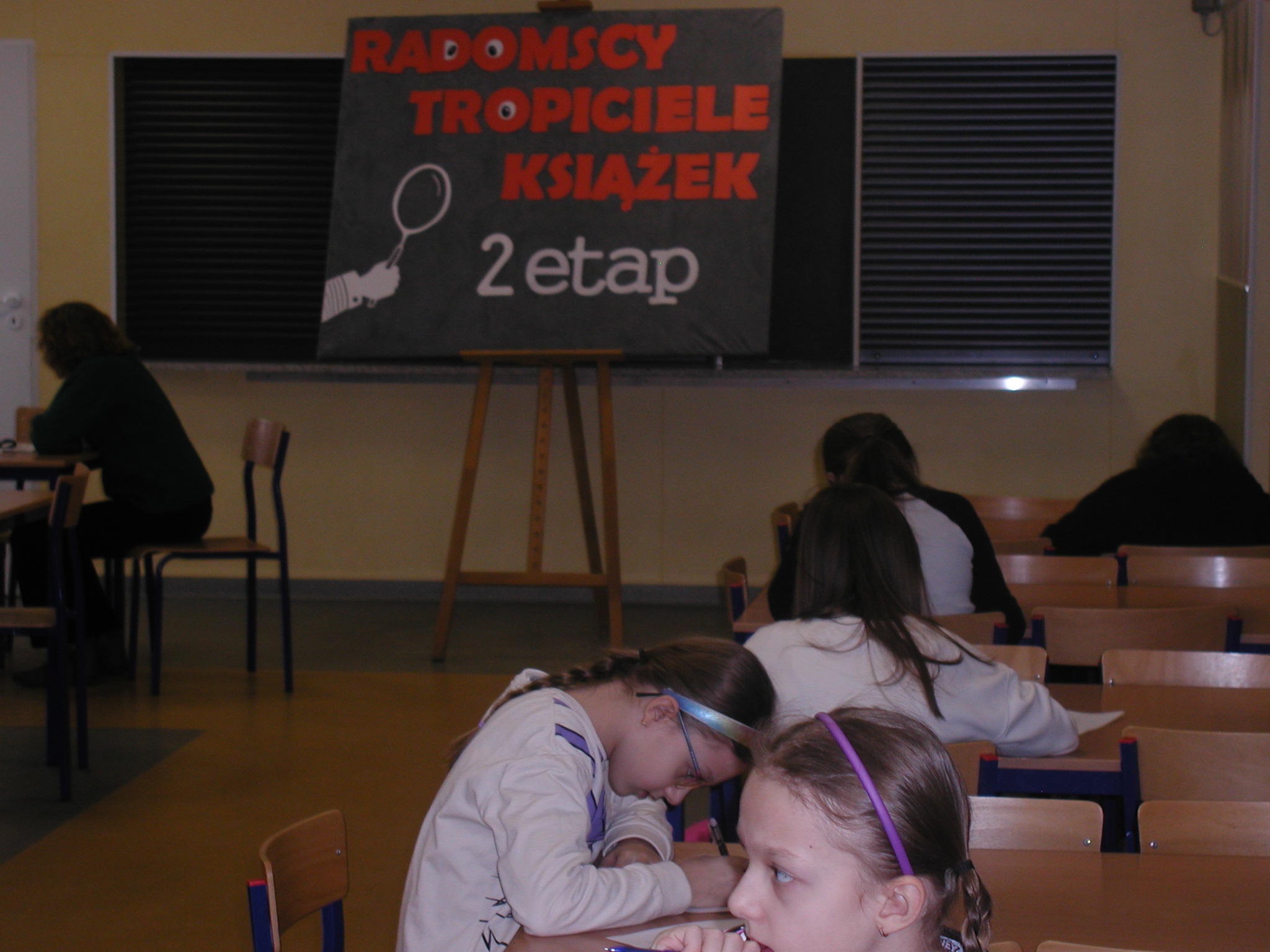 15 „Tropicieli Książek” z naszej szkoły zmagało się dzisiaj w II etapie konkursu czytelniczego zorganizowanego przez Miejską Bibliotekę Publiczną w Radomiu. Uczniowie z przyjemnością przeczytali proponowane lektury. Zadaniem konkursowym było rozwiązanie testu ze znajomości lektur: klasy 2 - 3 „Po co nam ta szkoła?” Marty H. Milewskiej, klasy 4-6 „Dziennik Cwaniaczka” Jeffa Kinney’a , klasy 7-8 „Dzieci Gwiazd i Lustra Lodu” Katarzyny Izbickiej. Wyniki testu już za kila dni, czekamy z niecierpliwością.
