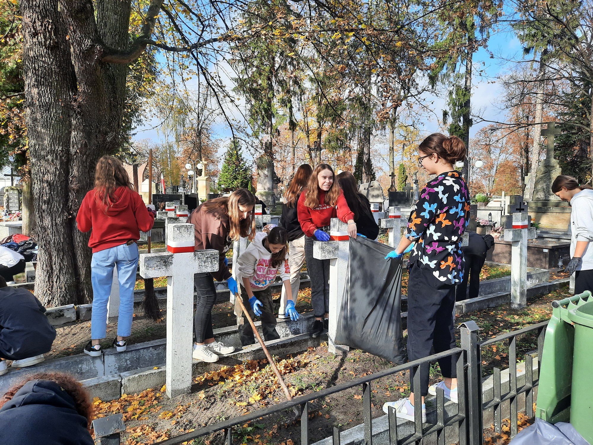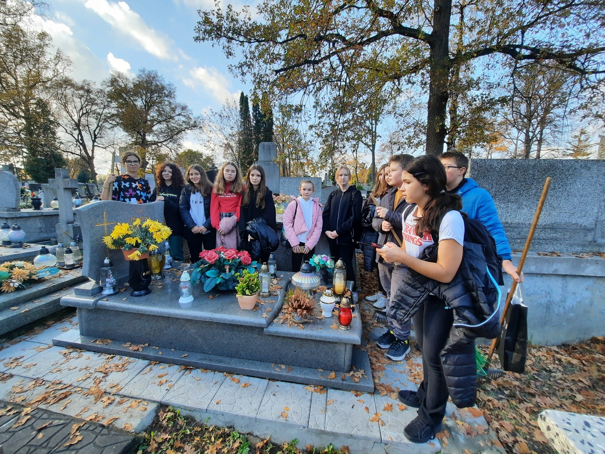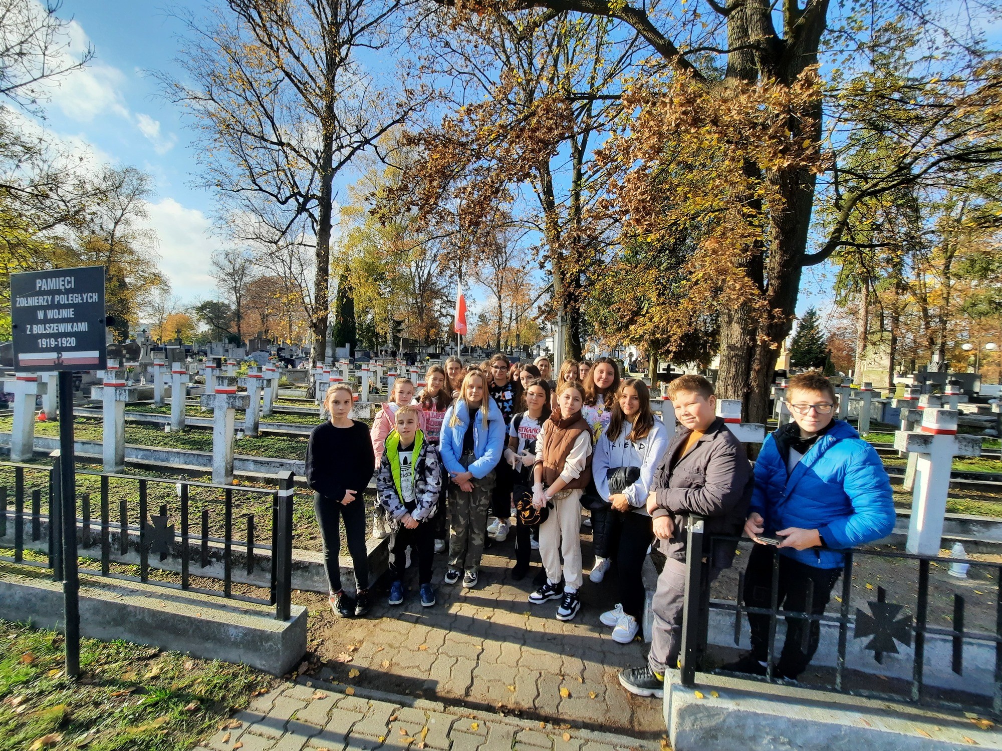 W dniu 26 października 2022r. uczniowie ze Szkolnego Klubu Wolontariatu i klasa 7 B wraz z opiekunami porządkowali groby poległych żołnierzy w wojnie polsko-bolszewickiej na cmentarzu przy ul. Limanowskiego.
