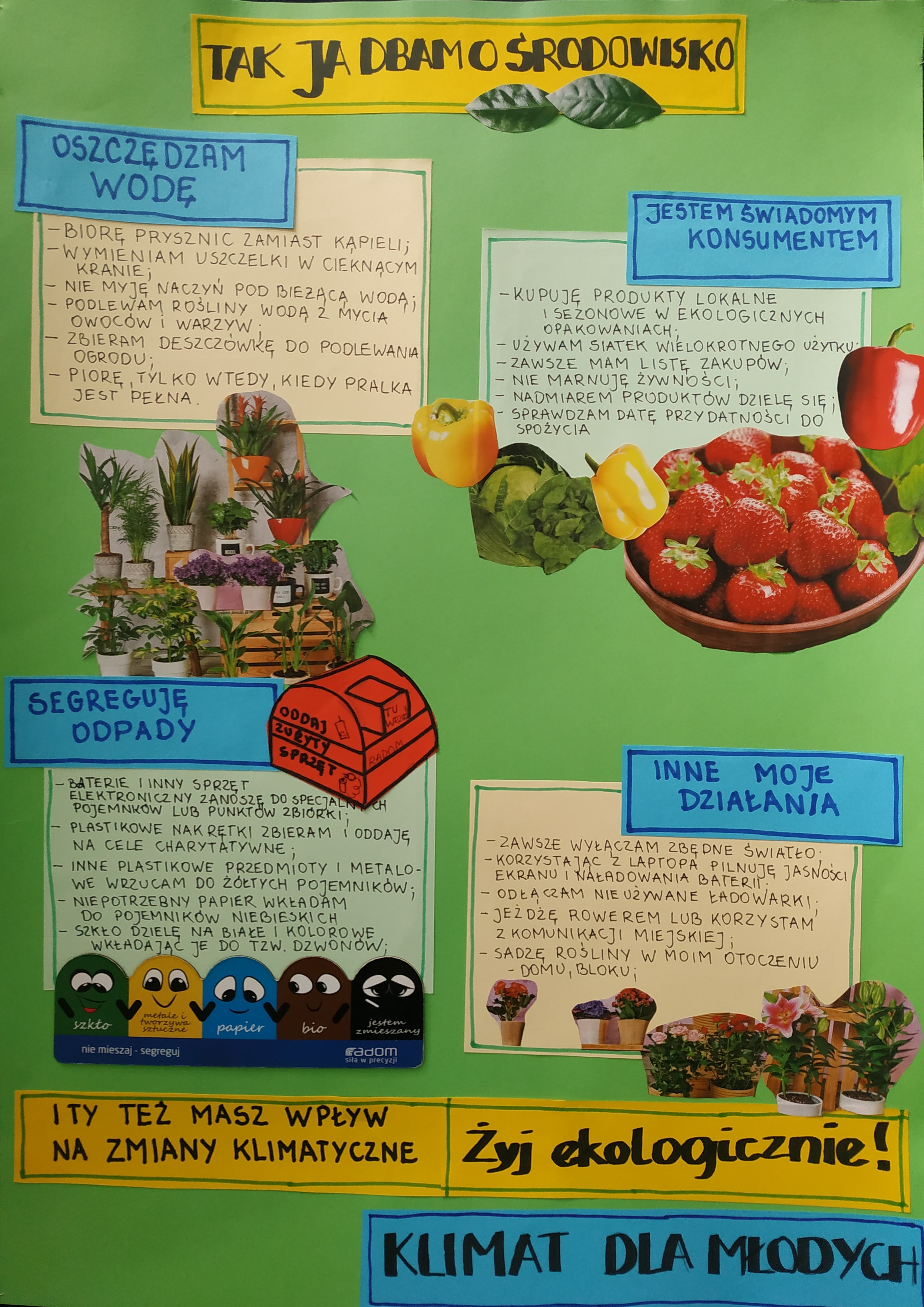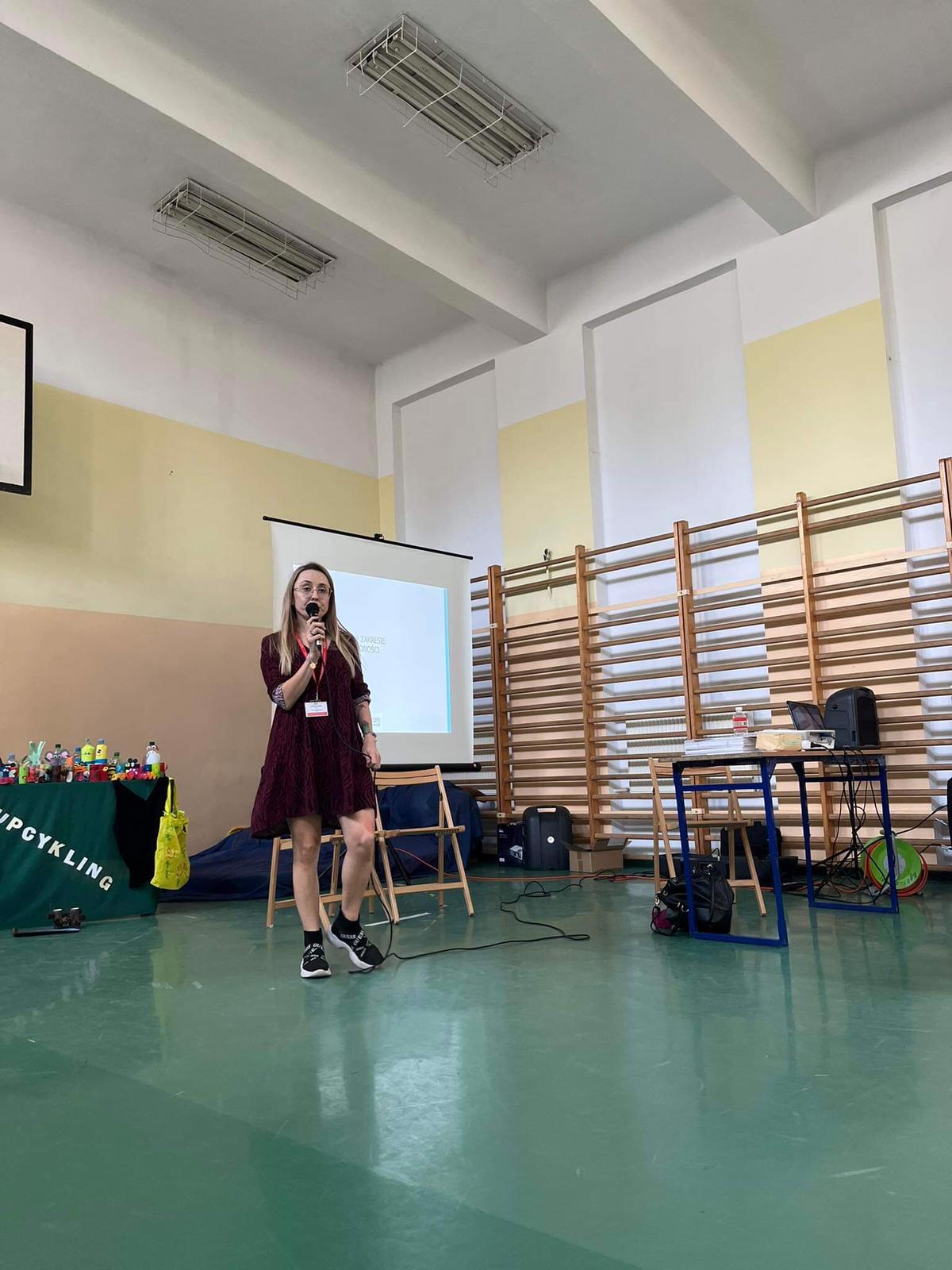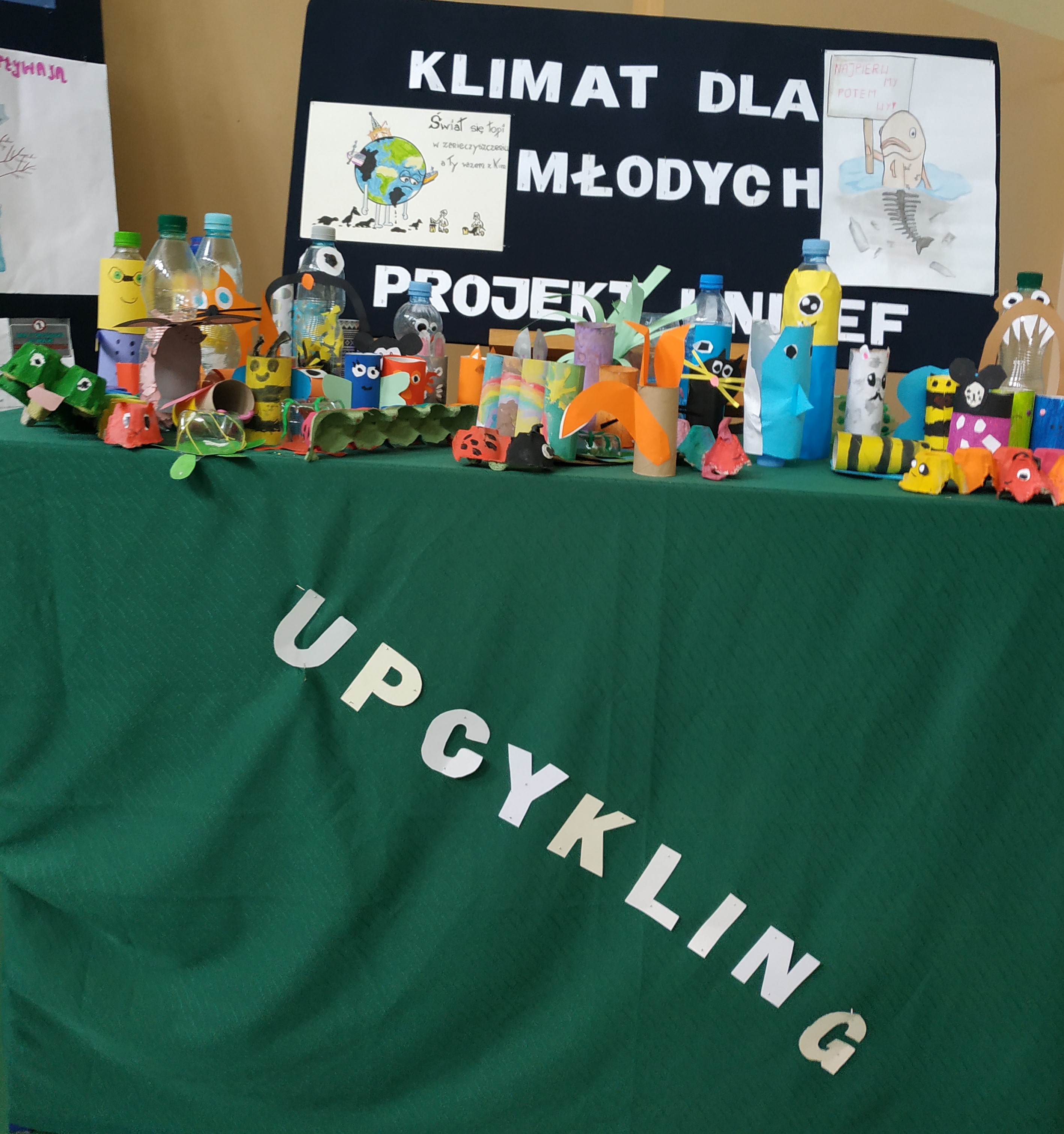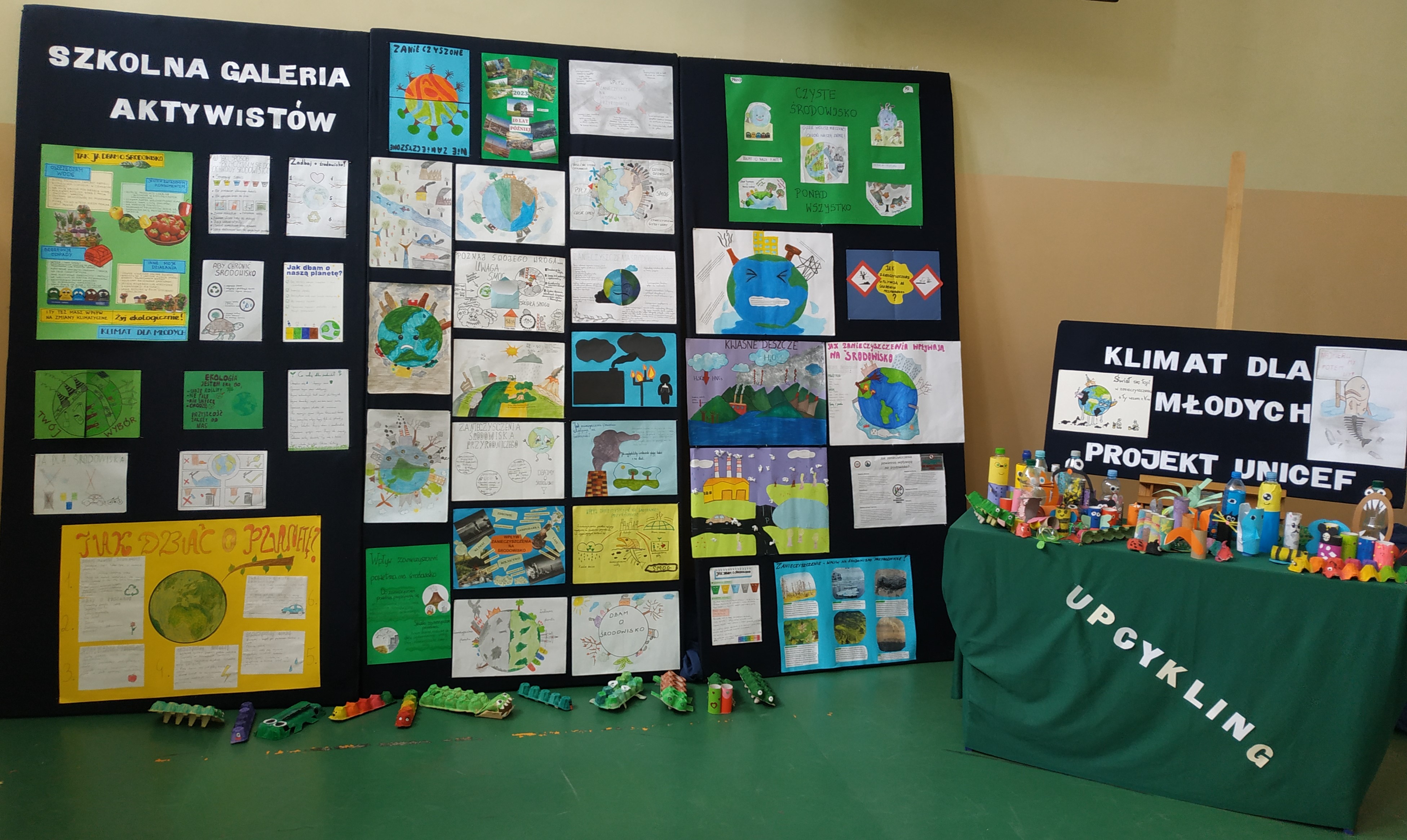 W poniedziałek 12 czerwca 2023 r. odbyło się spotkanie młodzieży klas siódmych i ósmych z pracownikiem Wydziału Ochrony Środowiska Urzędu Miejskiego w Radomiu panią Martą Alfman-Kupczyk w ramach działań podjętych przez szkołę podczas realizacji projektu UNICEF Klimat dla Młodych. Celem spotkania było przedstawienie działań podejmowanych przez samorząd lokalny na rzecz ochrony środowiska. Podczas zajęć zostały również zaprezentowane prace plastyczne przygotowane przez młodzież klas siódmych i ósmych na temat „Jak zanieczyszczenie środowiska wpływa na zdrowie człowieka?" oraz Szkolna Galeria Aktywistów. Uczniowie z oddziału przedszkolnego, klas trzecich i czwartych wykonali i przedstawili przedmioty z materiałów w ramach upcyklingu.
