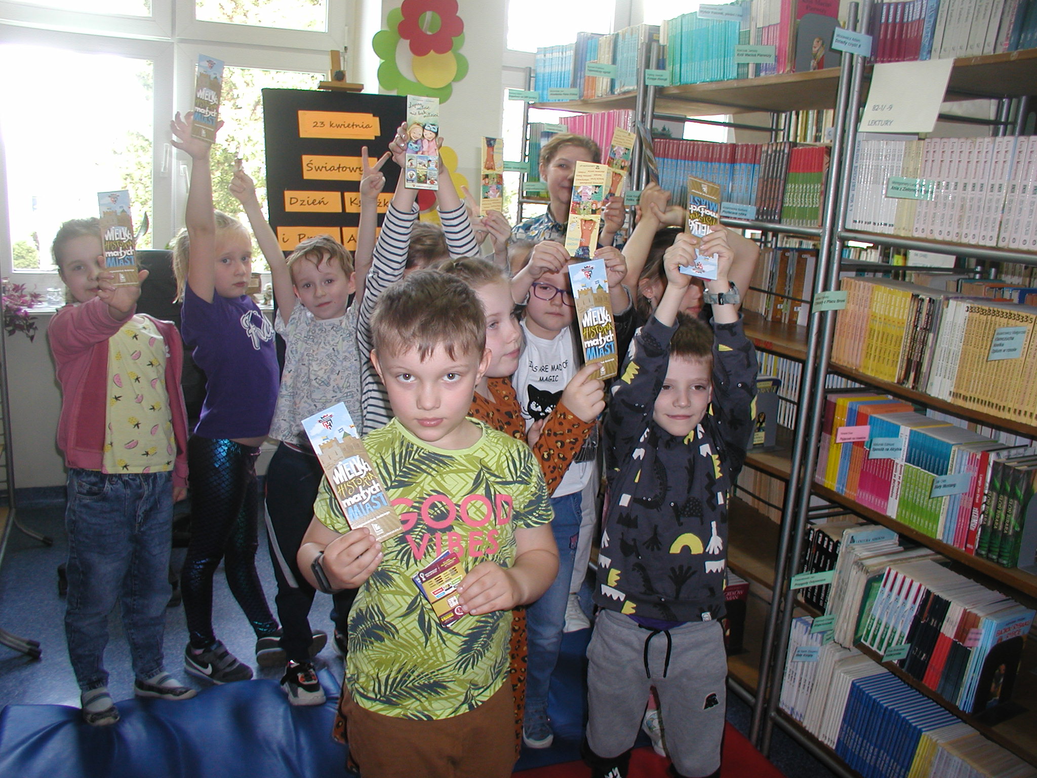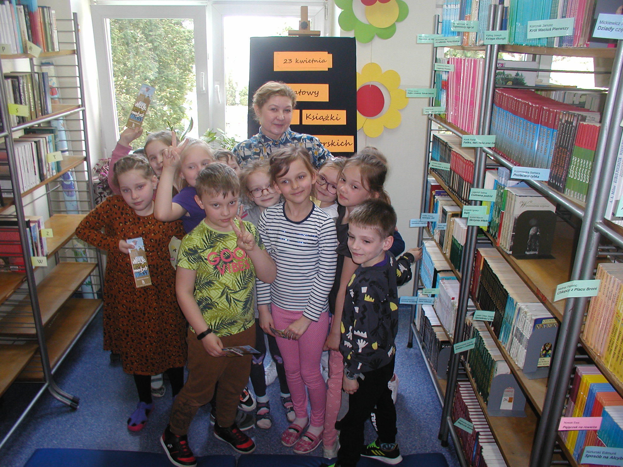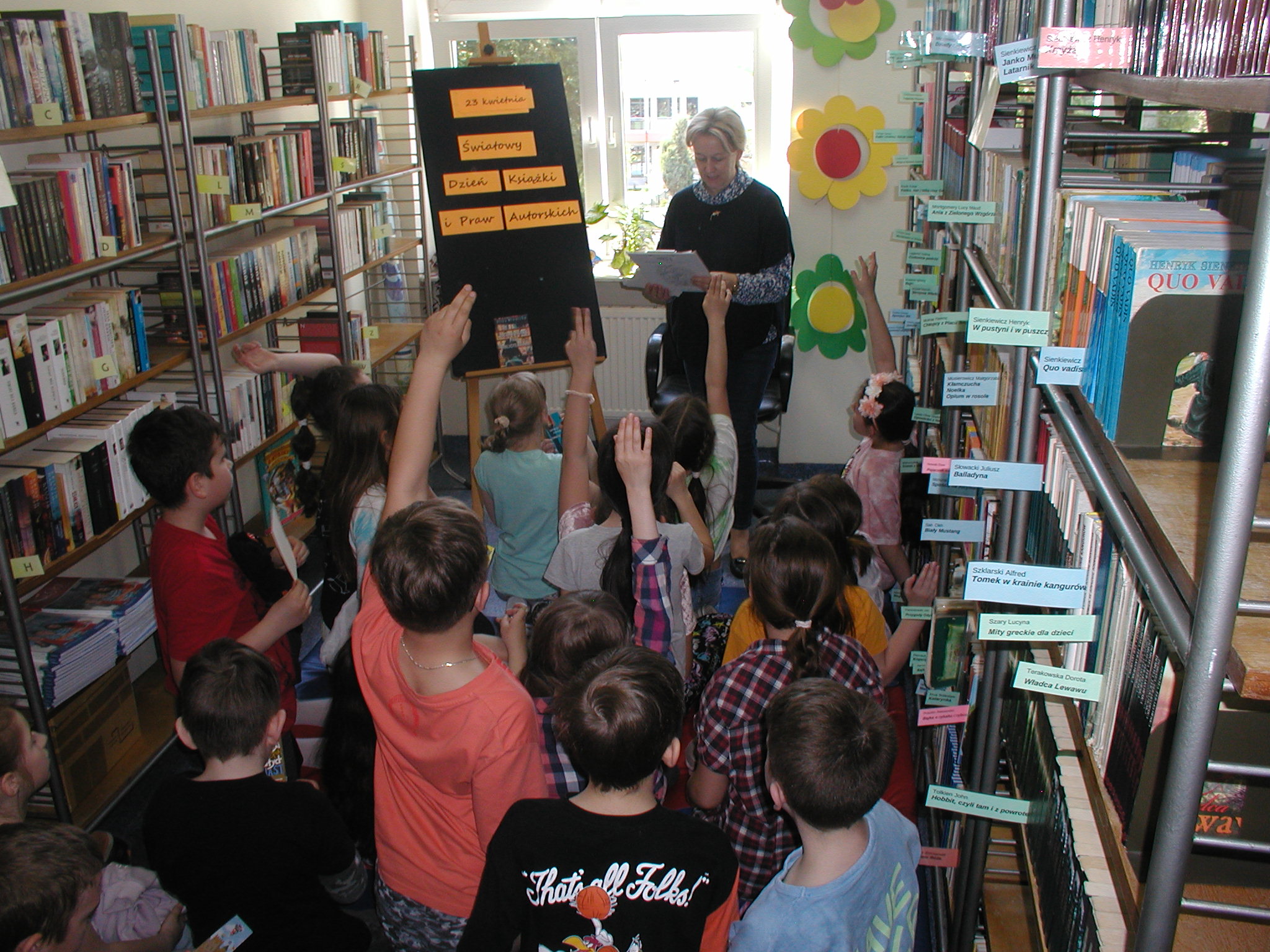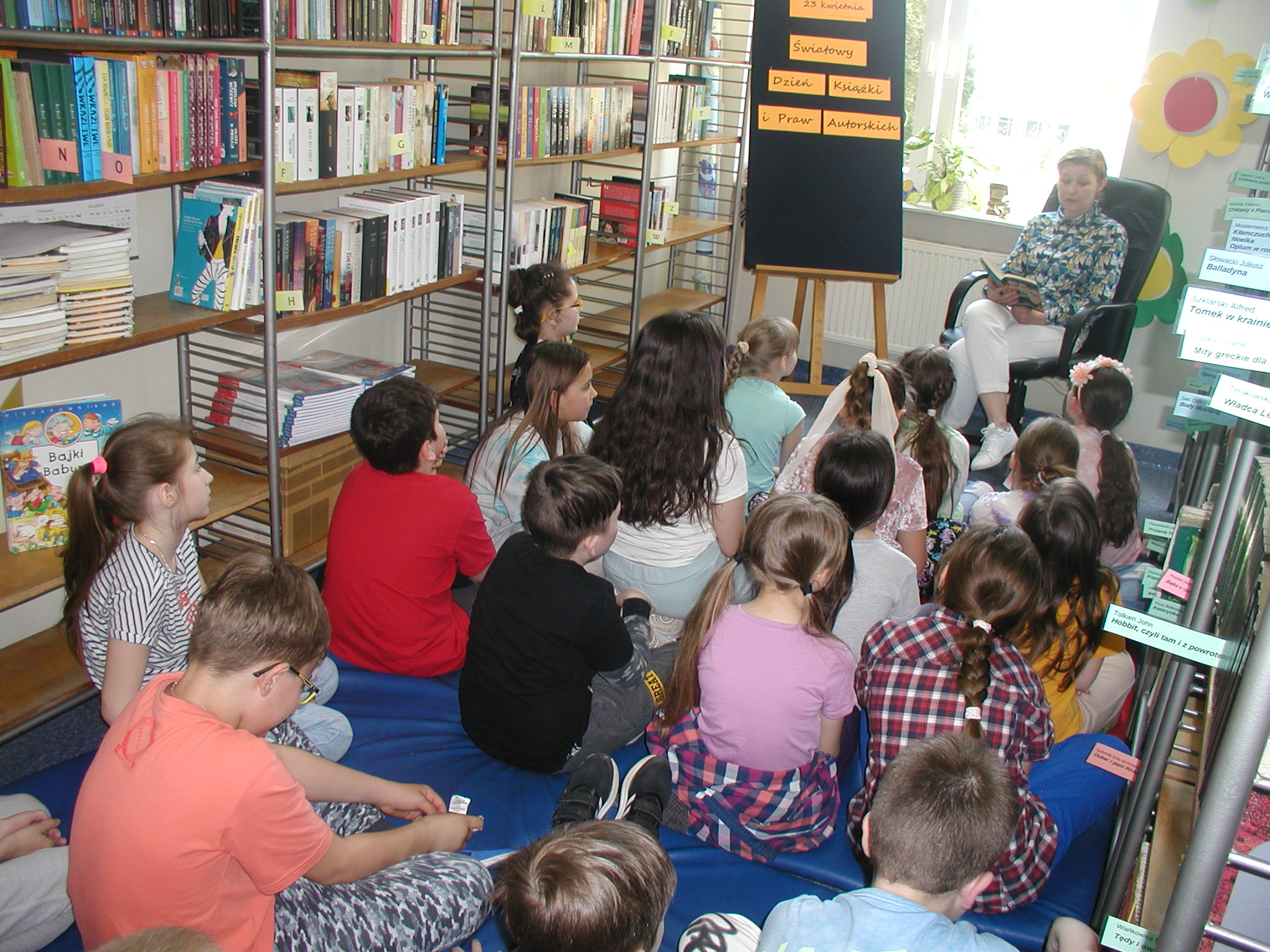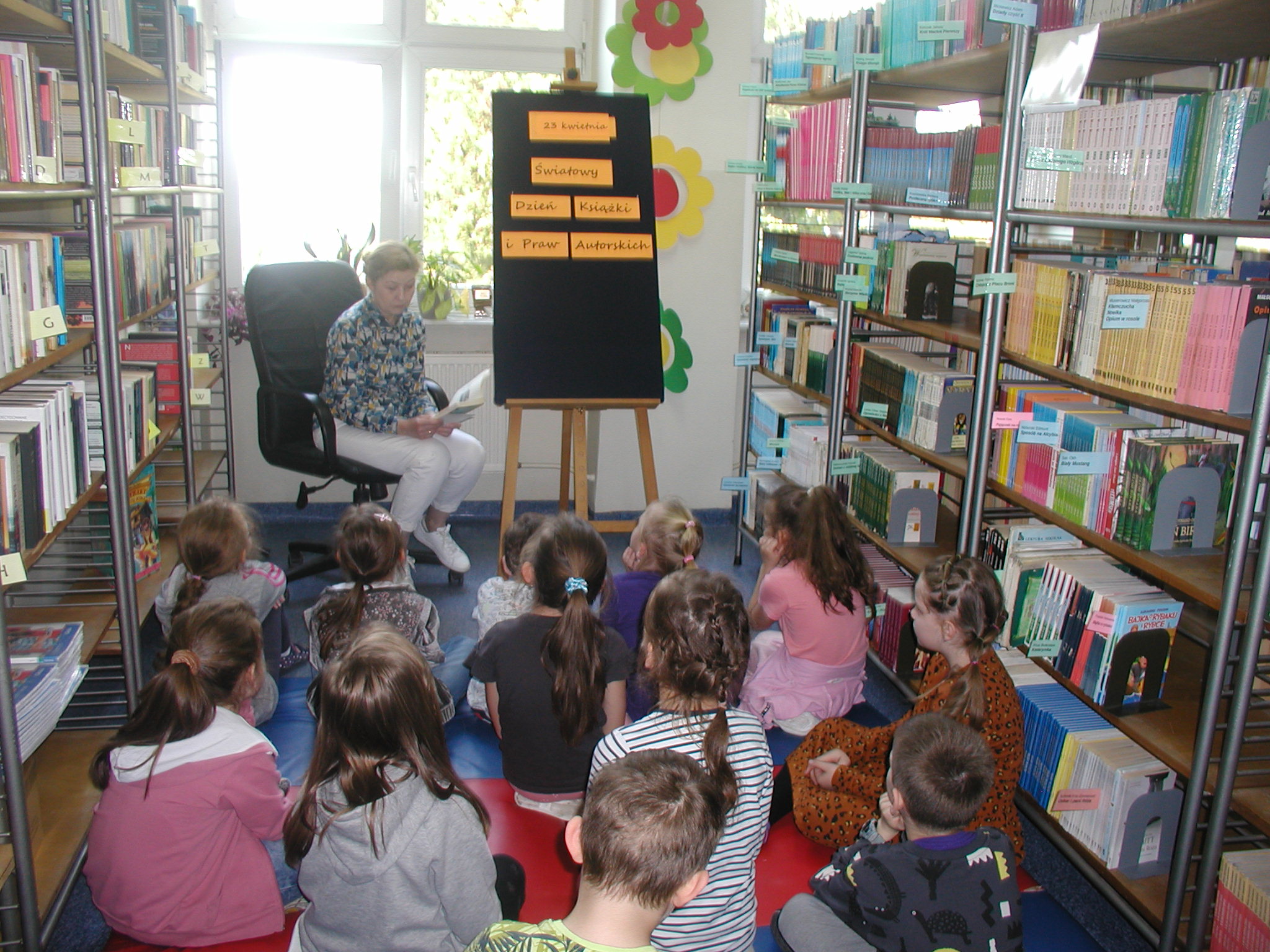 23 kwietnia to Światowy Dzień Książki i Praw Autorskich. Z tej okazji 24 kwietnia do biblioteki szkolnej przybyli uczniowie klas młodszych. Po zapoznaniu gości z ideą święta odbyło się głośne czytanie książki „Zaczarowana Pani Bibliotekarka”.. Dzieci w miłej atmosferze z zaciekawieniem słuchały powieści Elizy Mikulskiej. Za wykazanie się umiejętnością skupienia uwagi, dobrą pamięcią i za udzielenie poprawnych odpowiedzi na pytania dotyczące treści lektury, otrzymały drobne upominki. Starsi uczniowie w nawiązaniu do tego święta, podczas lekcji bibliotecznej zapoznali się z etapami powstawania książki, a następnie rozwiązywali krzyżówkę czytelniczą. Mamy nadzieję, że Światowy Dzień Książki i Praw Autorskich będzie miło się kojarzył naszym czytelnikom i nie tylko okazjonalnie będą odwiedzać bibliotekę w poszukiwaniu dla siebie ciekawych lektur.