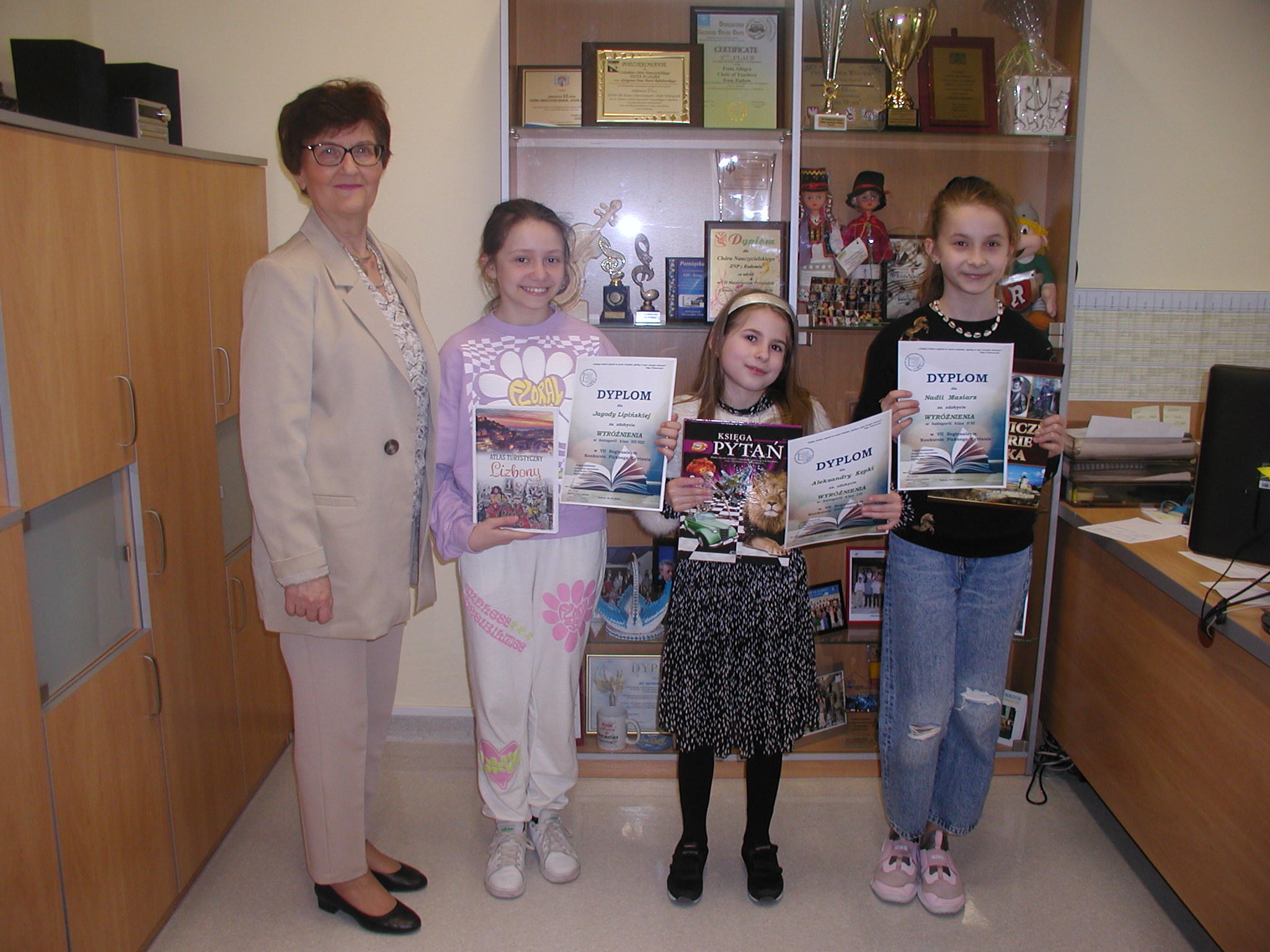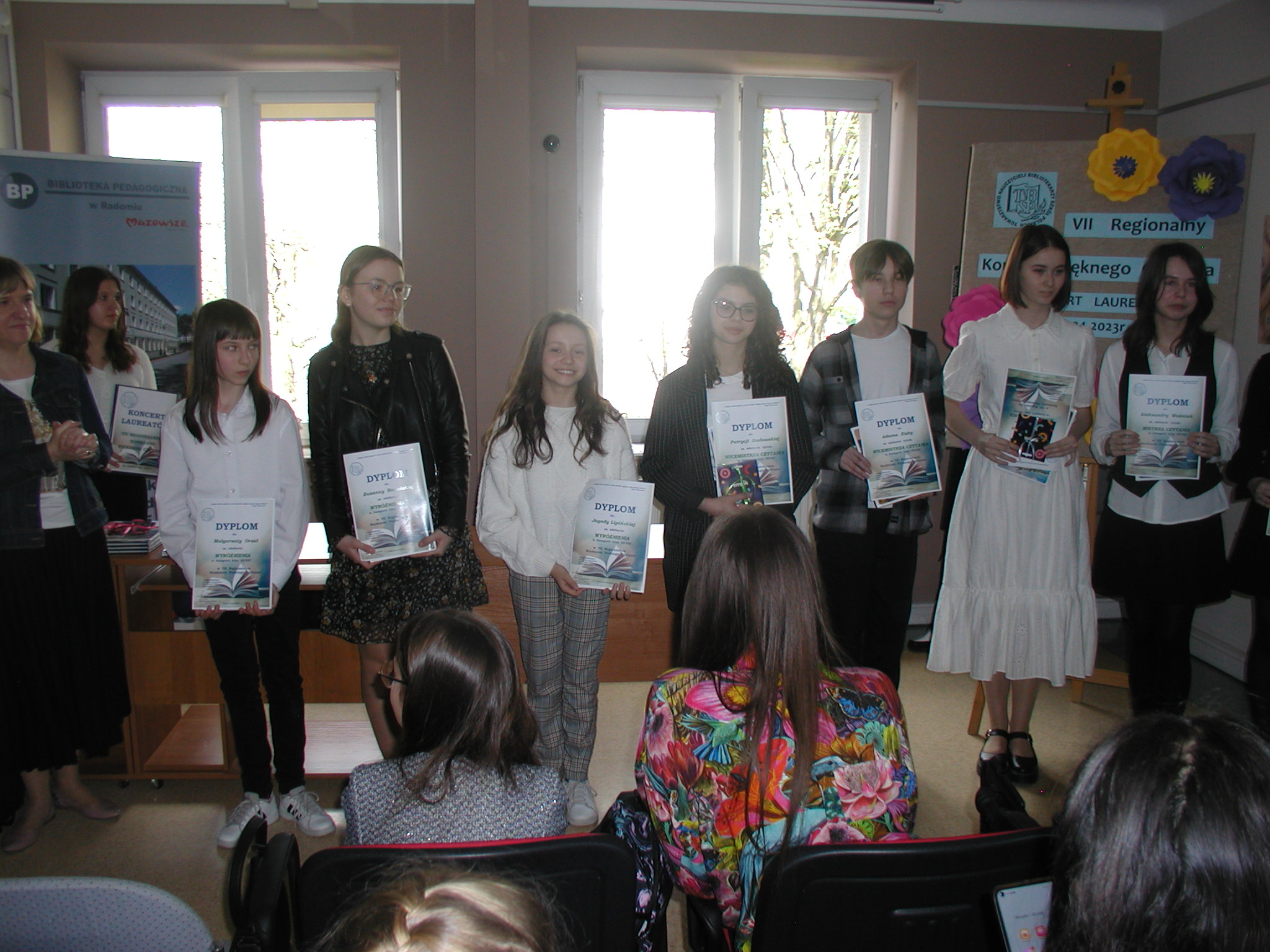 20 kwietnia 2023 r. o godz. 13.00 w Bibliotece Pedagogicznej w Radomiu odbył się Koncert Laureatów VII Regionalnego Konkursie Pięknego Czytania. Podczas uroczystości zostały wręczone nagrody i dyplomy Mistrzom, Wicemistrzom oraz Wyróżnionym. Mistrzowie powtórnie zaprezentowali przygotowane przez siebie fragmenty tekstów. Z naszej szkoły z rąk prezes Stowarzyszenia Nauczycieli Bibliotekarzy Szkół Polskich Oddział w Radomiu, pani Ewy Wziątek wyróżnienia otrzymały: Aleksandra Kępka, Nadia Masiarz i Jagoda Lipińska.