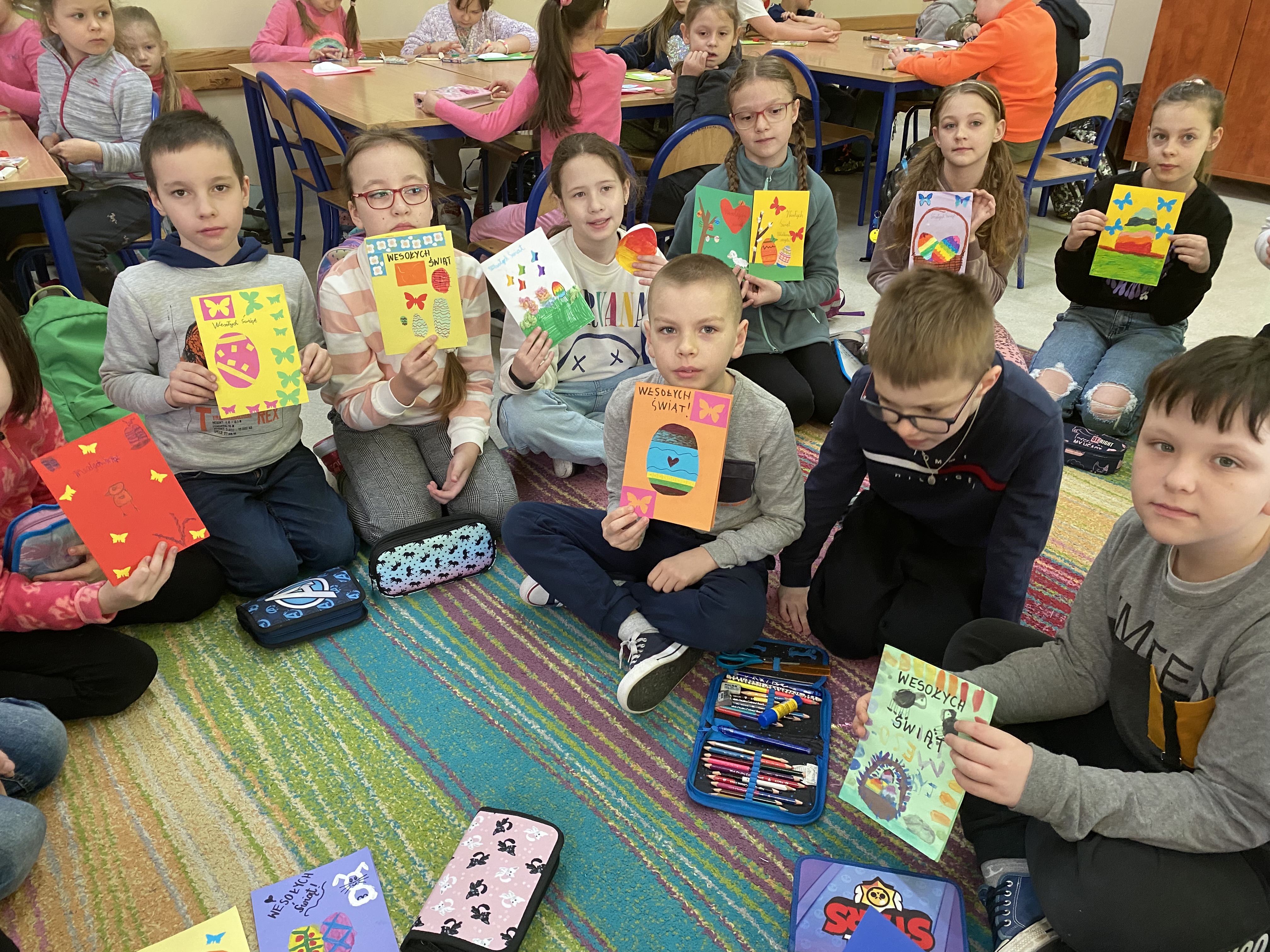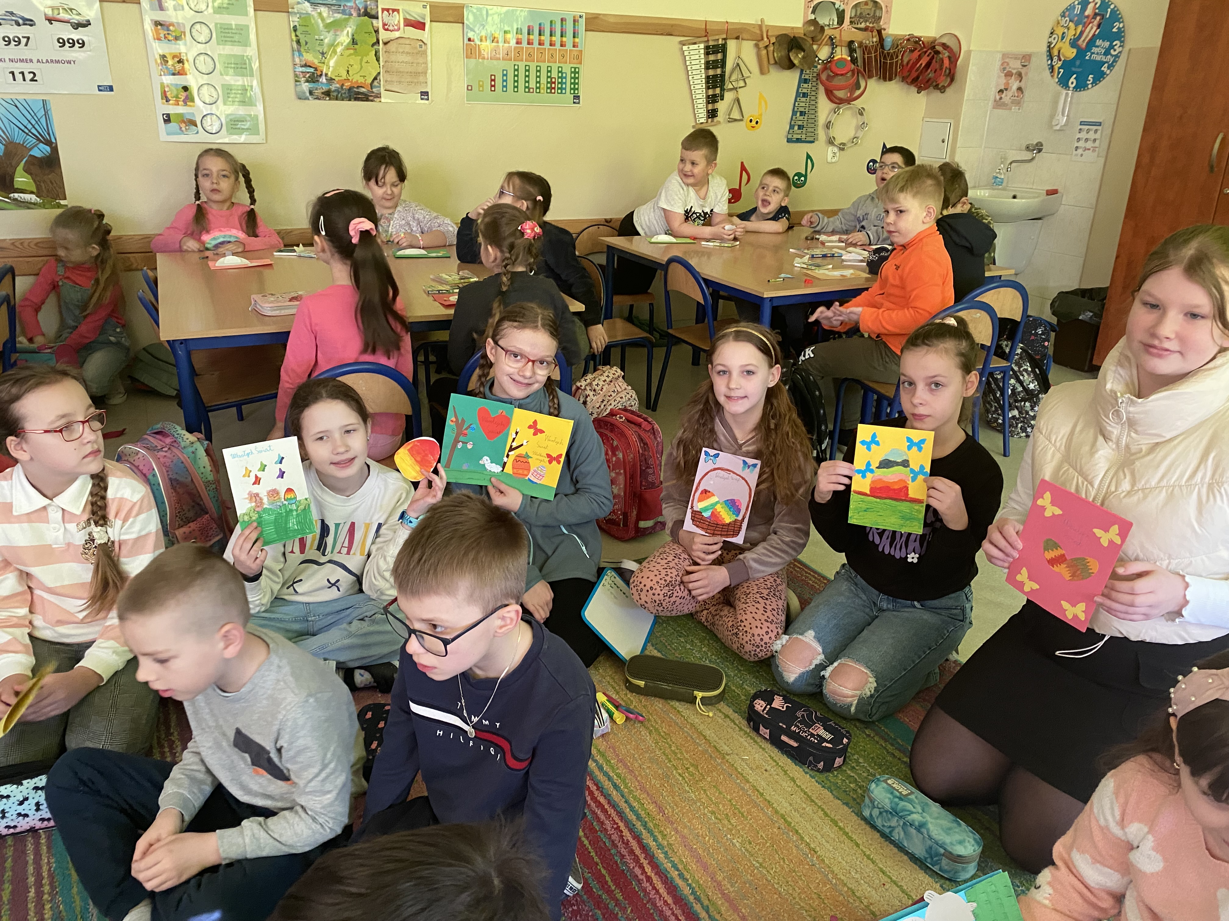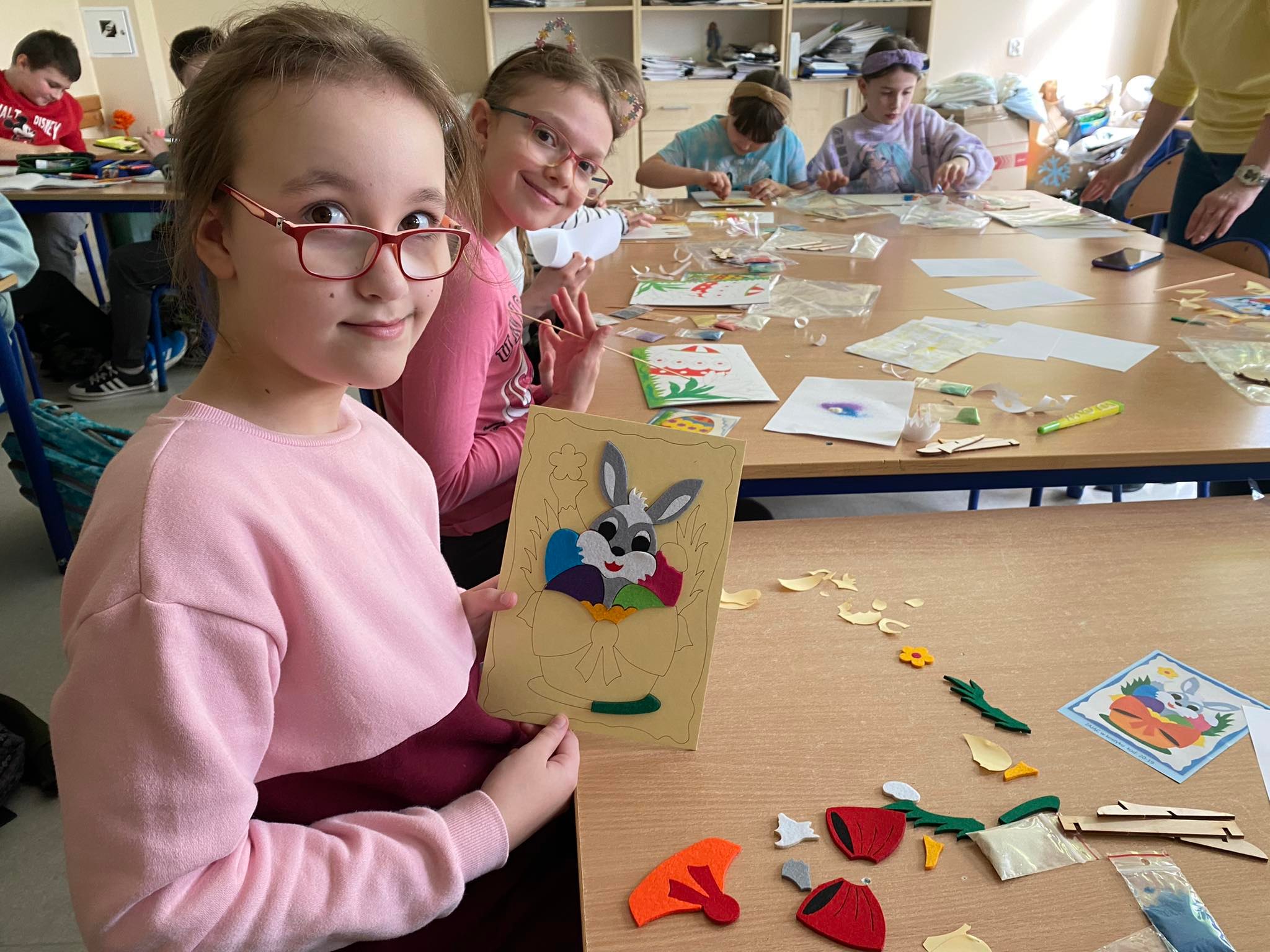 Gdy wiosna zagościła już w naszej szkole, zaczął się czas tworzenia świątecznych ozdób i prac plastycznych. Właśnie dlatego w dniu 29.03.23 r. odbyły się warsztaty wielkanocne, podczas których uczniowie z kl.3a i Zeróweczki przygotowały karty świąteczne z życzeniami dla mieszkańców Domu Pomocy Społecznej i Weterana Walki i Pracy w Radomiu.