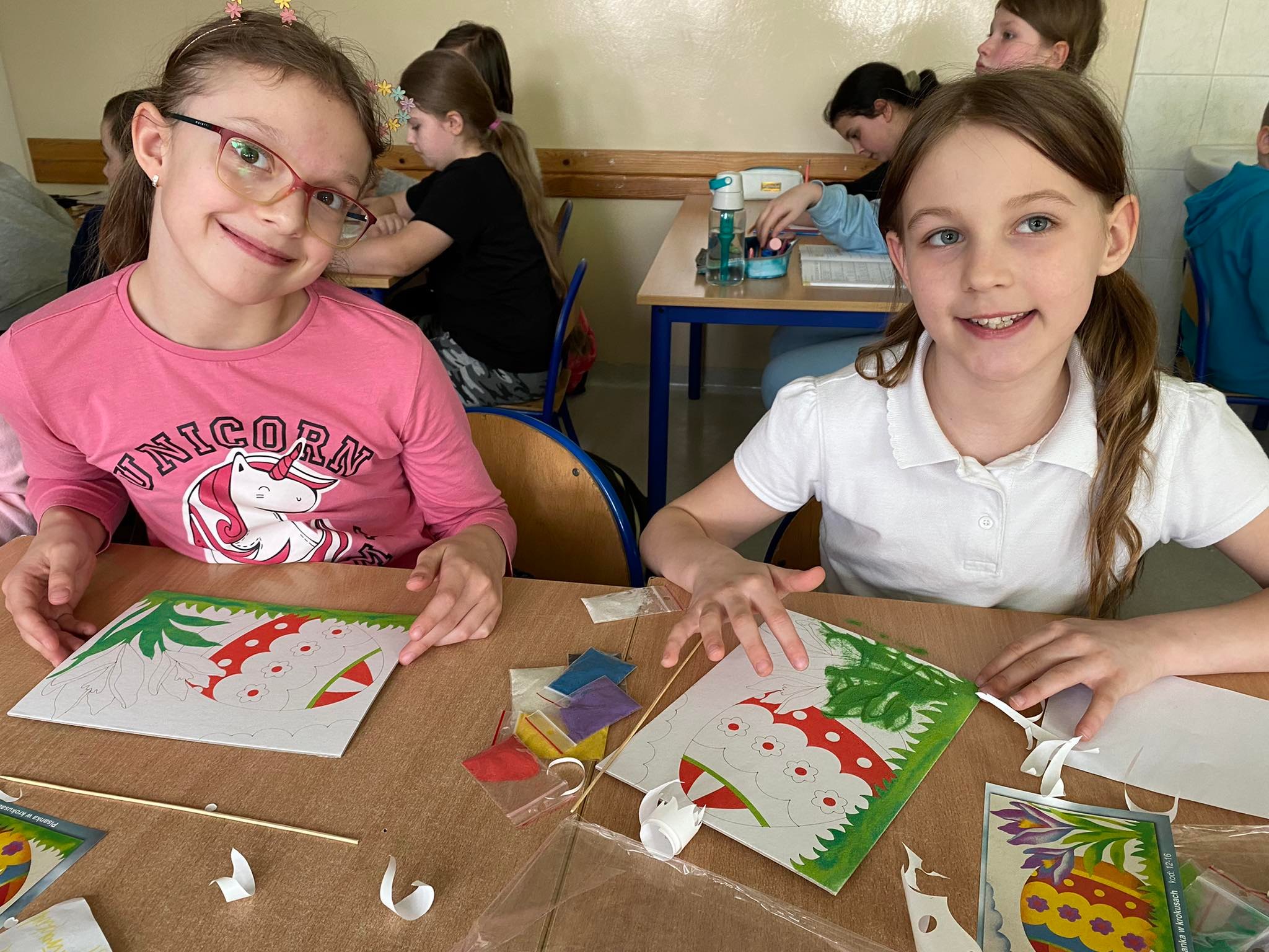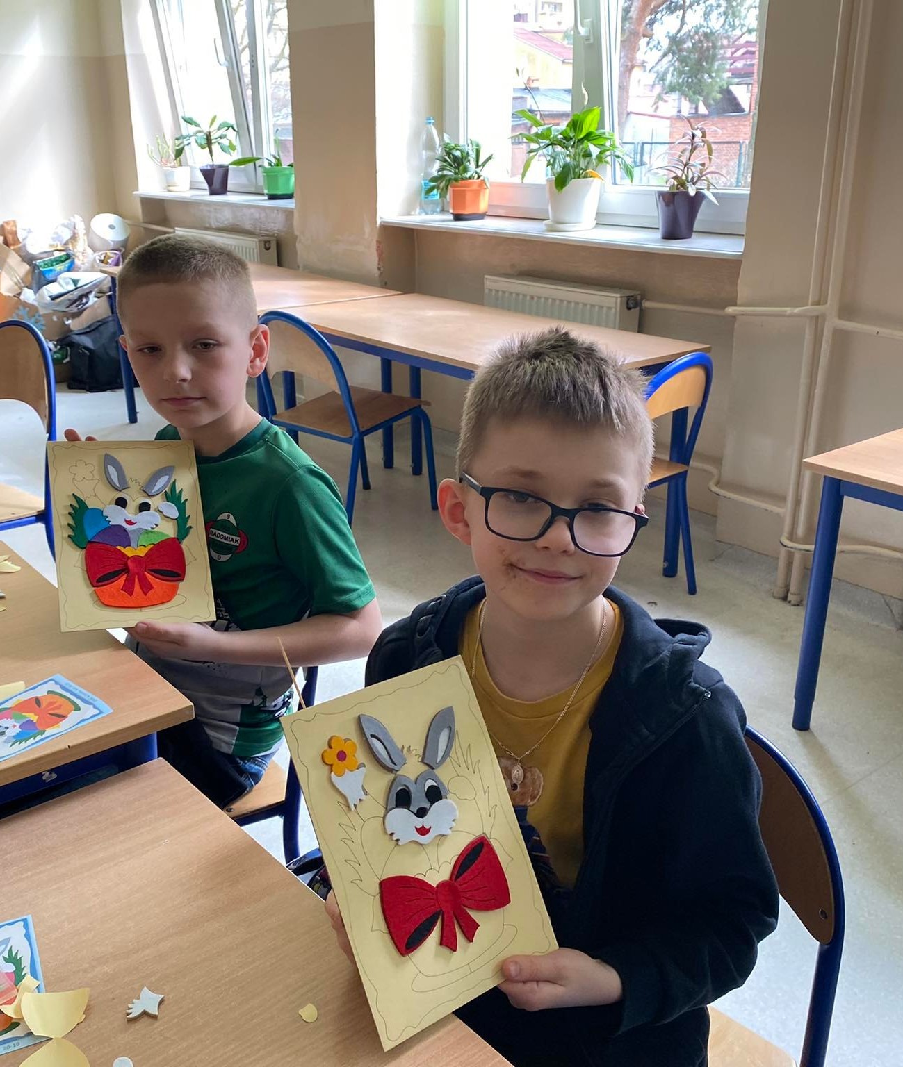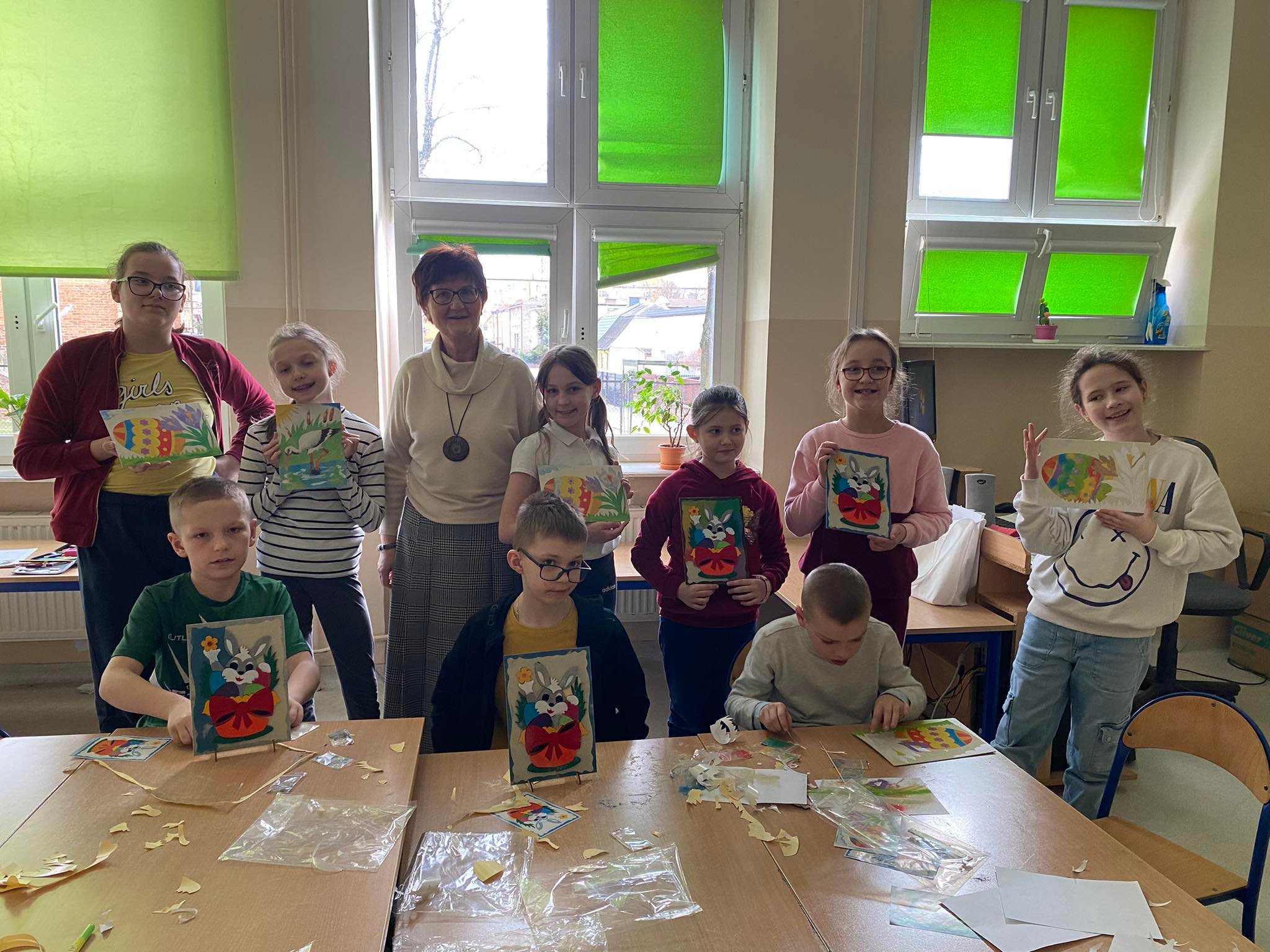 Gdy wiosna zagościła już w naszej szkole, zaczął się czas tworzenia świątecznych ozdób i prac plastycznych. Właśnie dlatego w dniu 29.03.23 r. odbyły się warsztaty wielkanocne, podczas których uczniowie z kl.3a i Zeróweczki przygotowały karty świąteczne z życzeniami dla mieszkańców Domu Pomocy Społecznej i Weterana Walki i Pracy w Radomiu.