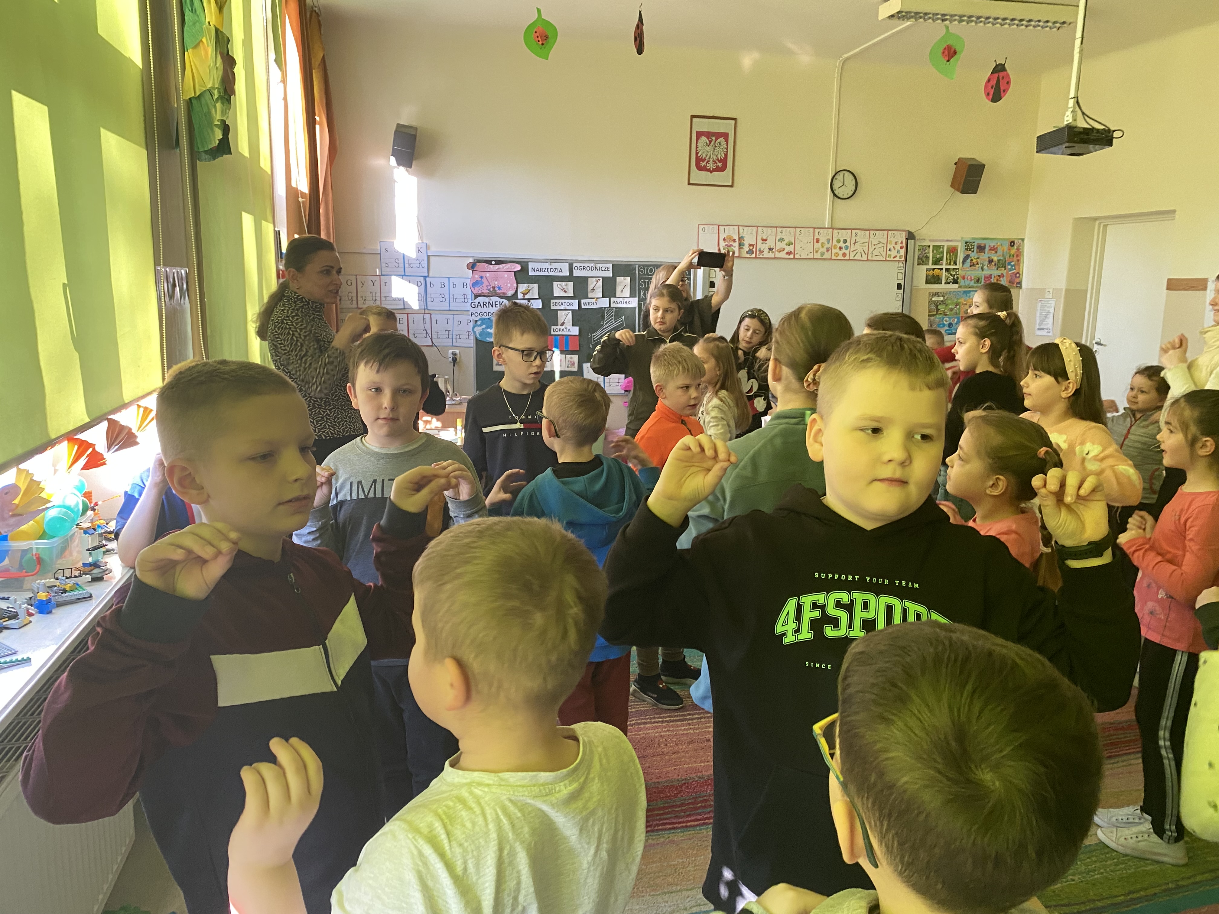 “Są takie święta raz do roku, co budzą życie, budzą czas. Wszystko, rozkwita w słońca blasku i wielka miłość rośnie w nas, miłość do ludzi, do przyrody, w zielone każdy z wiosną gra, zima już poszła spać do morza lecz w naszym sercu radość trwa…”