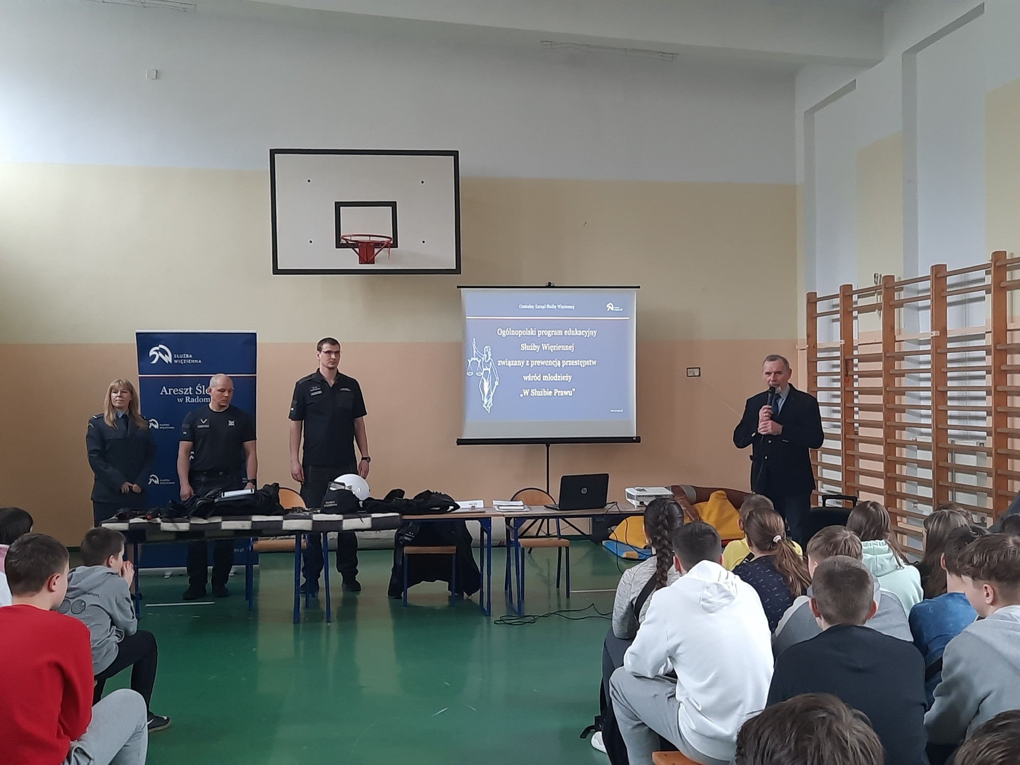 W dniu 8 marca 2023r. w naszej szkole odbyło się spotkanie z funkcjonariuszami Aresztu Śledczego w Radomiu w ramach Ogólnopolskiego programu edukacyjnego Służby Więziennej związanego z prewencją przestępstw wśród młodzieży „W SŁUŻBIE PRAWU”.