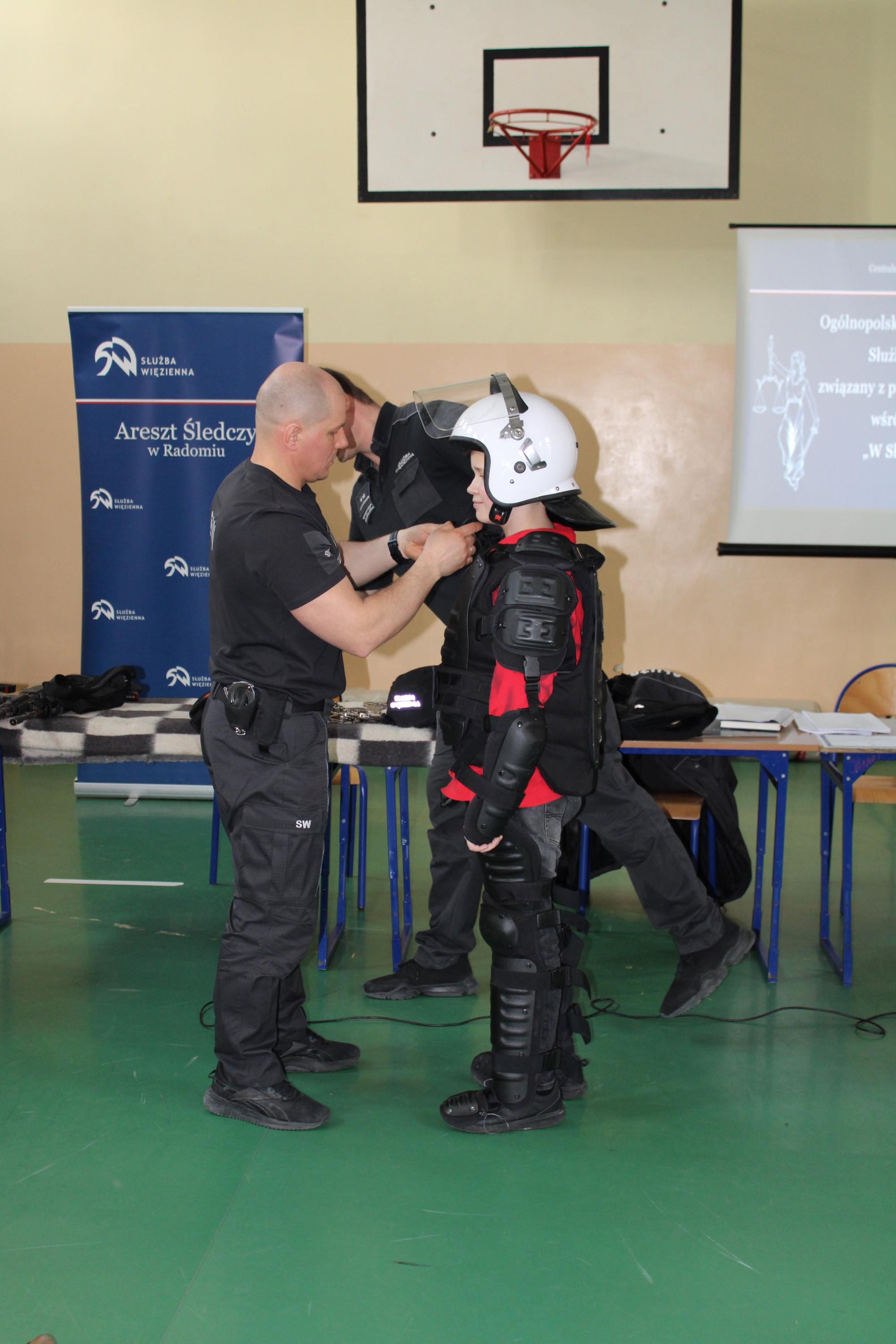 Młodzież z zaangażowaniem brała udział w zajęciach, padło wiele pytań odnośnie aspektów prawnych jak i życia za więziennym murem. Duże zainteresowanie wzbudziły środki ochrony osobistej i środki przymusu bezpośredniego m.in. tarcze, kajdanki, broń palna, hełmy.