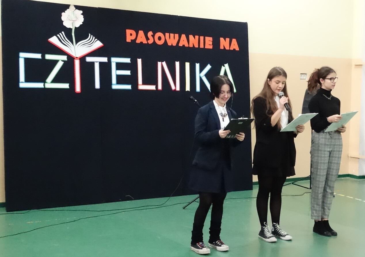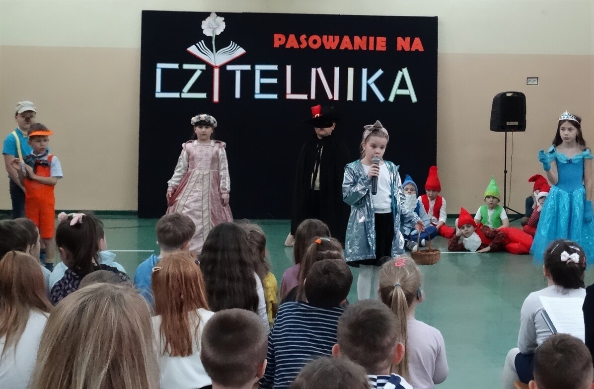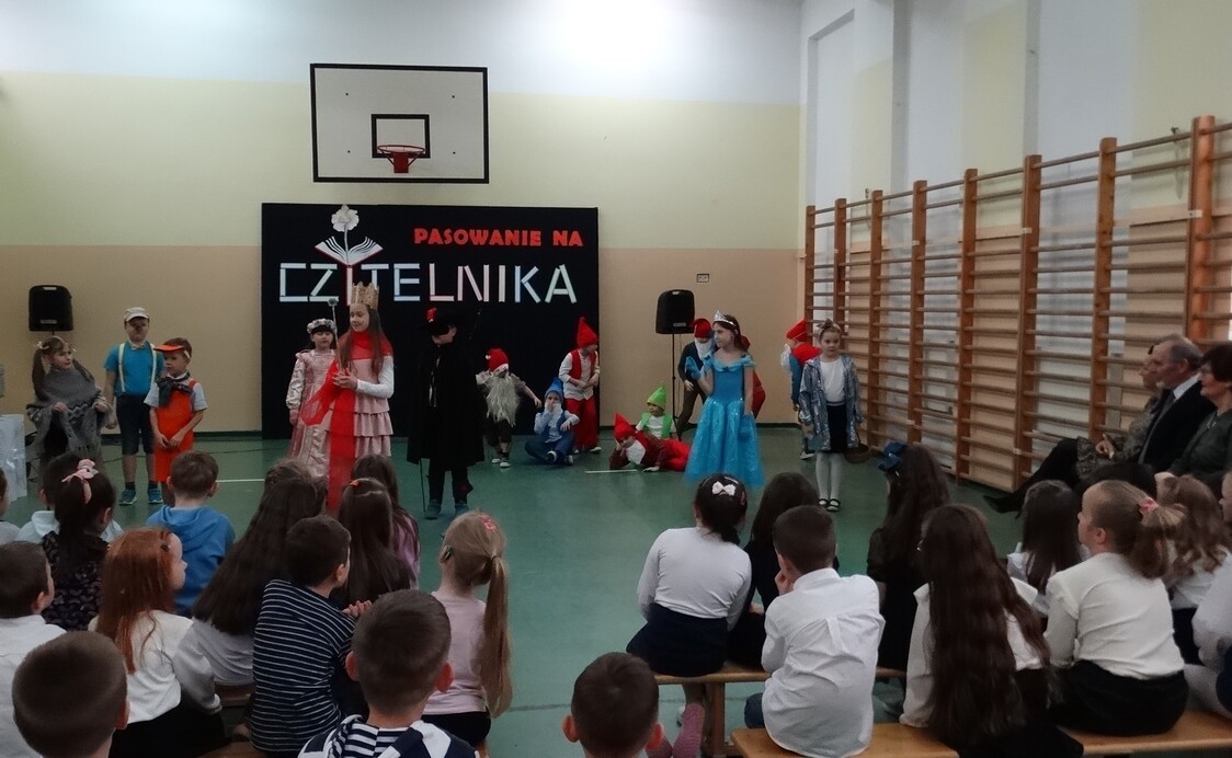 11 stycznia 2023 r. w naszej szkole odbyło się „Pasowanie na czytelnika” uczniów klas pierwszych. Na uroczystości gościliśmy grupy przedszkolne wraz z opiekunami z Przedszkola nr 19 z Oddziałami Integracyjnymi. Uroczystość rozpoczęła się przedstawieniem w wykonaniu Teatrzyku „Bajkoludki”, przygotowanym przez panie: Annę Dolegę i Mariolę Piechurską. Zadaniem widzów była pomoc Królowej Książek w rozpoznaniu z jakiej baśni pochodzą bohaterowie inscenizacji. Następnie pierwszoklasiści zapoznali się prośbami Królowej Książki i obiecali, że będą się do nich stosować. Aby o tym pamiętali, wychowawcy klas otrzymali „PROŚBY KSIĄŻKI” do wyeksponowania w sali lekcyjnej. Po złożeniu uroczystego przyrzeczenia, pierwszaki zostały pasowane przez Dyrekcję Szkoły na czytelników biblioteki.