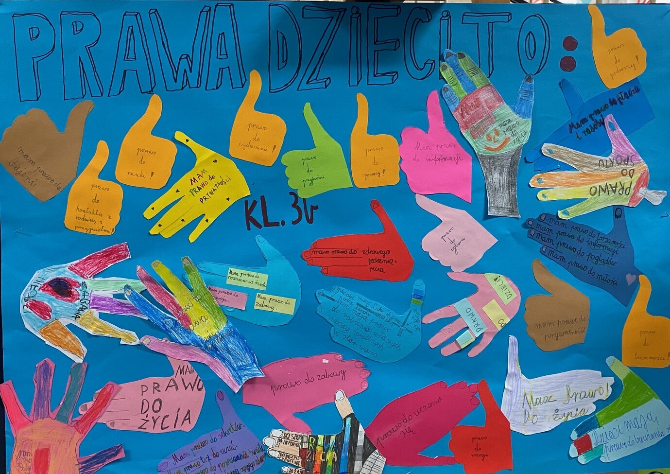 Dnia 20 listopada 1989 roku Zgromadzenie Ogólne ONZ uchwaliło Konwencję praw dziecka. W rocznicę tego wydarzenia obchodzony jest Międzynarodowy Dzień Praw Dziecka. W dniu 21listopada 2022 roku w ramach działalności Klubu Szkół UNICEF i SU społeczność naszej szkoły po raz drugi organizowała Dzień Praw Dziecka. W tym roku obchody mają szczególny przekaz. Okazujemy wsparcie wszystkim dzieciom na świecie, których prawa nie są respektowane. Przeciwdziałamy dyskryminacji i głośno mówimy o tolerancji. Integrujemy się z naszymi kolegami z Ukrainy, którzy razem z nami tworzą społeczność. Hasło przewodnie akcji w naszej szkole brzmiało „Tolerancja –Tak, Dyskryminacja-NIE”. W ramach obchodów dzieci i młodzież wykorzystały w podejmowanych działaniach niebieski kolor, który jest symbolem solidarności z ich rówieśnikami z regionów, w których pomoc niesie organizacja. Uczniowie szkoły uczestniczyli w zajęciach, na których podejmowany był temat praw dziecka, klasy 1-3 przygotowały plakaty, a młodzież klas ósmych zorganizowała szkolną debatę- Tolerancja-TAK, Dyskryminacja –NIE.