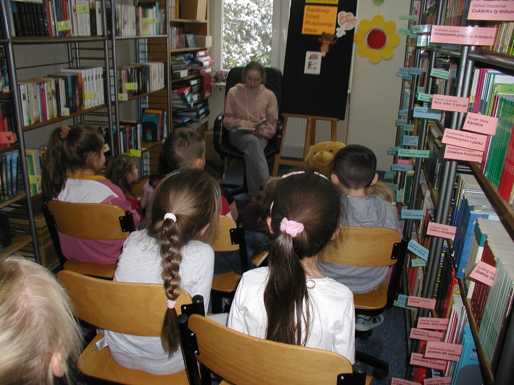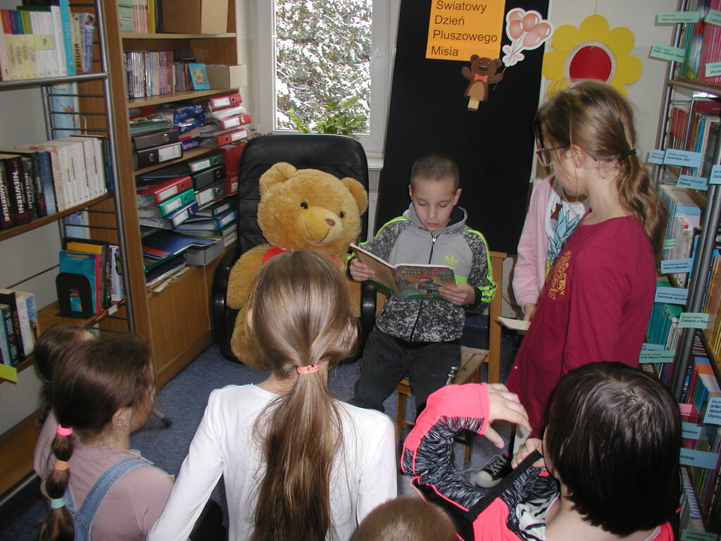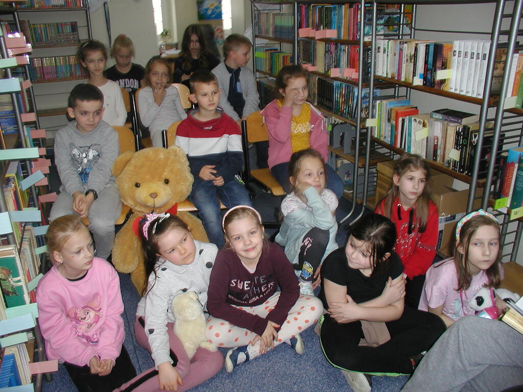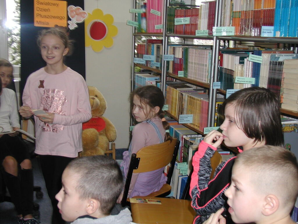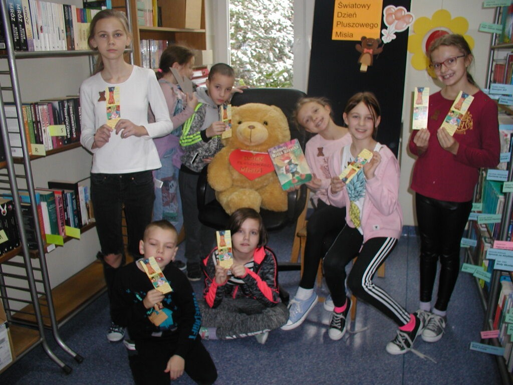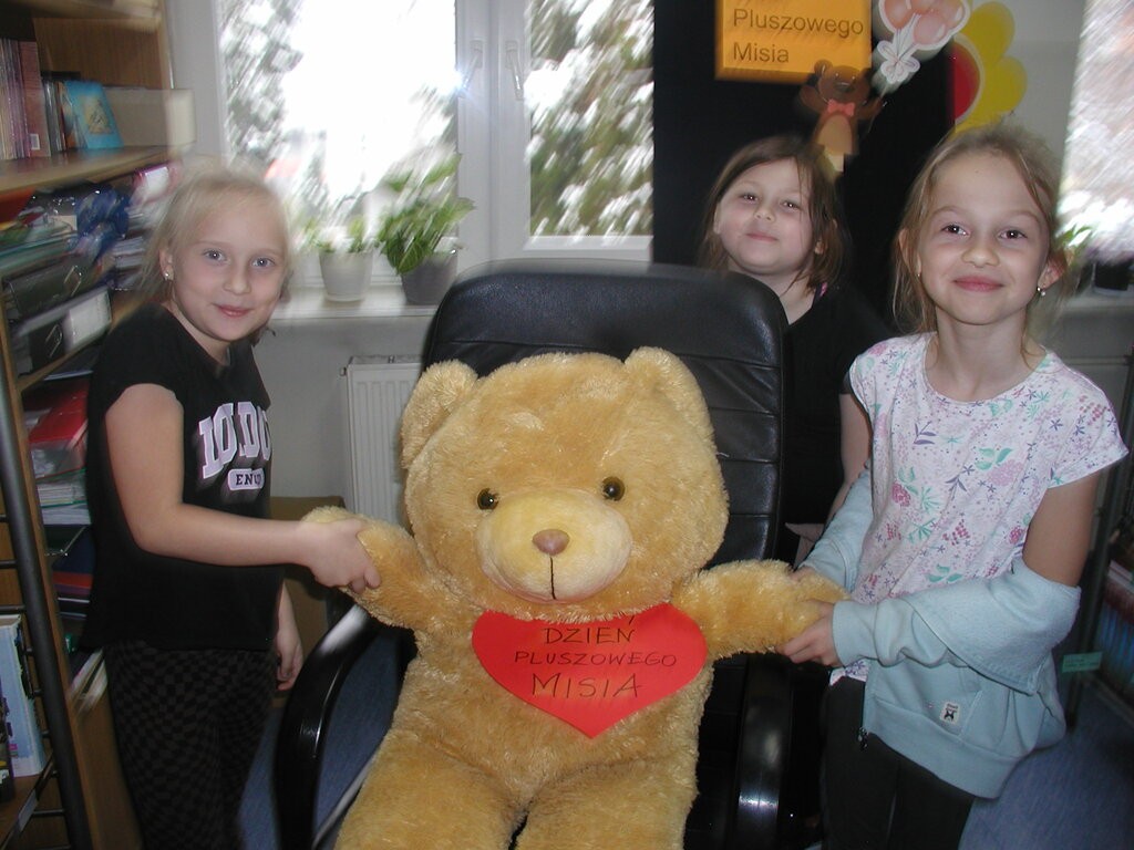 25 listopada przypada Światowy Dzień Pluszowego Misia, z tej okazji panie z biblioteki zaprosiły najmłodszych uczniów do świętowania. Dzieci obejrzały wystawę książek o misiach, wysłuchały w obecności Misia fragmentów przygód Misia Uszatka i Kubusia Puchatka ze Stumilowego Lasu. W rolę lektorów wcielili się uczniowie z klasy 3a oraz Lena z klasy 8a. Po wysłuchaniu fragmentów opowiadań uczniowie wzięli udział w quizie wiedzy o tym sympatycznym zwierzęciu, który poprowadziła Wiktoria z kl. 8a. Nie zabrakło pląsów „Misie dwa” i "Ja jestem niedźwiadek" oraz wspólnej fotografii z misiem. Na pamiątkę spotkania uczestnicy otrzymali misie-przyklejanki. Obchody Dnia Pluszowego Misia miały na celu kształtowanie i rozwijanie zainteresowań literackich i artystycznych naszych Milusińskich. Zapraszamy małych i dużych na kolejne wydarzenia do szkolnej biblioteki:)