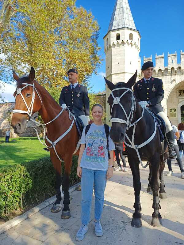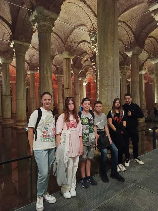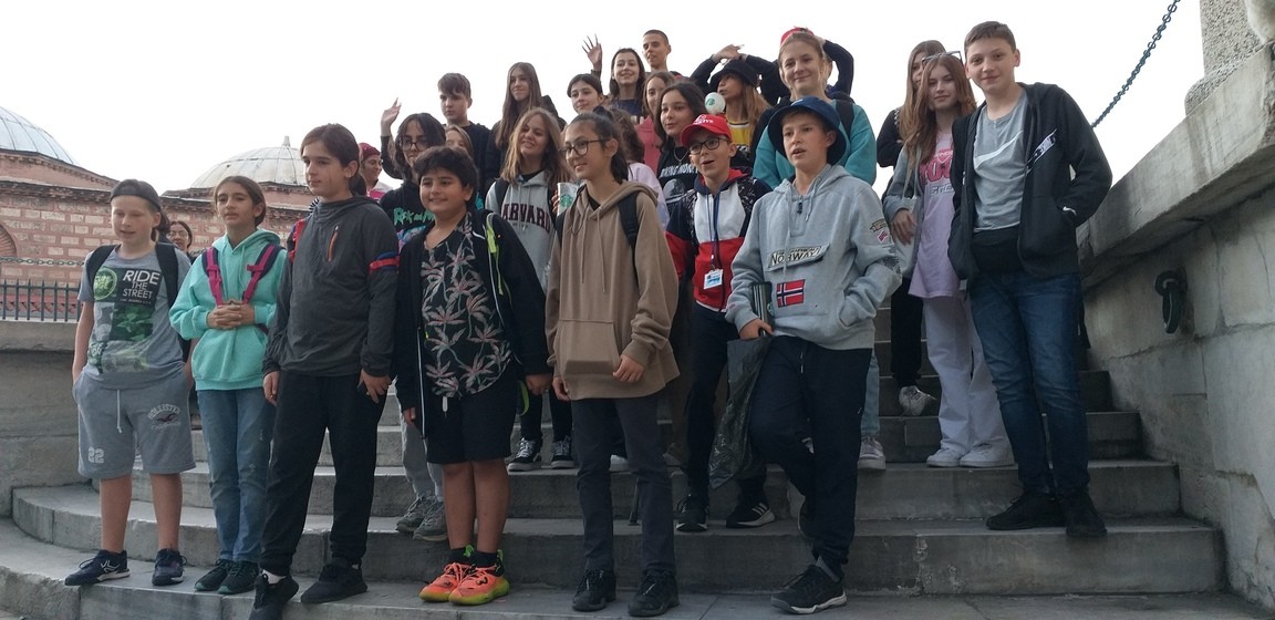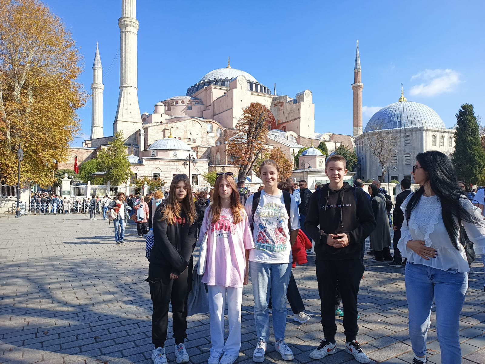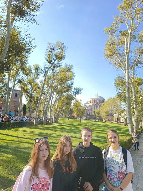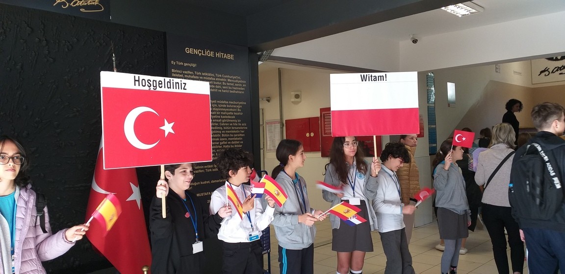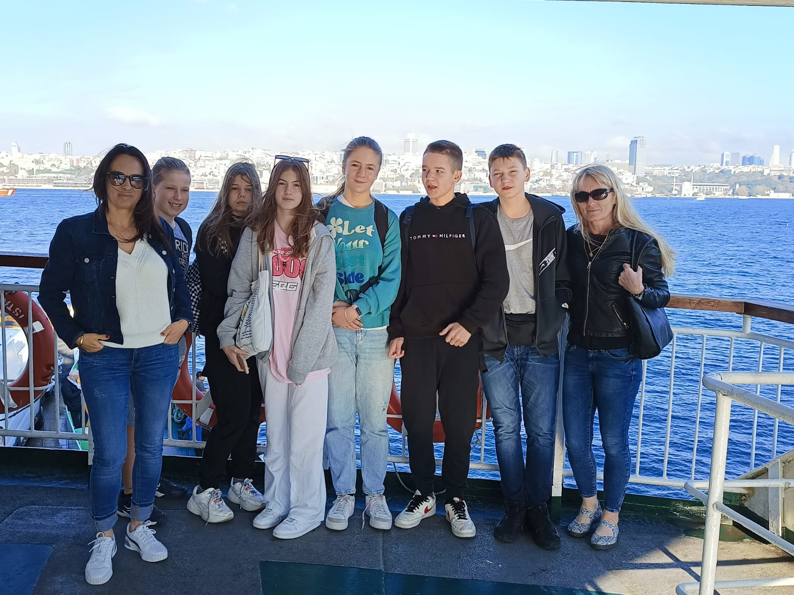 W dniach 24 - 28 października 2022 r. sześcioro uczniów naszej szkoły wraz z nauczycielami wzięło udział w wymianie partnerskiej w Turcji, w ramach projektu Erasmus + „European Makerspace Network”. W wymianie brali również udział przedstawiciele szkół z Hiszpanii i Chorwacji. Pierwszy dzień pobytu to uroczyste powitanie gości, połączone z programem artystycznym, zwiedzanie szkoły oraz prezentacje szkół i krajów uczestniczących w projekcie. Po oficjalnej części odbyły się warsztaty plastyczne, mające na celu integrację młodzieży, pobudzenie kreatywności i lepszą komunikację rówieśniczą. Drugi dzień to całodzienna wycieczka do polskiej wioski pod Stambułem – Polonezkoy, która została założona przez Polaków dla Polaków. Wieś znajduje się po azjatyckiej części Bosforu. Na niewielkim obszarze porośniętym drzewami znajdują się domki mieszkańców, kościół katolicki, a także cmentarz, na którym przeważają tablice z polskimi nazwiskami. Jest tablica poświęcona Mickiewiczowi, hotel o nazwie Polka, dom pamięci Cioci Zosi. Obok wioski znajduje się rezerwat przyrody, do którego wybraliśmy się na krótki spacer. Po wspólnym lunchu dzieci spędzały czas przy grach i zabawach na świeżym powietrzu. W kolejnym dniu były warsztaty z robotyki Lego Spike Prime. Pierwsze zadanie polegało na zbudowaniu według instrukcji, robota – rowerzystę, a następnie na zaprogramowaniu go według własnego pomysłu. Nasi uczniowie zaprogramowali robota tak, by jeździł do przodu i do tyłu, reagując na sygnalizację świetlną – zatrzymując się na czerwonym świetle i ruszając na zielonym. Wszyscy uczniowie ucząc się świetnie się bawili. Oprócz komunikacji w języku angielskim, uczniowie doskonalili swoje umiejętności informatyczne, w tym programowanie w języku wizualnym, podobnym do języka Scratch. Kolejny dzień wizyty to całodzienna wycieczka do historycznej części Stambułu. Zwiedziliśmy pałac Topkapi, w którym znajdowała się rezydencja sułtanów. Pałac Topkapı to nie jedna budowla, a cały kompleks budynków, pawilonów i ogrodów. W pomieszczeniach kompleksu można było zobaczyć m. in. ekspozycję ceramiki i porcelany, naczyń i sprzętów kuchennych do gotowania i serwowania potraw, broń i zbroi, jakiej używano do walk. Kolejnym punktem programu była wycieczka do Cysterny Bazyliki. To podziemna komnata, z zanurzonymi w wodzie marmurowymi kolumnami, której celem było magazynowanie wody dla mieszkańców w czasach bizantyjskich i osmańskich. Na zakończenie wycieczki udaliśmy się na zwiedzanie Wielkiego Bazaru, połączone z zakupem pamiątek i tradycyjnych tureckich smakołyków. Ostatni dzień wymiany to uroczystość wręczenia certyfikatów wszystkim osobom uczestniczącym w projekcie. To również akademia z okazji Dnia Republiki Turcji, połączona z występami artystycznymi. Po jej zakończeniu uczniowie odbyli rejs statkiem po Bosforze, a popołudnie spędzili wraz z rodzinami goszczącymi. Dla wszystkich uczestników projektu pobyt w Turcji był doskonałą okazją do poznania niezwykle bogatej historii i kultury tego kraju, doskonalenia umiejętności językowych, a także zdobycia wiedzy z zakresu kodowania. "Było to cudowne doświadczenie i wielka przygoda, która pozostanie nam na długo w pamięci " - tak wizytę podsumowała Olga, jedna z uczestniczek projektu.