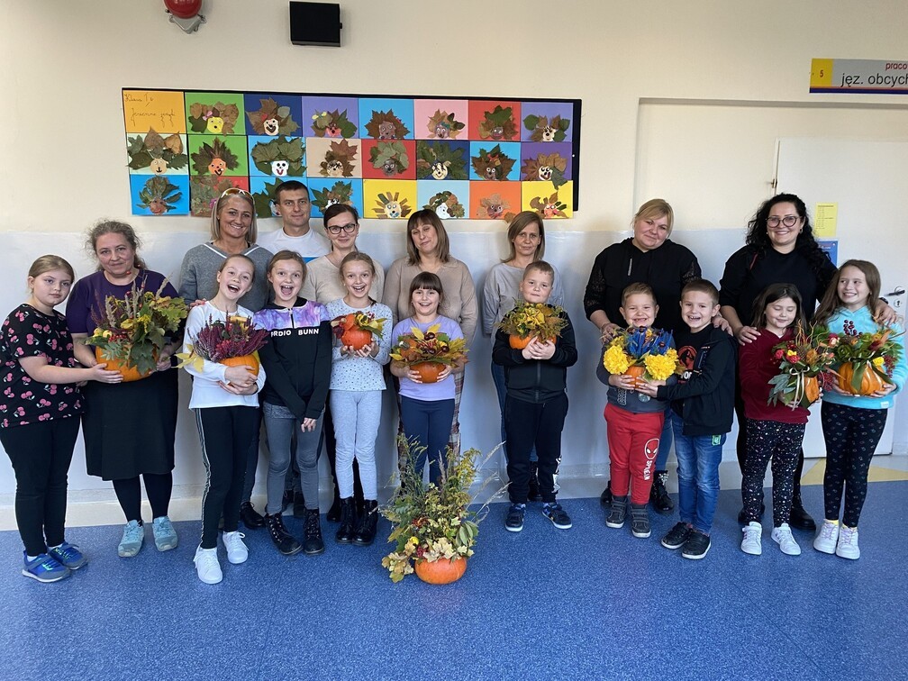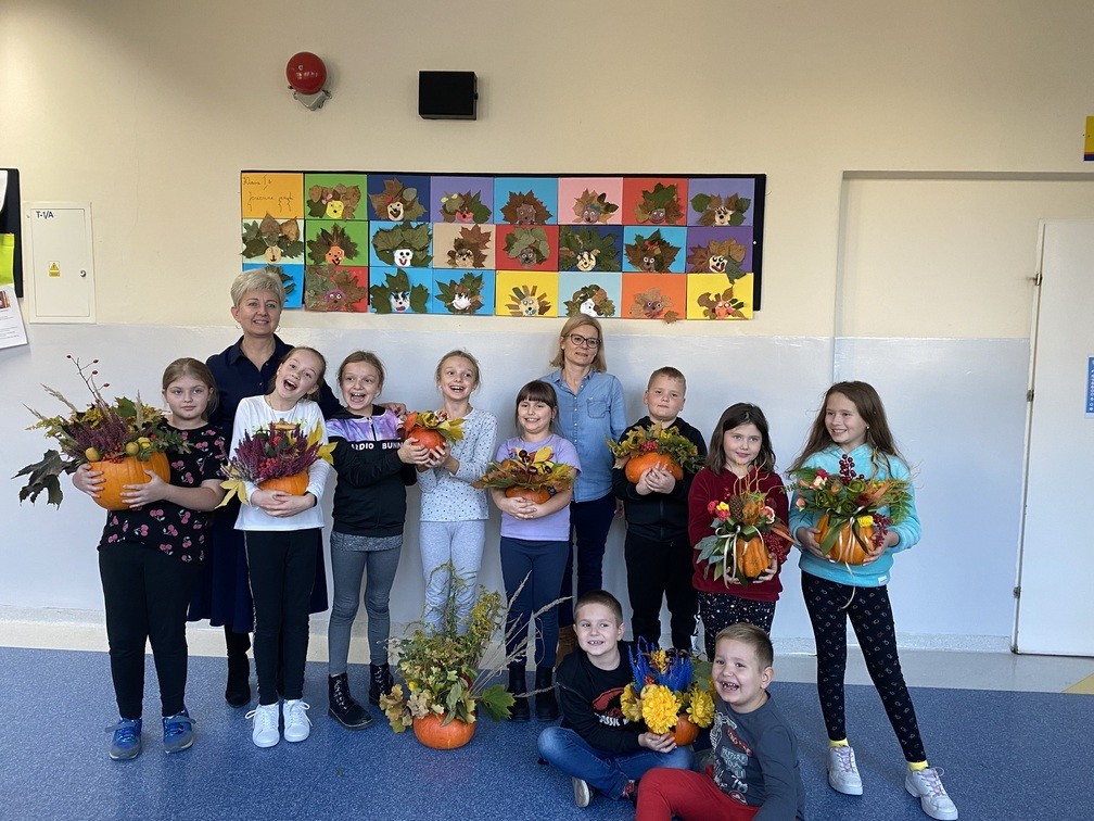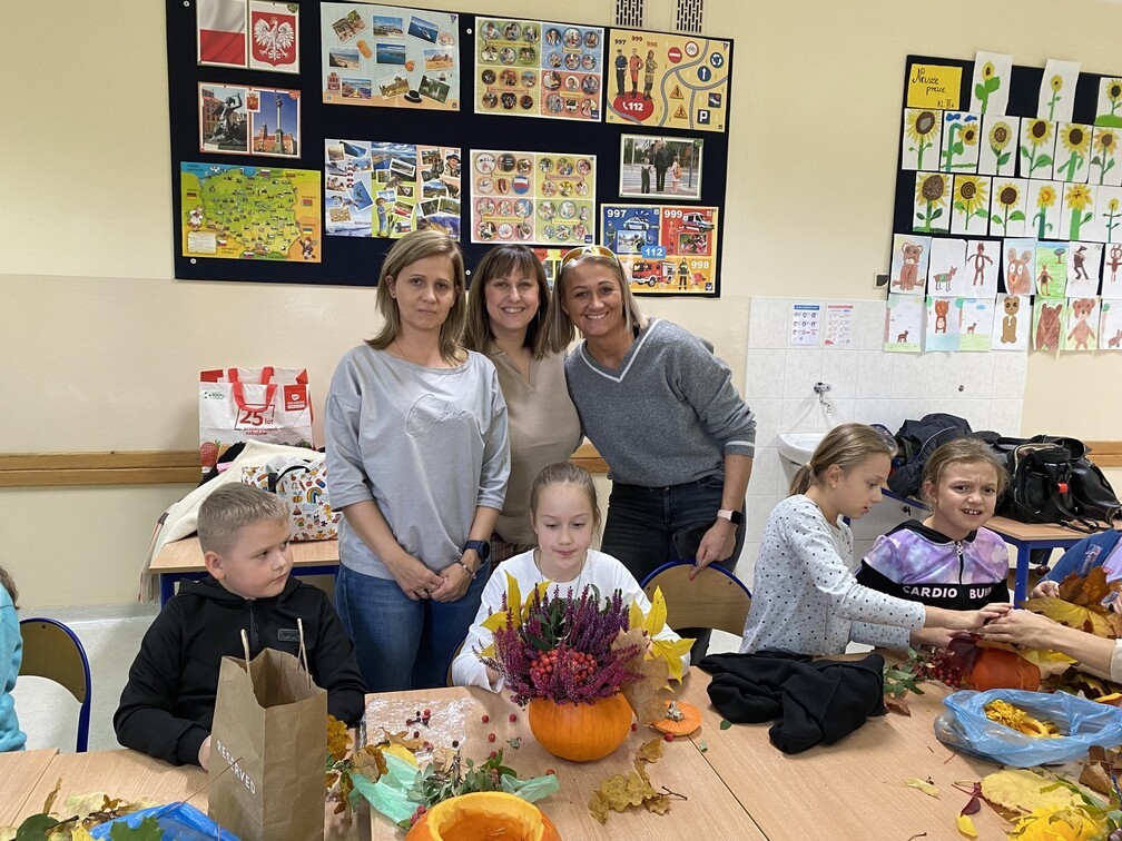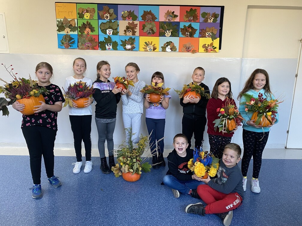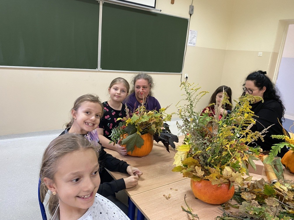 12 października 2022 roku w klasie 3 A odbyły się warsztaty z rodzicami pn. „Jesienne bukiety”. Uczniowie z nauczycielami i rodzicami w miłej atmosferze wspólnie wykonywali jesienne bukiety w dyni z wykorzystaniem darów jesieni. Wszyscy wykazywali się pomysłowością i fantazją, wykorzystując kolorowe liście, suszone kwiaty, trawy, szyszki, żołędzie, czerwoną jarzębinę itp.. Zgodnie z instrukcją prowadzących, a także własną inwencją twórczą, powstały niepowtarzalne prace w barwach polskiej złotej jesieni, które ozdobiły wejście do naszej szkoły. Na każdym kroku było widać zaangażowanie w realizację postawionych zadań, zarówno ze strony dzieci, jak i dorosłych. Efekty twórczej pracy możemy podziwiać w kąciku Pani Jesieni.