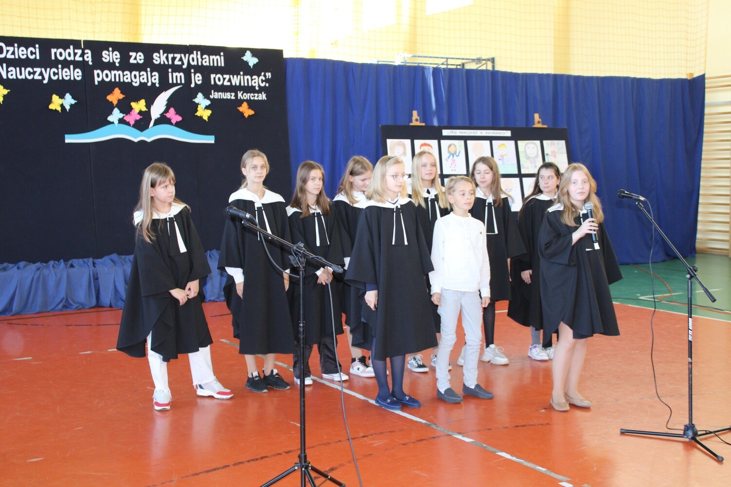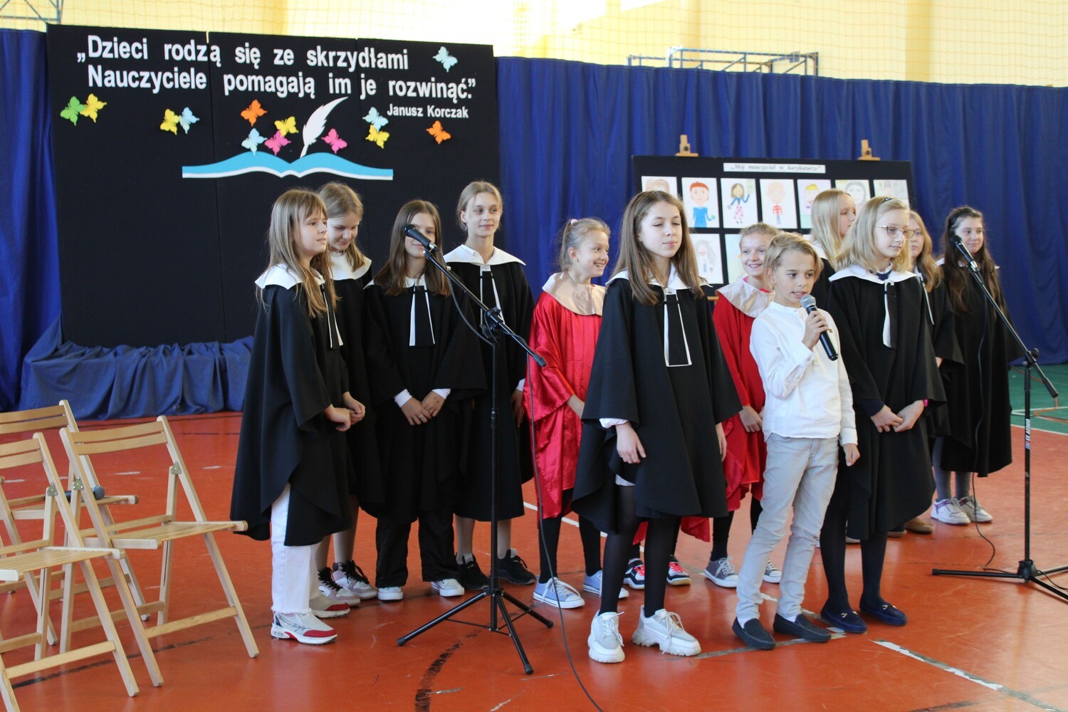 Dzień Edukacji Narodowej obchodzony był w naszej szkole 13 października 2022 r. Z tej okazji odbyła się uroczystość szkolna z udziałem dyrekcji szkoły, nauczycieli, rodziców, uczniów i zaproszonych gości.