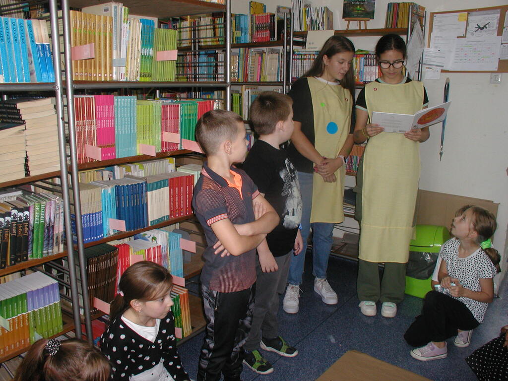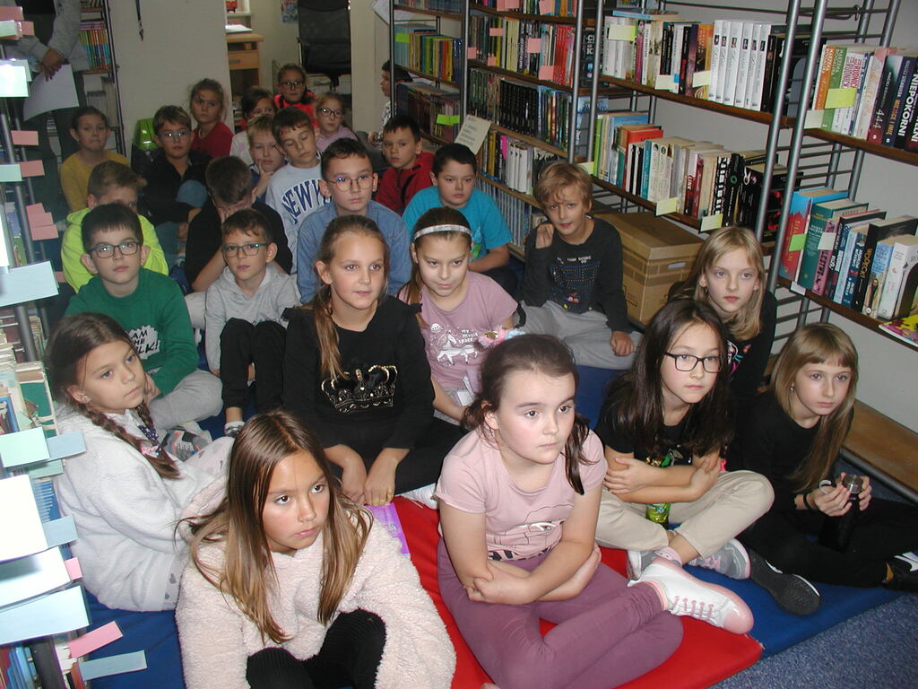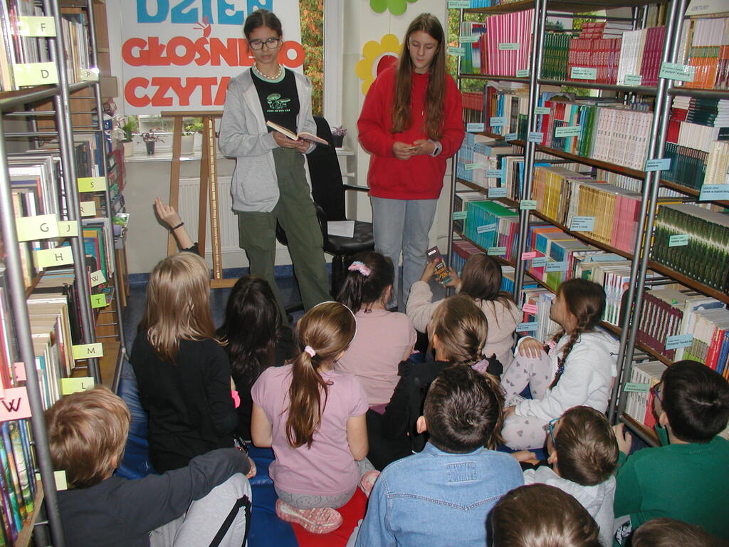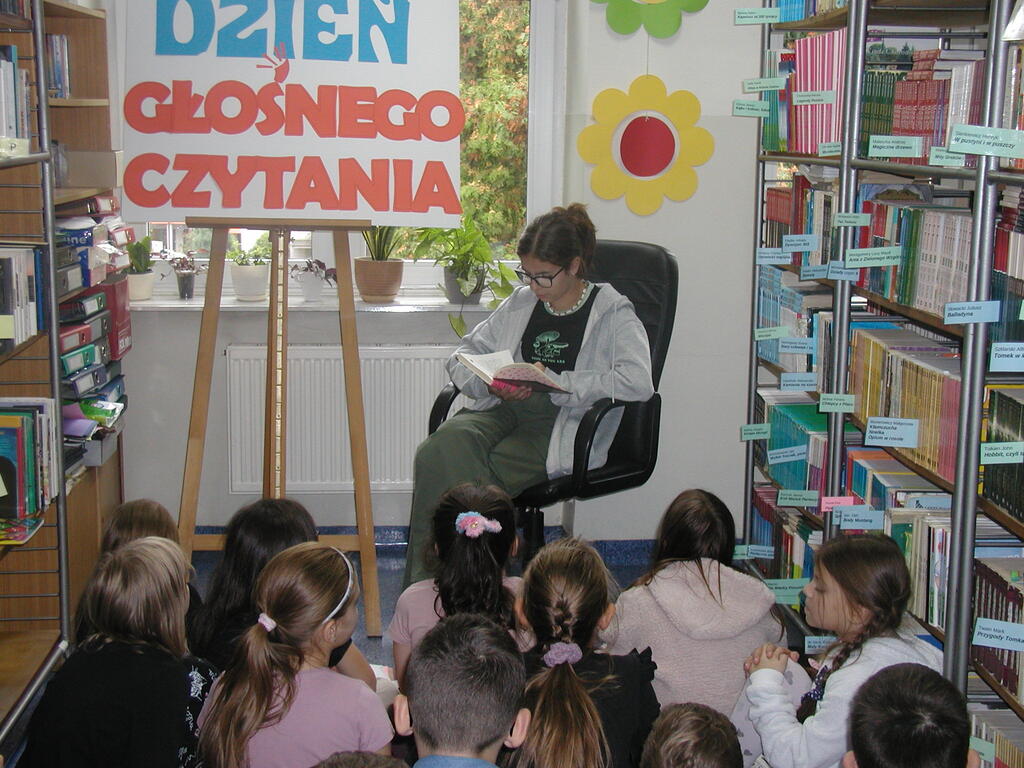 Dnia 30 września 2022 r. w naszej szkole odbył się Dzień Głośnego Czytania, którego celem było propagowanie czytelnictwa wśród dzieci i młodzieży. Tego dnia podczas przerw w role czytających wcieliły się uczennice klasy 8b: Olga Mazur i Iga Sasin, które czytały młodszym uczniom fragmenty książki „Malutka Czarownica” Otfrieda Preusslera. Po każdym rozdziale lektorki kierowały pytania do uczniów, za poprawne odpowiedzi rozdawały zakładki do książek. Podczas lekcji nauczyciele również czytali swoim uczniom, np. w klasie I a pani Ewa Kozieł przeczytała dzieciom „Brzydkie Kaczątko” H. Ch. Andersena. Do akcji Głośnego czytania włączyły się również najmłodsze dzieci z naszej szkoły, z oddziału przedszkolnego. Jedna z mam przeczytała "Dobre rady - sowy mądrej głowy". Akcja będzie kontynuowana co miesiąc pod hasłem "Rodzice czytają dzieciom".