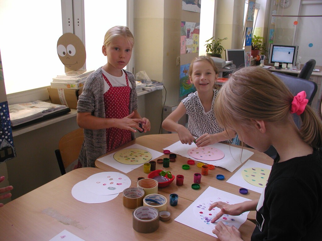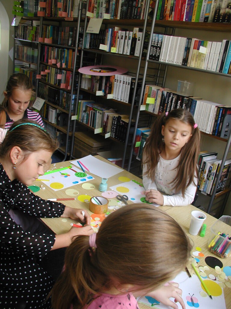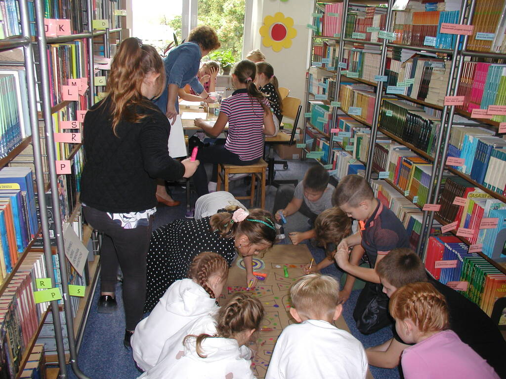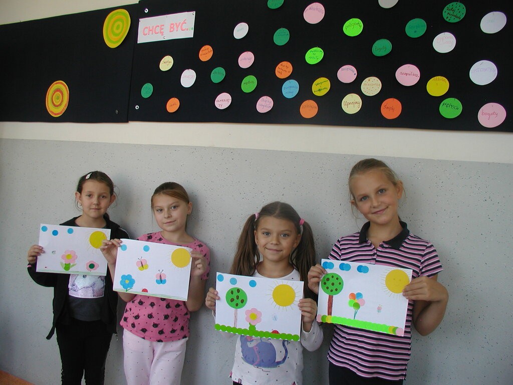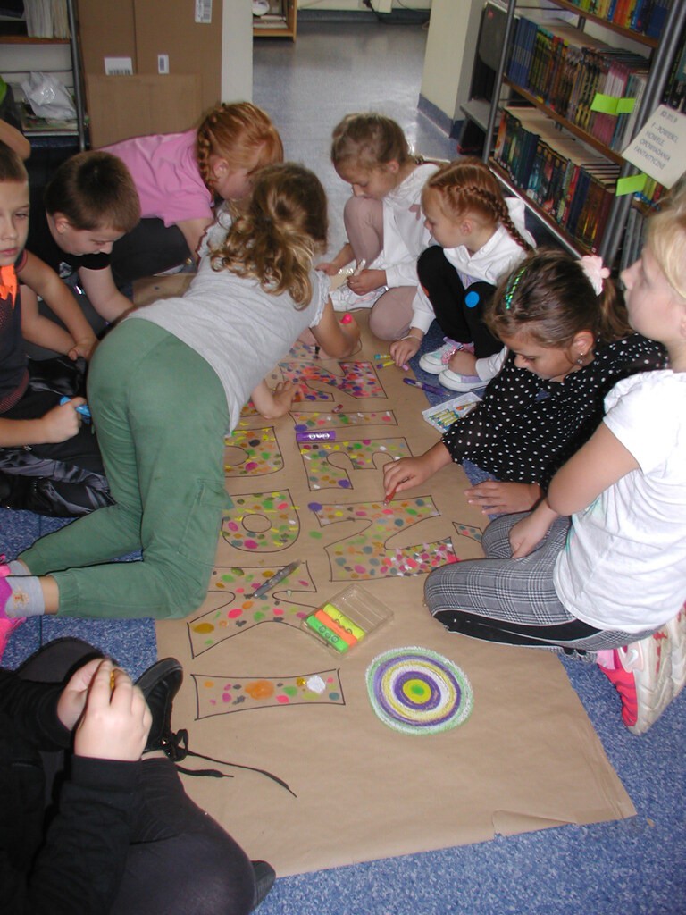 Co roku 15 września w ramach Międzynarodowego Dnia Kropki uczniowie i nauczyciele na całym świecie organizują wiele działań, które pomagają dzieciom odkryć talenty, poznać swoje mocne strony i je zaprezentować. W obchody Dnia Kropki zaangażowała się także społeczność naszej szkoły. W bibliotece szkolnej świętowaliśmy nie tylko powstanie znaku interpunkcyjnego, ale pragnęliśmy pobudzić dziecięcą wyobraźnię. Dzieci uważnie wysłuchały opowiadania „Kropka” Petera H. Reynoldsa, które zaprezentowała Iga Sasin z kl. 8 b. Dowiedziały się, jak zwyczajna kropka zmieniła świat małej dziewczynki o imieniu Vashti. Historia ta uświadomiła wszystkim, że każdy z nas ma jakieś ukryte talenty, które czekają na nasze odkrycie. Podczas spotkania dzieci tworzyły plastyczne pejzaże, rozmawiały o swoich zainteresowaniach, pasjach. Na przerwach uczennice z kl. 8 b (Iga i Olga) prosiły nauczycieli, pracowników szkoły, uczniów o dokończenie zdania „Chcę być … i kropka”, odpowiedzi zapisywano na przygotowanych kolorowych kropkach. Wszystkie wypowiedzi zostały zaprezentowane wraz z pracami plastycznymi na szkolnym korytarzu. Wielu uczniów i pracowników szkoły zadbało o to, by na elementach garderoby pojawiły się kropki. Było wesoło, ciekawie i emocjonująco!