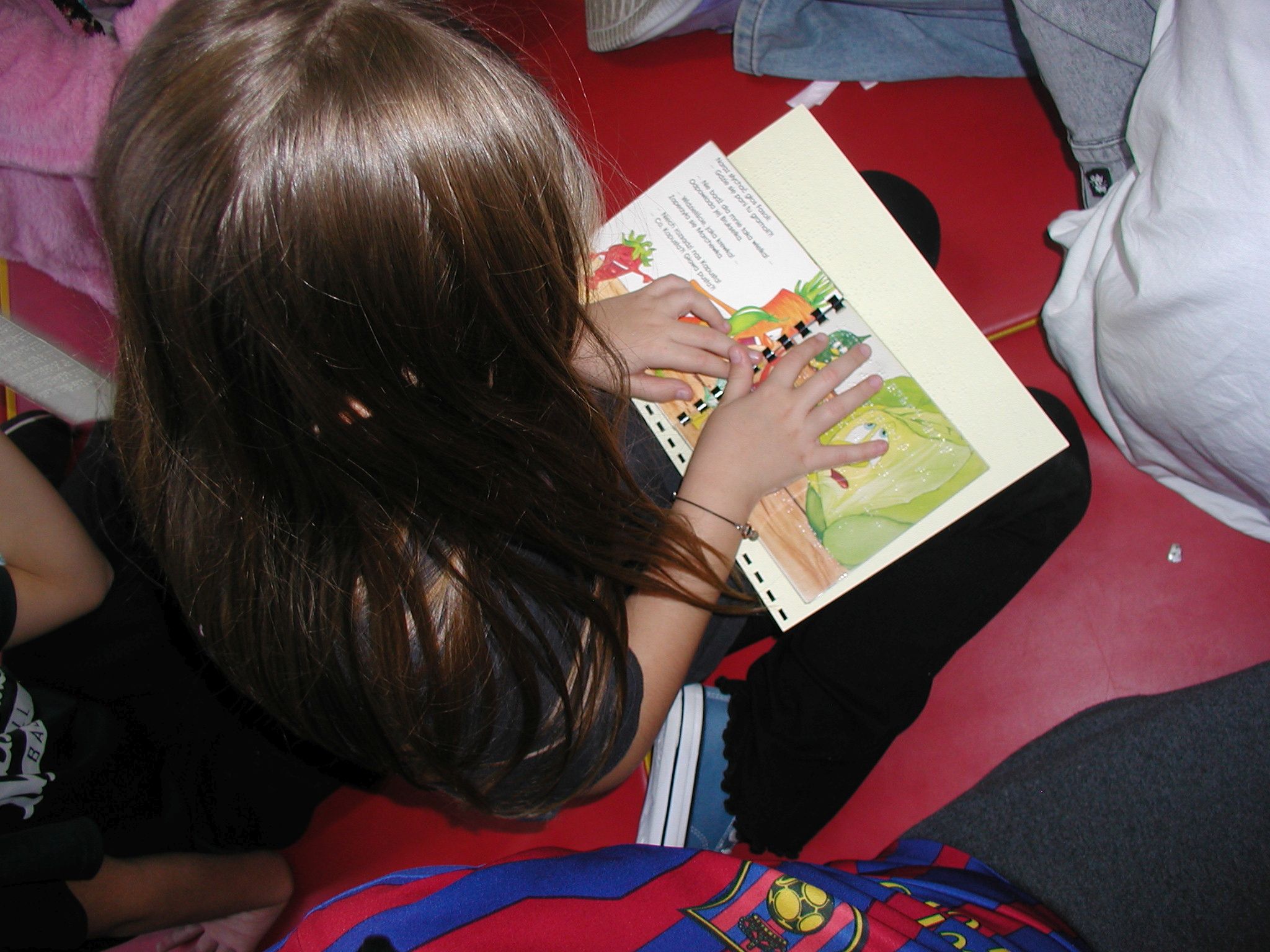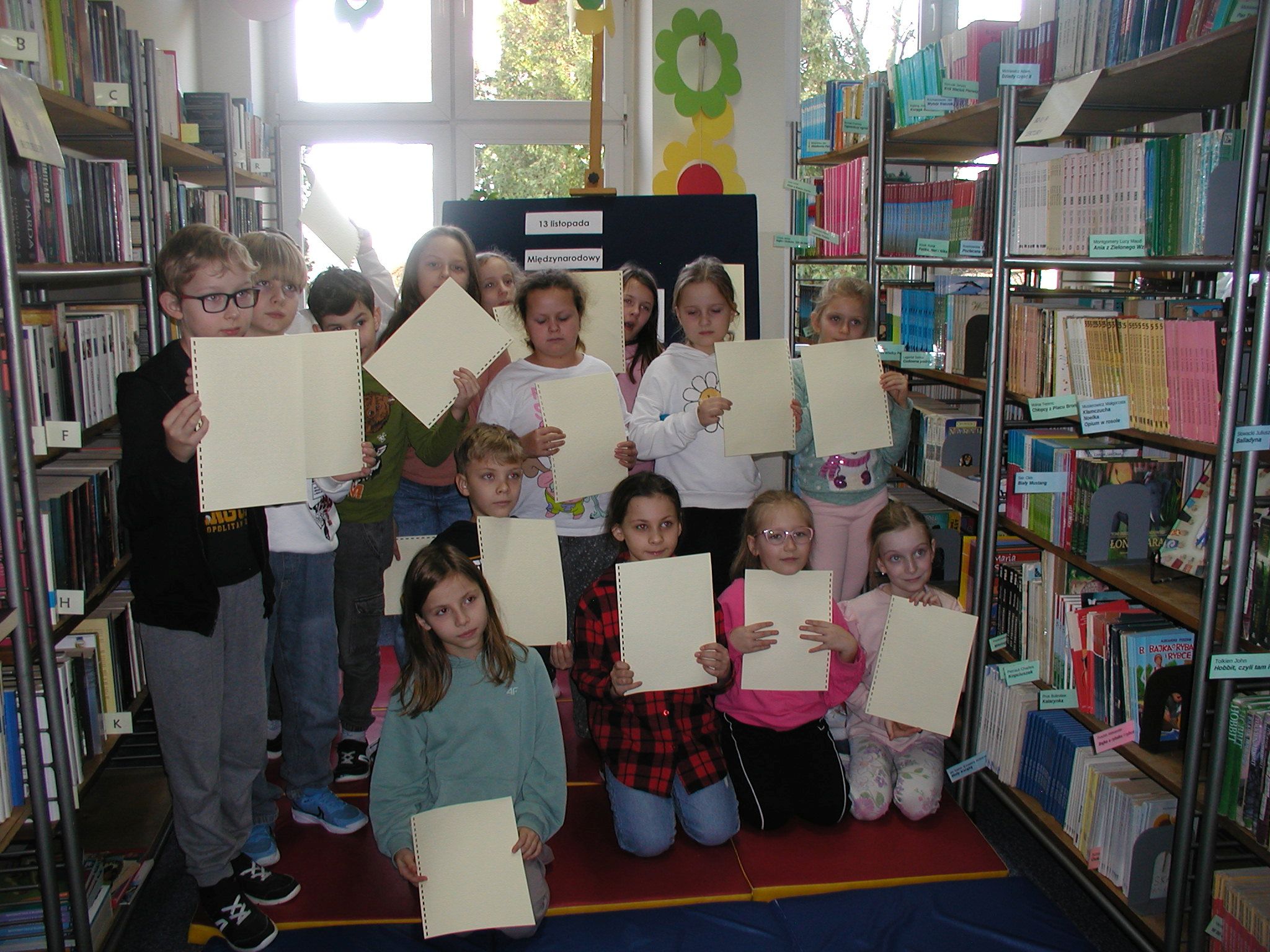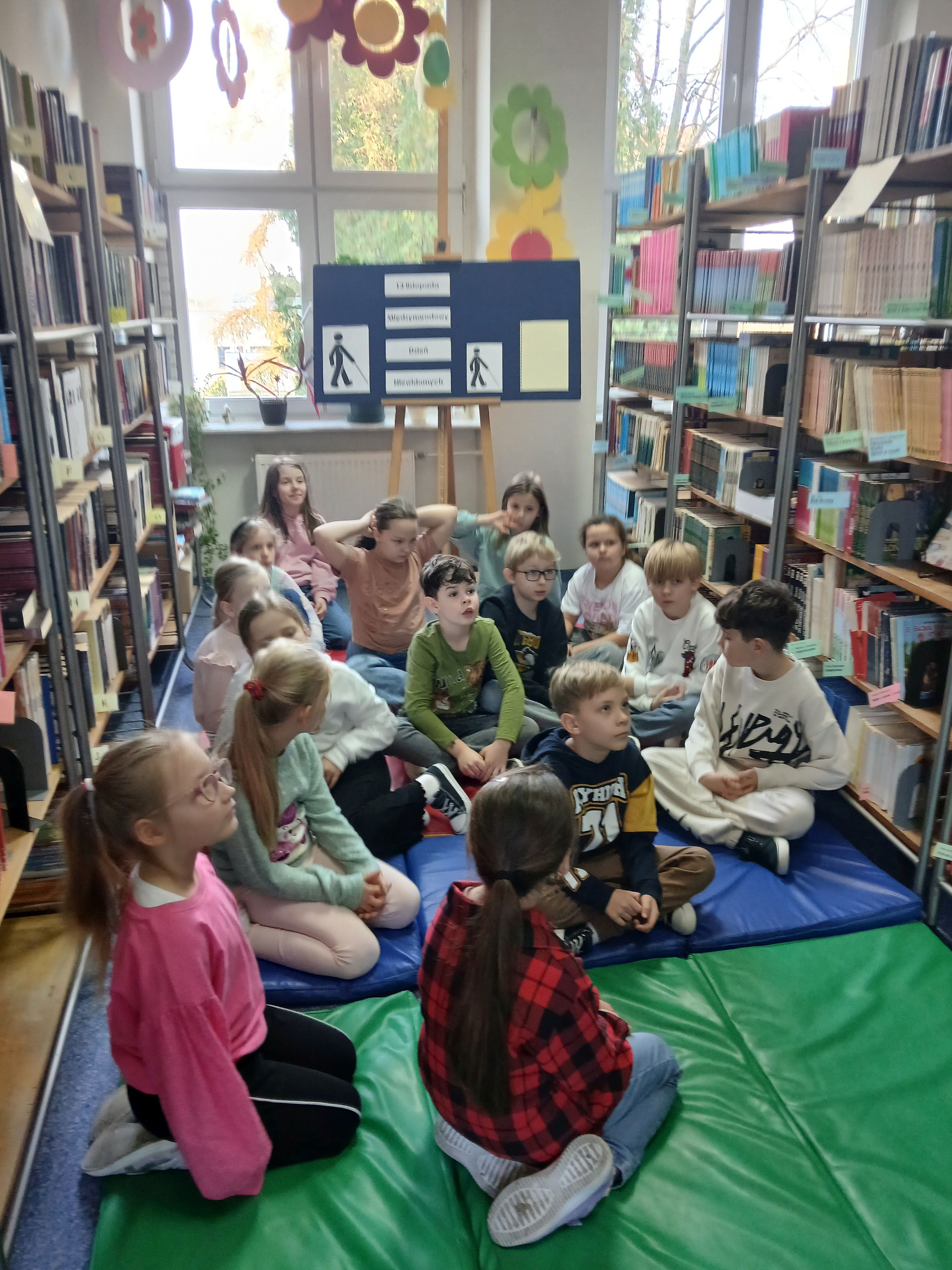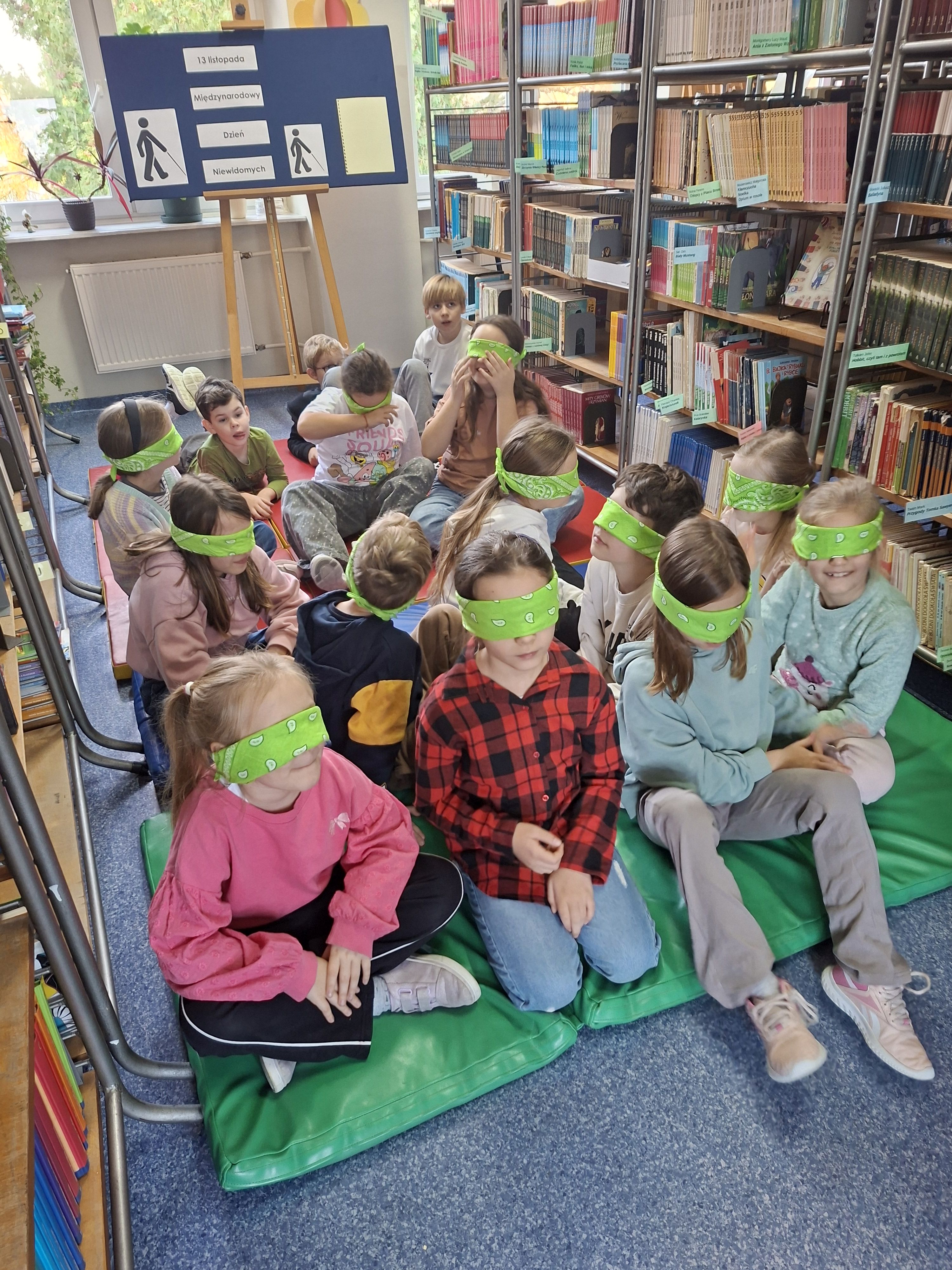 13 listopada obchodziliśmy w szkolnej bibliotece Międzynarodowy Dzień Niewidomych. Z tej okazji dzieci ze świetlicy i z kl. 3a, 3b wzięły udział w spotkaniu poświęconym tematyce osób niewidomych. Wysłuchały fragment audiobooka „Opowieść o Błękitnym Psie, czyli o rzeczach trudnych dla dzieci” Beaty Majchrzak. Uczestnicy mieli możliwość wczuć się w sytuacje niewidomych, z opaską na oczach odgadywali przedmioty zmysłem dotyku, smaku i węchu. Obejrzeli książki napisane alfabetem Braille’a. Wysłuchały listu niewidomej dziewczynki z kl. 5.