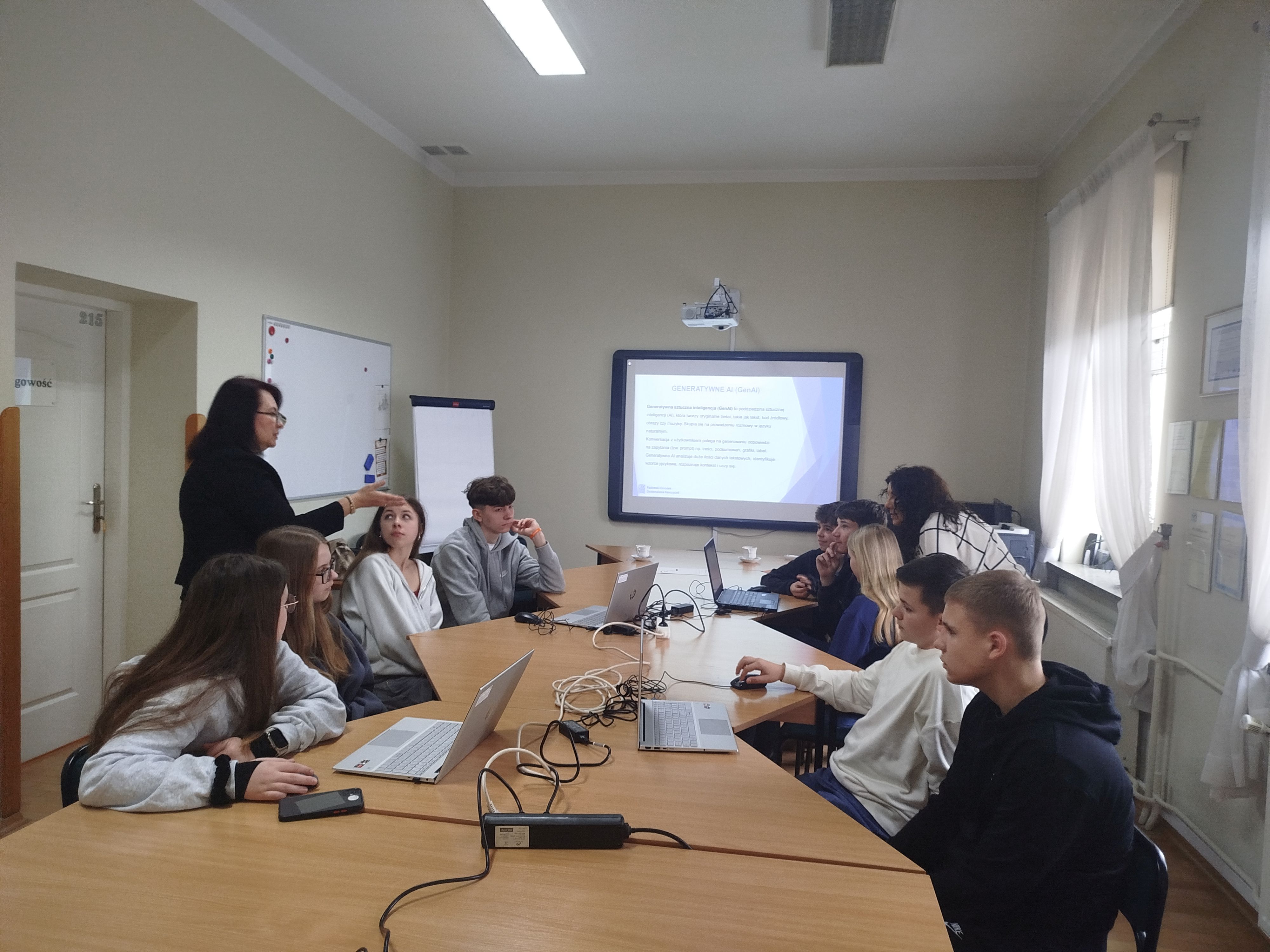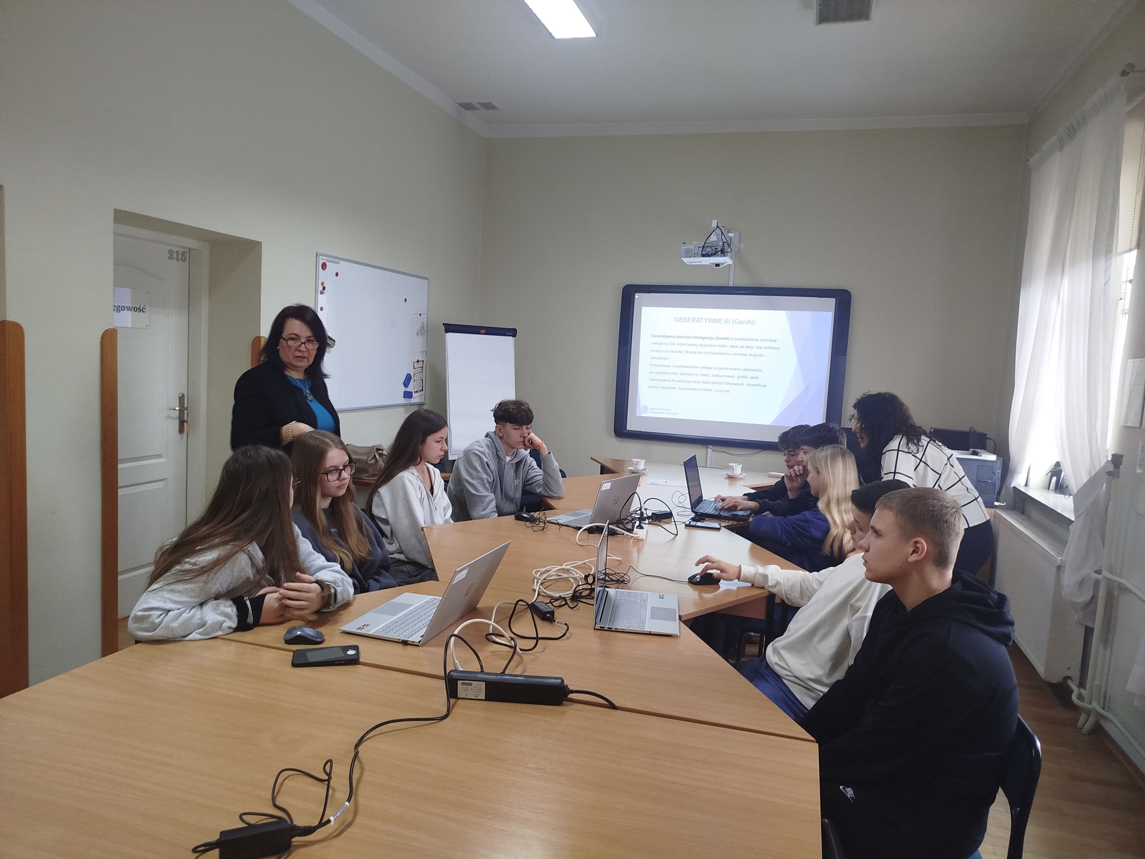 Warsztaty stanowiły część przygotowań do międzyszkolnej debaty „Jak będzie wyglądało życie w Unii Europejskiej za 20 lat?”. Podczas zajęć informatycznych uczniowie analizowali zarówno zalety, jak i potencjalne zagrożenia związane z AI. Poznali, w jaki sposób sztuczna inteligencja wpływa na różne aspekty życia codziennego oraz jakie wyzwania niesie jej dynamiczny rozwój. Szczególną uwagę poświęcono regulacjom prawnym dotyczącym AI w Unii Europejskiej.