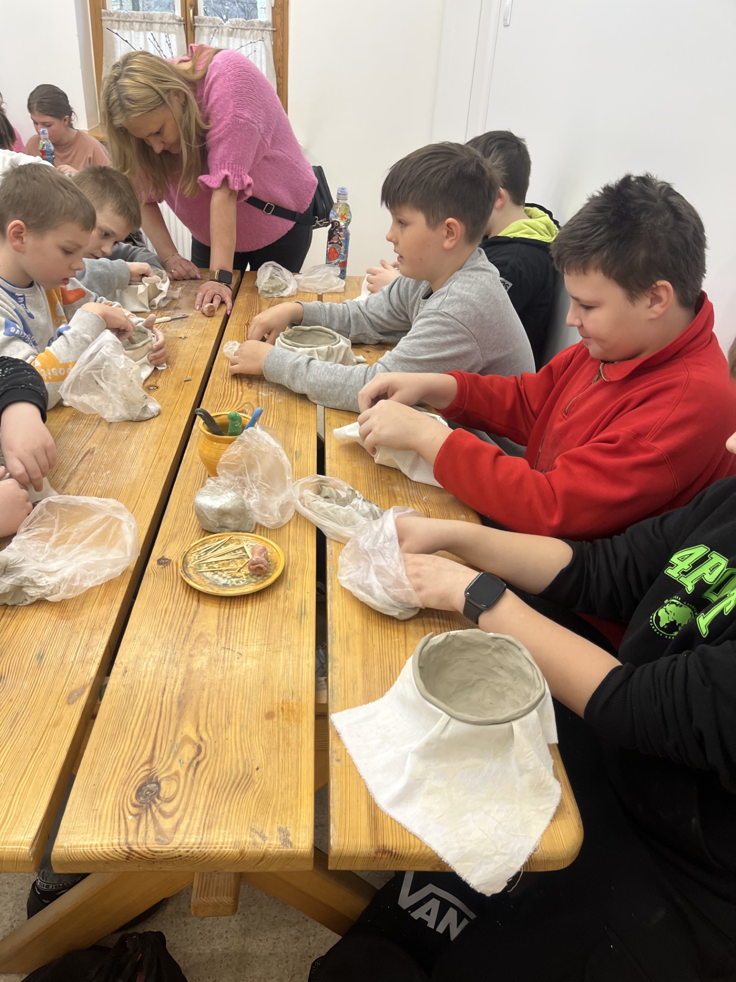 24 marca klasa 5a miała niezwykłą okazję uczestniczyć w warsztatach ceramicznych w Muzeum Wsi Radomskiej. Uczniowie z wielkim zaangażowaniem i pasją tworzyli swoje własne miseczki z gliny, poznając tajniki ceramiki i tradycyjnego rzemiosła. To była świetna okazja, by w praktyczny sposób połączyć naukę z zabawą!