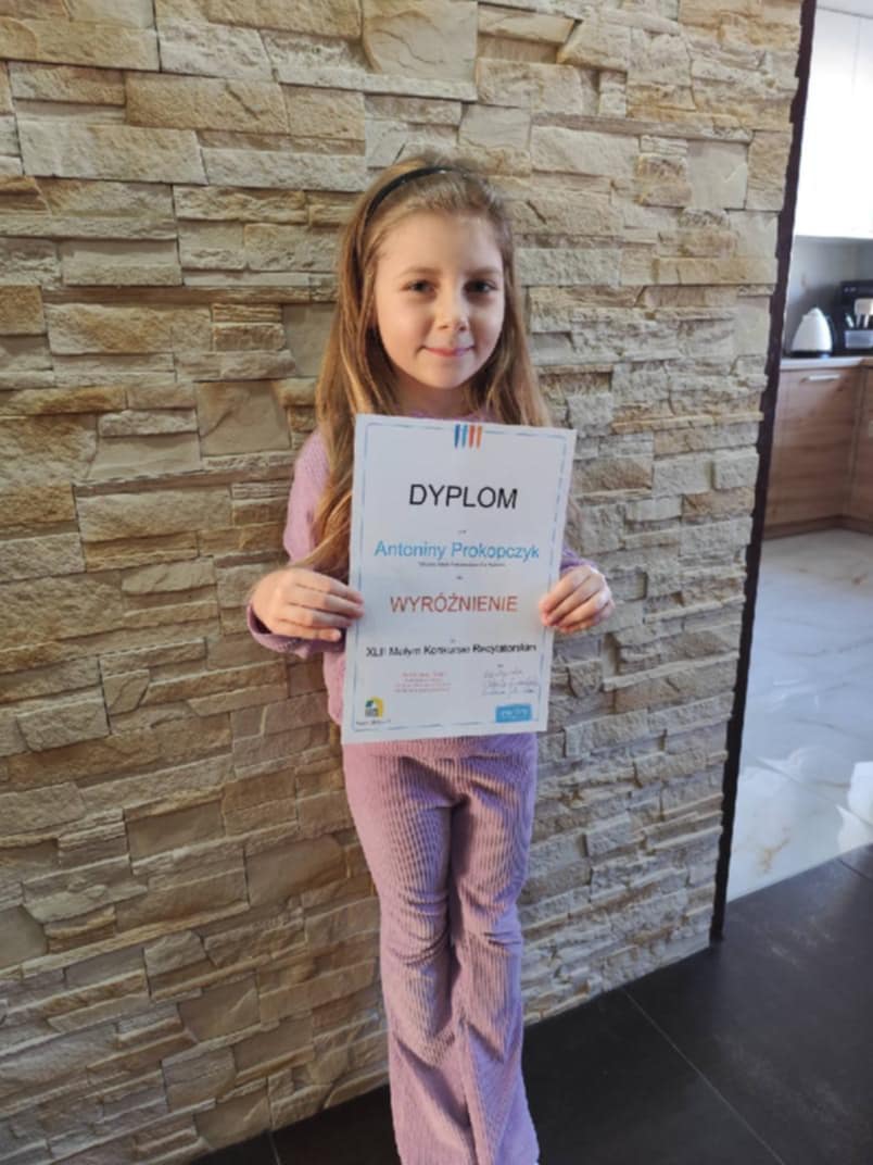 reprezentowali naszą szkolę w dalszym etapie konkursu recytatorskiego w Domu Kultury Borki. Uczniowie pięknie zaprezentowali swoje umiejętności recytatorskie. Antonina Prokopczyk otrzymała wyróżnienie i będzie prezentować swoje umiejętności na Gali Laureatów XLII Małego Konkursu Recytatorskiego.