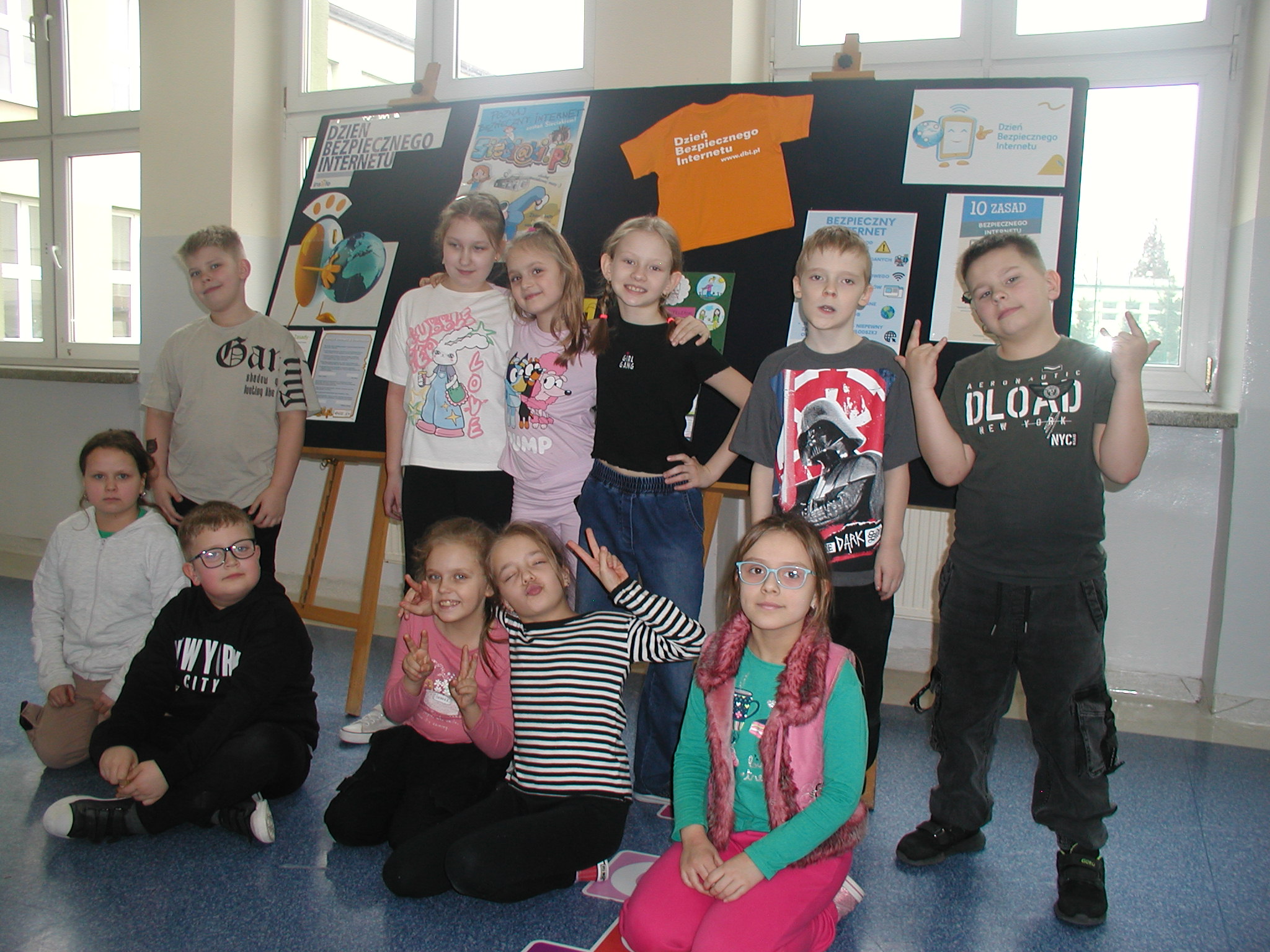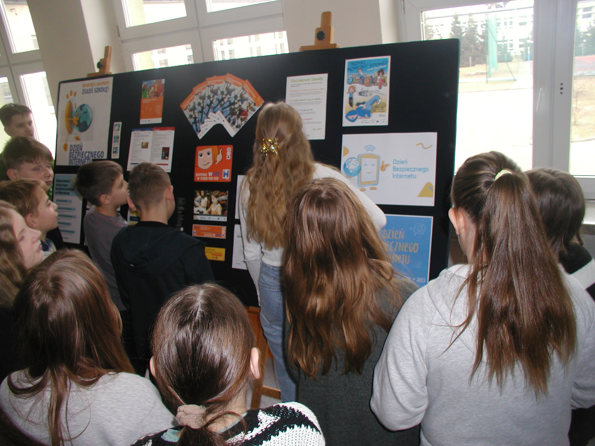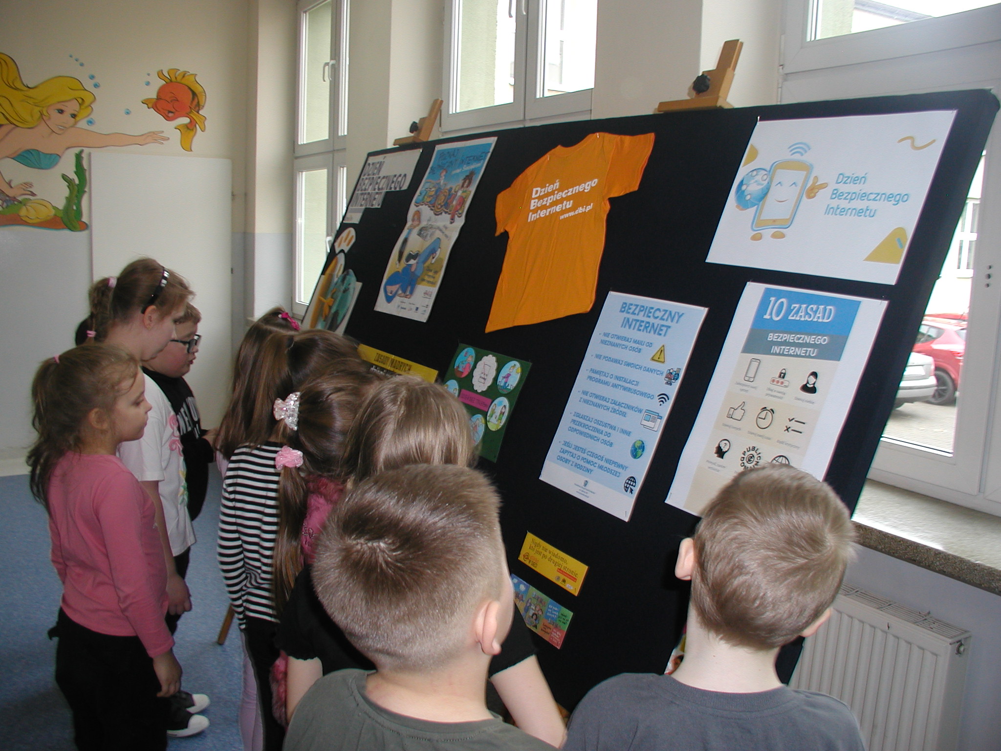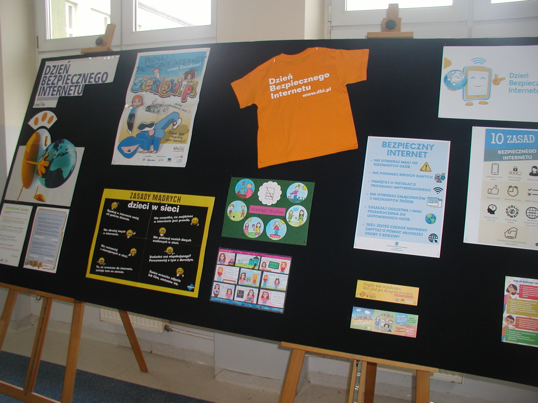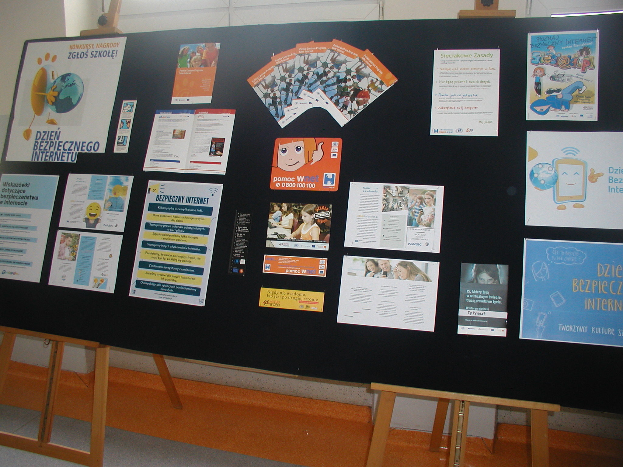 Na szkolnych korytarzach są tablice z informacjami dotyczącymi bezpieczeństwa w sieci, o zagrożeniach i pomocnych telefonach. Dla klas 1-3 na parterze, dla klas 4-8 I piętrze.