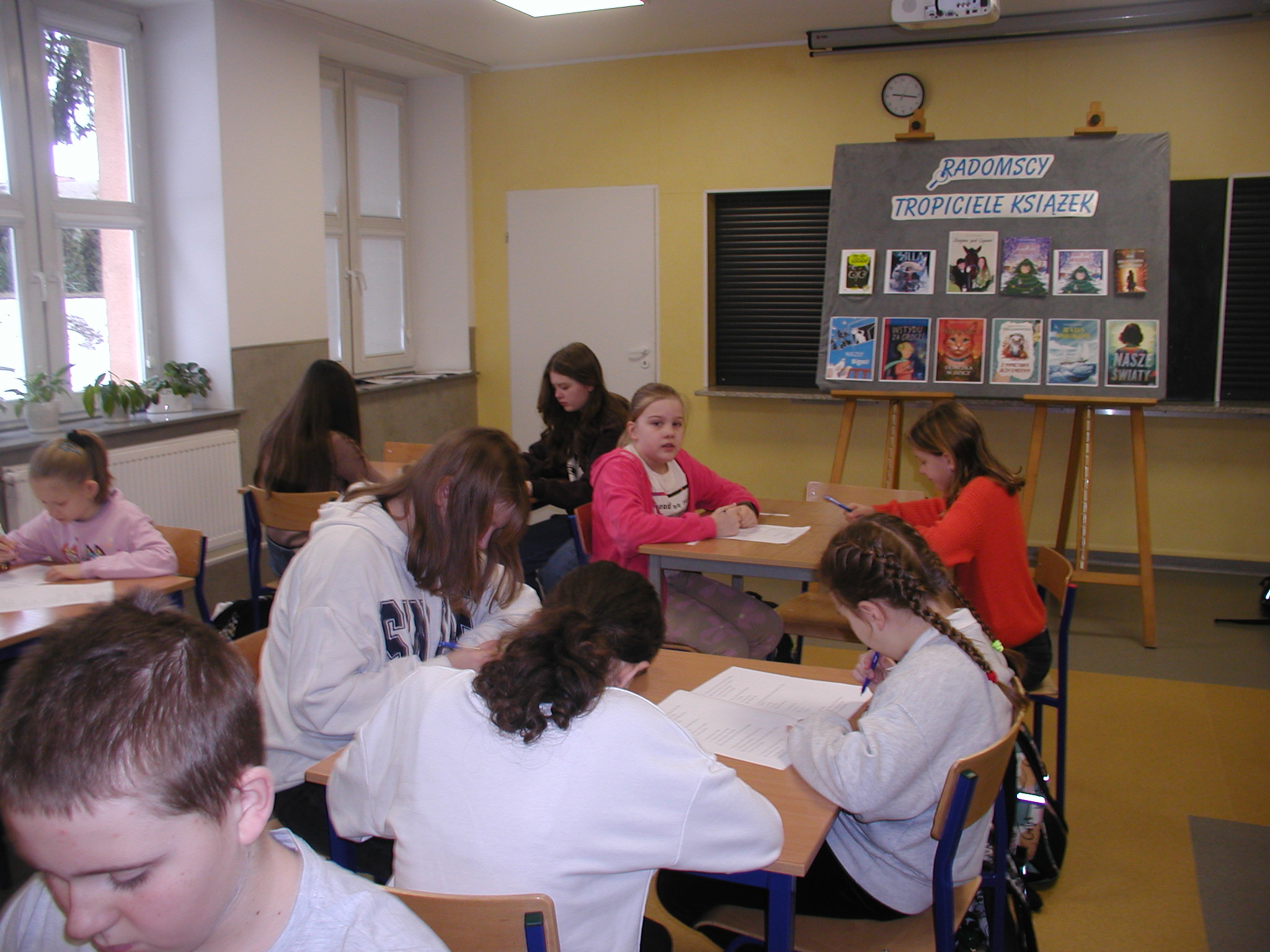 20 lutego odbyła się 3 edycja Międzyszkolnego Konkursu Czytelniczego "Radomscy tropiciele Książek". W szkolnym etapie wzięło udział 41 uczniów klas 2-8. Uczestników konkursu niezmiennie wspiera Dyrektor szkoły. Dziękujemy. Największą ilość punktów zdobyli: