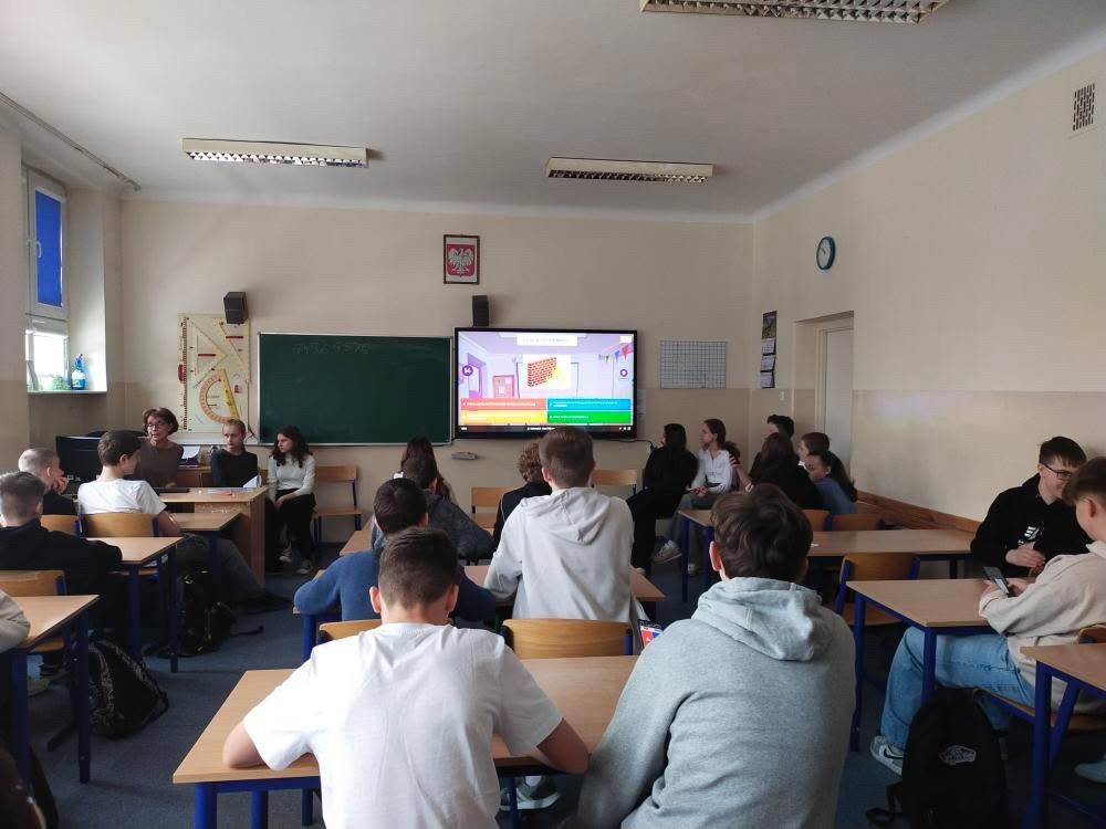 Podsumowaniem lekcji był interaktywny quiz Kahoot, w którym uczniowie mogli sprawdzić swoją wiedzę na temat cyberbezpieczeństwa i finansów cyfrowych. Dzięki tej formie najważniejsze informacje zostały utrwalone w atrakcyjny i angażujący sposób.