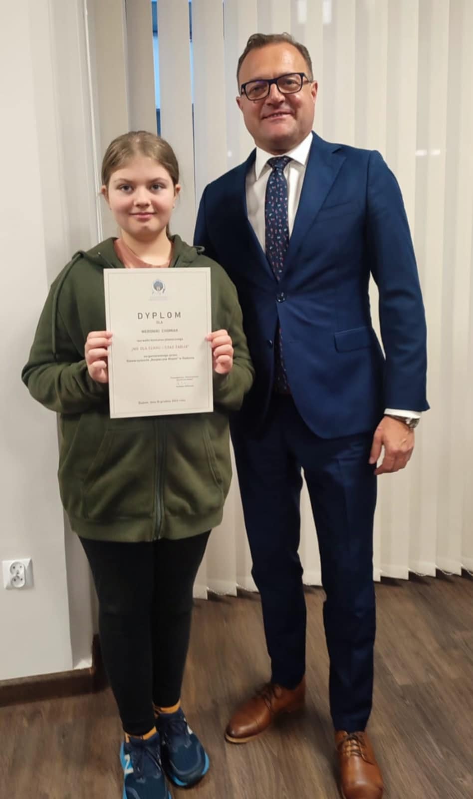 Laureatką konkursu została Weronika Chomiak, uczennica klasy 5a, która z rąk Pana Prezydenta Radomia Radosława Witkowskiego otrzymała dyplom i nagrodę.