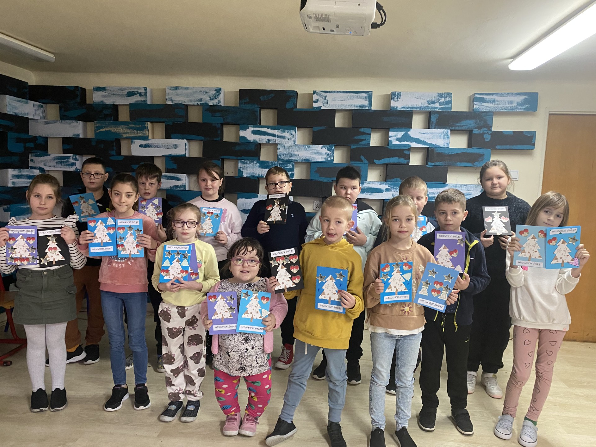 Nieodzownym symbolem świąt Bożego Narodzenia są kartki świąteczne z życzeniami, szczególnie te wykonane samodzielnie, sprawiają radość wykonawcom a u obdarowanych wywołują uśmiech i wzruszenie. W tym roku, podobnie jak w latach ubiegłych, uczniowie z Zeróweczki i kl. II Ai przygotowali własnoręcznie kartki świąteczne dla mieszkańców Domu Weterana Walki i Pracy w Radomiu. Wykazali się kreatywnością, wrażliwością, chęcią niesienia pomocy i sprawiania radości innym. Z ogromnym zaangażowaniem rysowały, malowały i naklejały gwiazdki, serca i choinki tworząc piękne i bardzo kolorowe karty świąteczne.