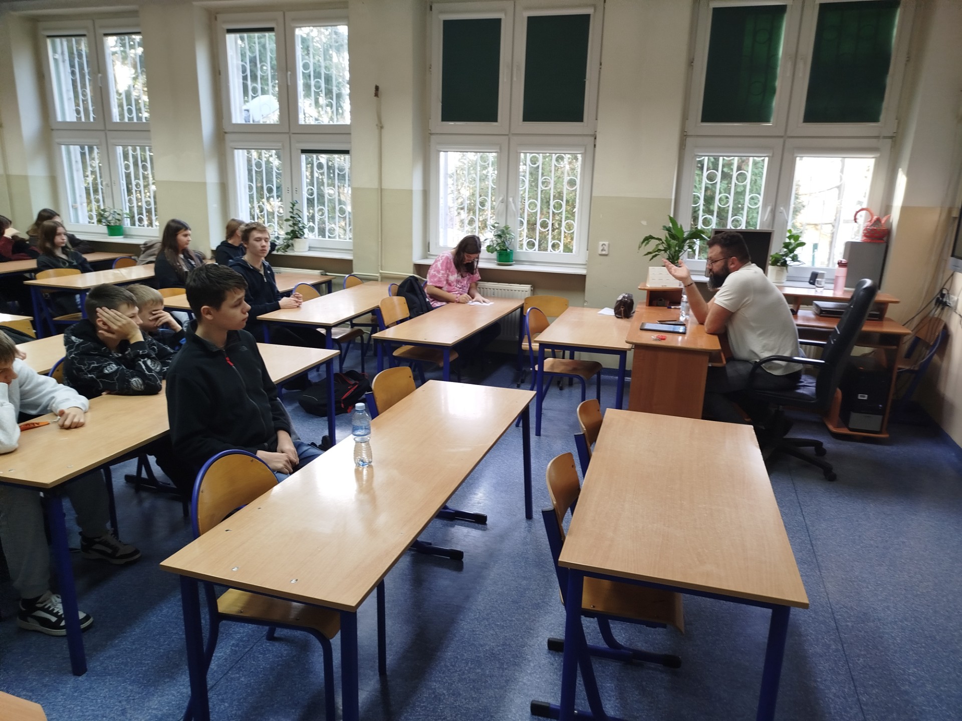 25 listopada uczniowie klas ósmych mieli wyjątkową okazję uczestniczyć w spotkaniu z panem Pawłem Wasilkowskim – adwokatem, członkiem Radomskiej Izby Adwokackiej oraz właścicielem kancelarii adwokackiej w Radomiu. Tematem zajęć były odpowiedzialność nieletnich w świetle prawa oraz ich prawa i obowiązki.