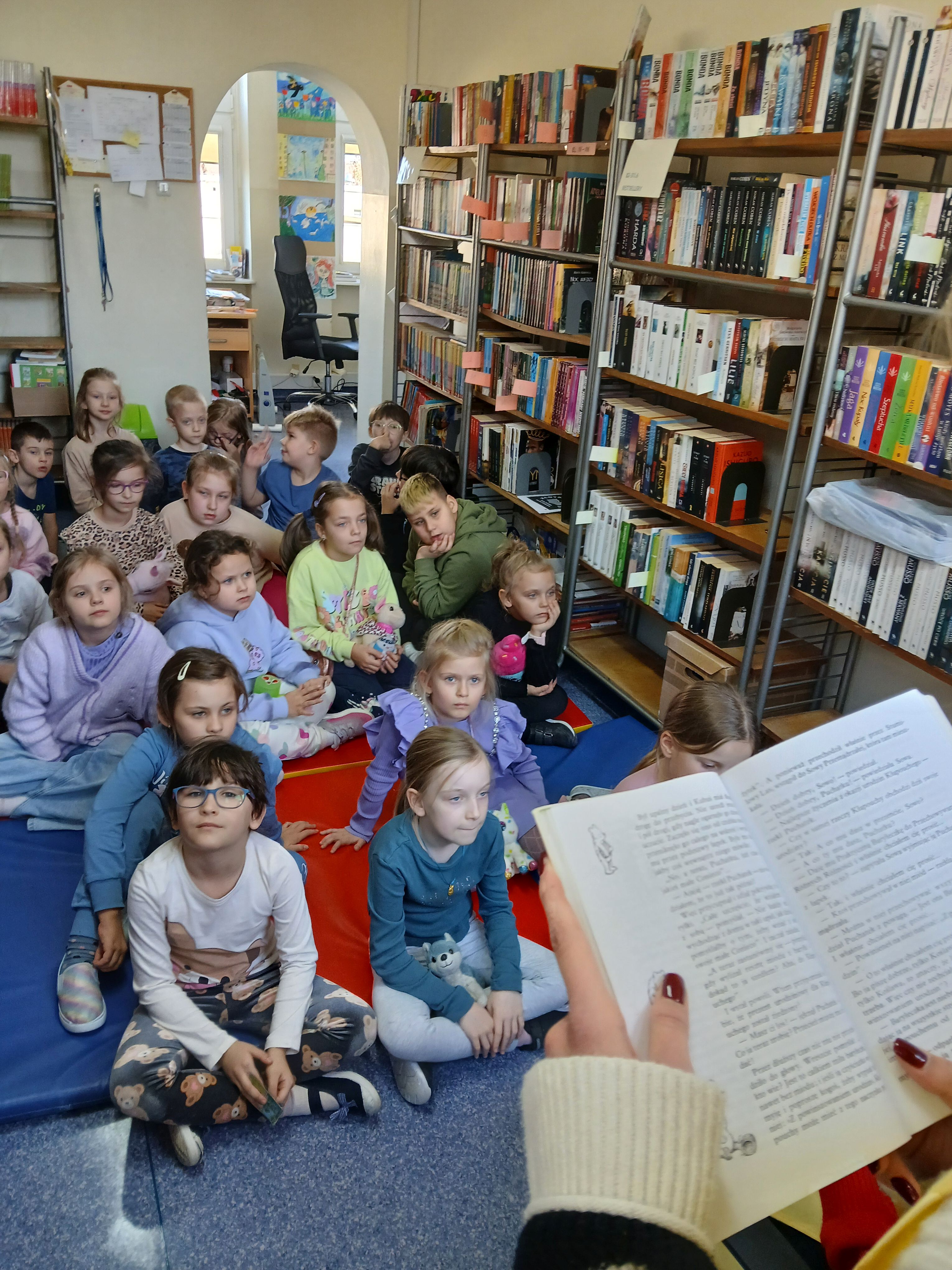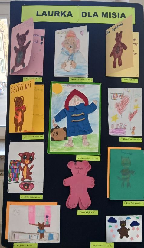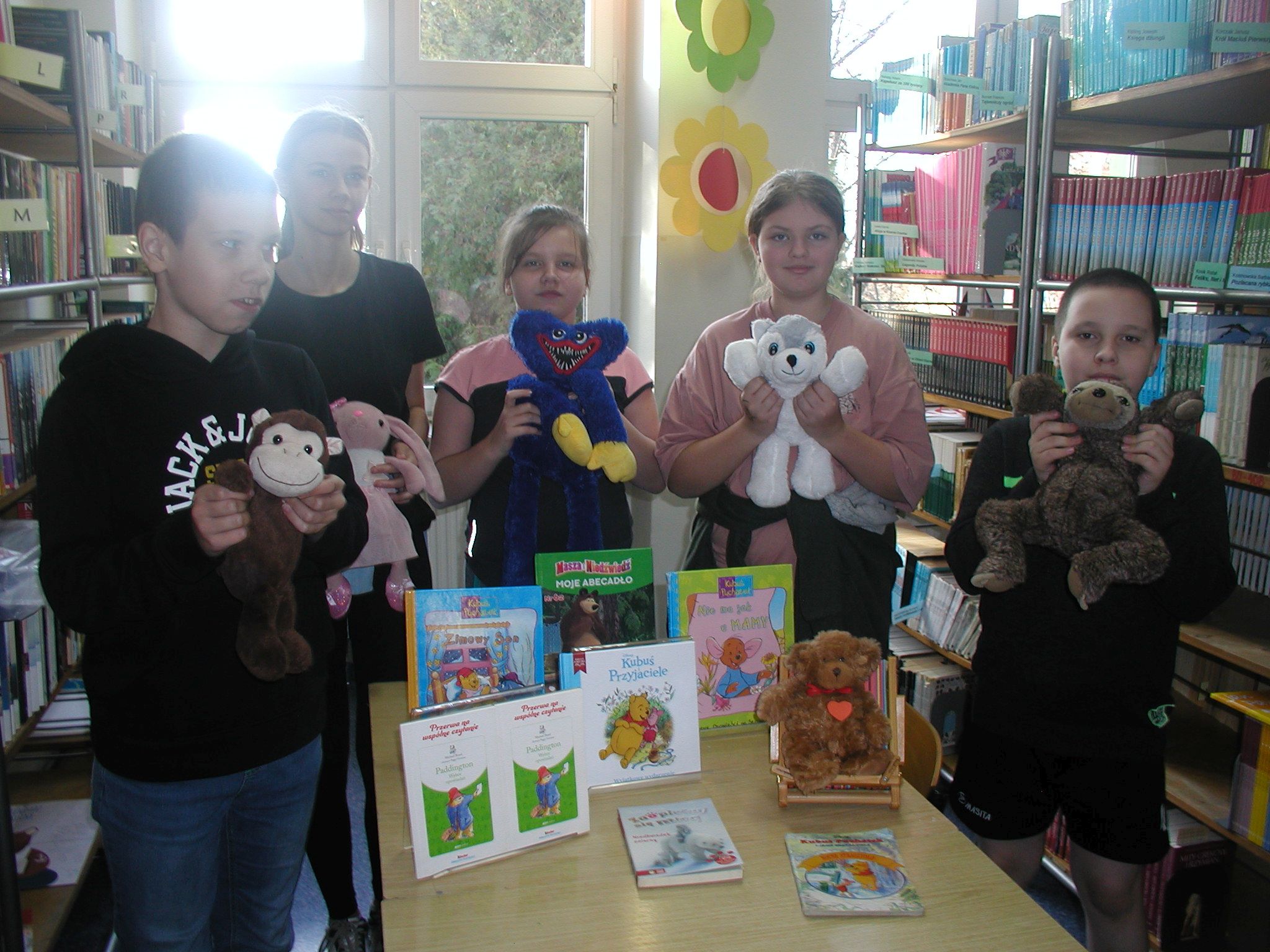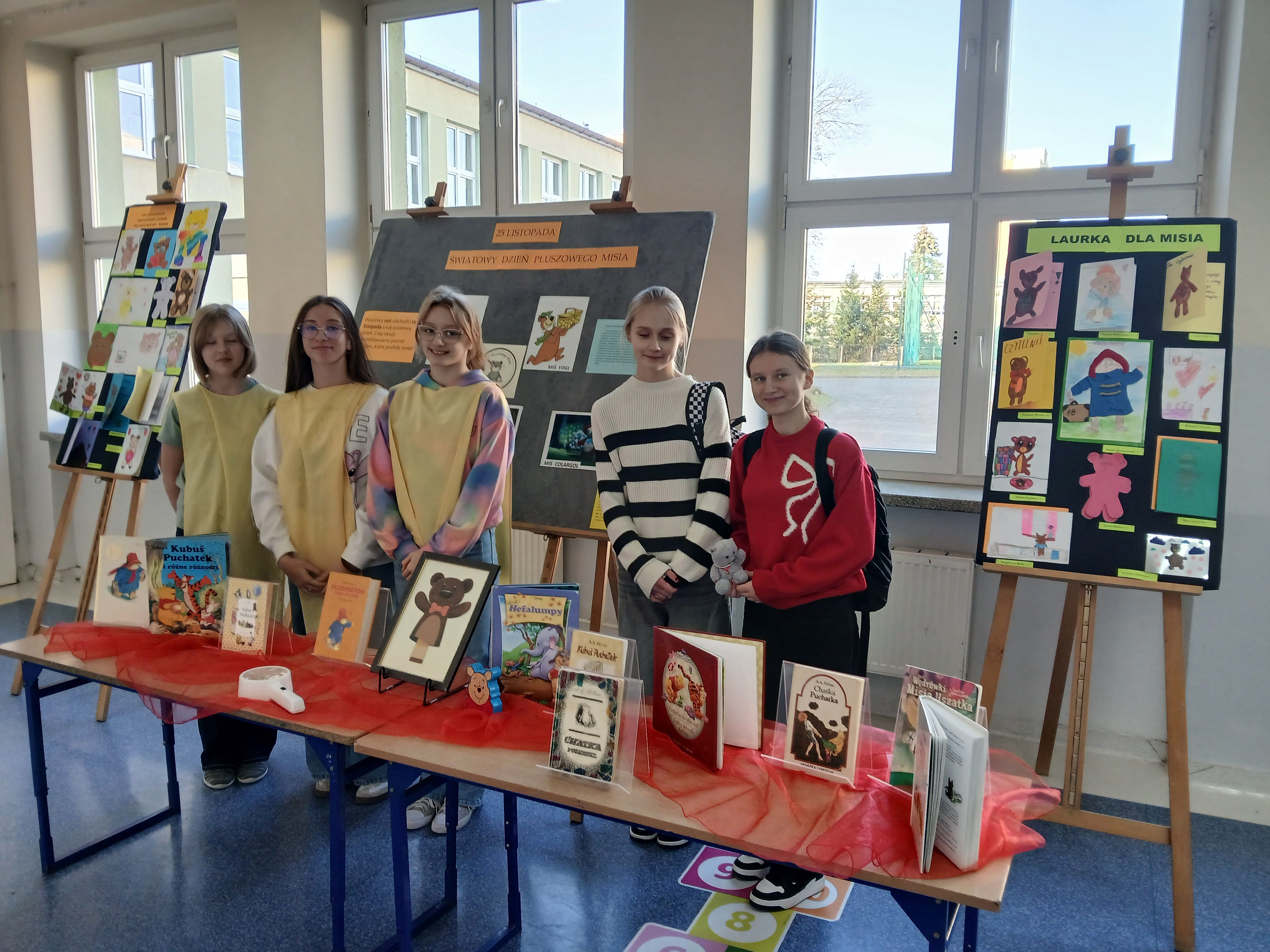Światowy Dzień Pluszowego Misia to jedno z bardziej popularnych świąt obchodzonych w bibliotekach szkolnych. W poniedziałek 25 listopada świętowaliśmy je również w naszej szkole. Chętni uczniowie przyszli ze swoim "milutkim przyjacielem". Odwiedzający tego dnia bibliotekę otrzymali słodkie „co nieco” oraz pieczątkę „MIŚ” odbitą na ręku. Miłą niespodziankę sprawiły dzieci z klas 0 – 3, przynosząc do biblioteki laurkę dla Misia. Wpłynęło 26 prac, które można oglądać na wystawie, na parterze. Ponadto uczniowie poznali historię tego święta, obejrzeli wystawę książek z misiem w roli głównej oraz prezentację przedstawiającą ilustracje i imiona różnych misiów. Kolejnym punktem obchodów święta było czytanie fragmentów Kubusia Puchatka A. A. Milne. Łucja i Maja uczennice z klasy 7c w towarzystwie Misia Czytelnisia czytały młodszym koleżankom i kolegom. Przygotowały pytania, na które dzieci chętnie odpowiadały, otrzymując słodkie co nieco. Można było sobie zrobić zdjęcie z pluszakami. Kilkoro dzieci przyniosło do biblioteki książki o misiach, które już zostały przeczytane.