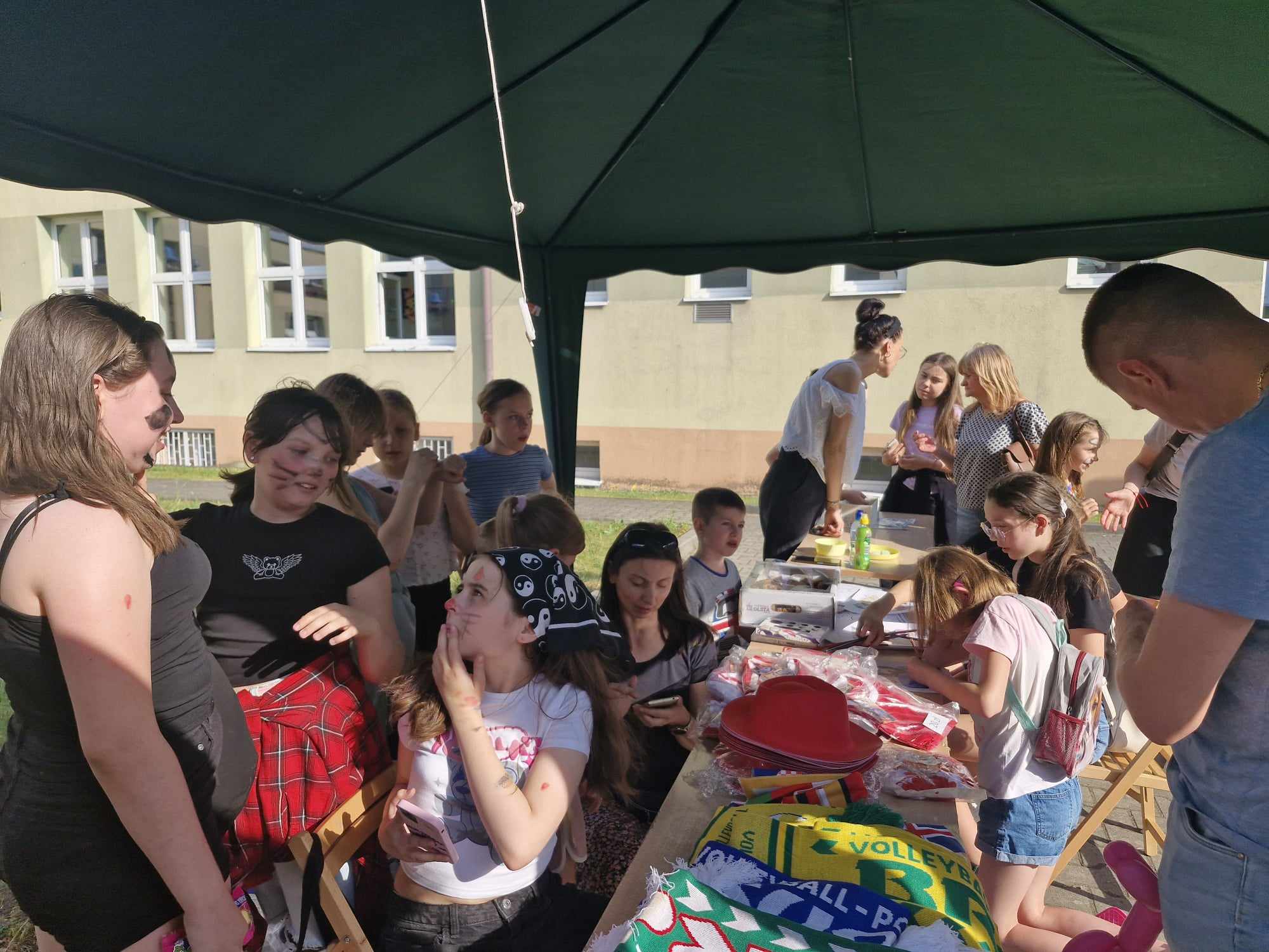 Szkolna kawiarenka częstowała domowymi ciastami oraz lemoniadą. Były wata cukrowa, lody, popcorn. Najmłodsi zjeżdżali na dmuchanym zamku.