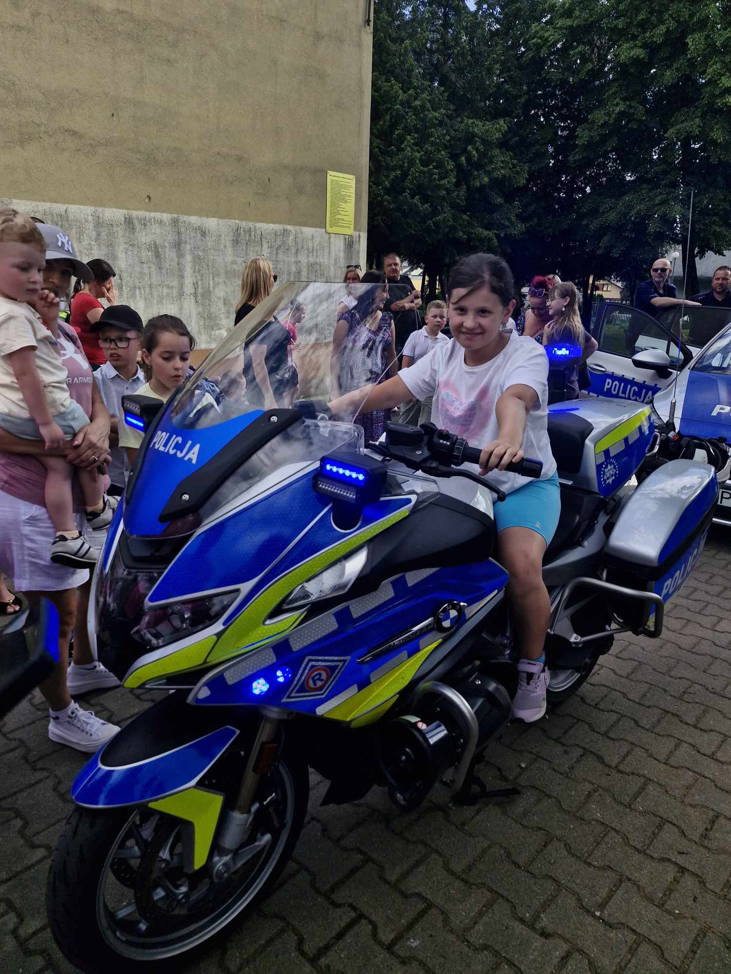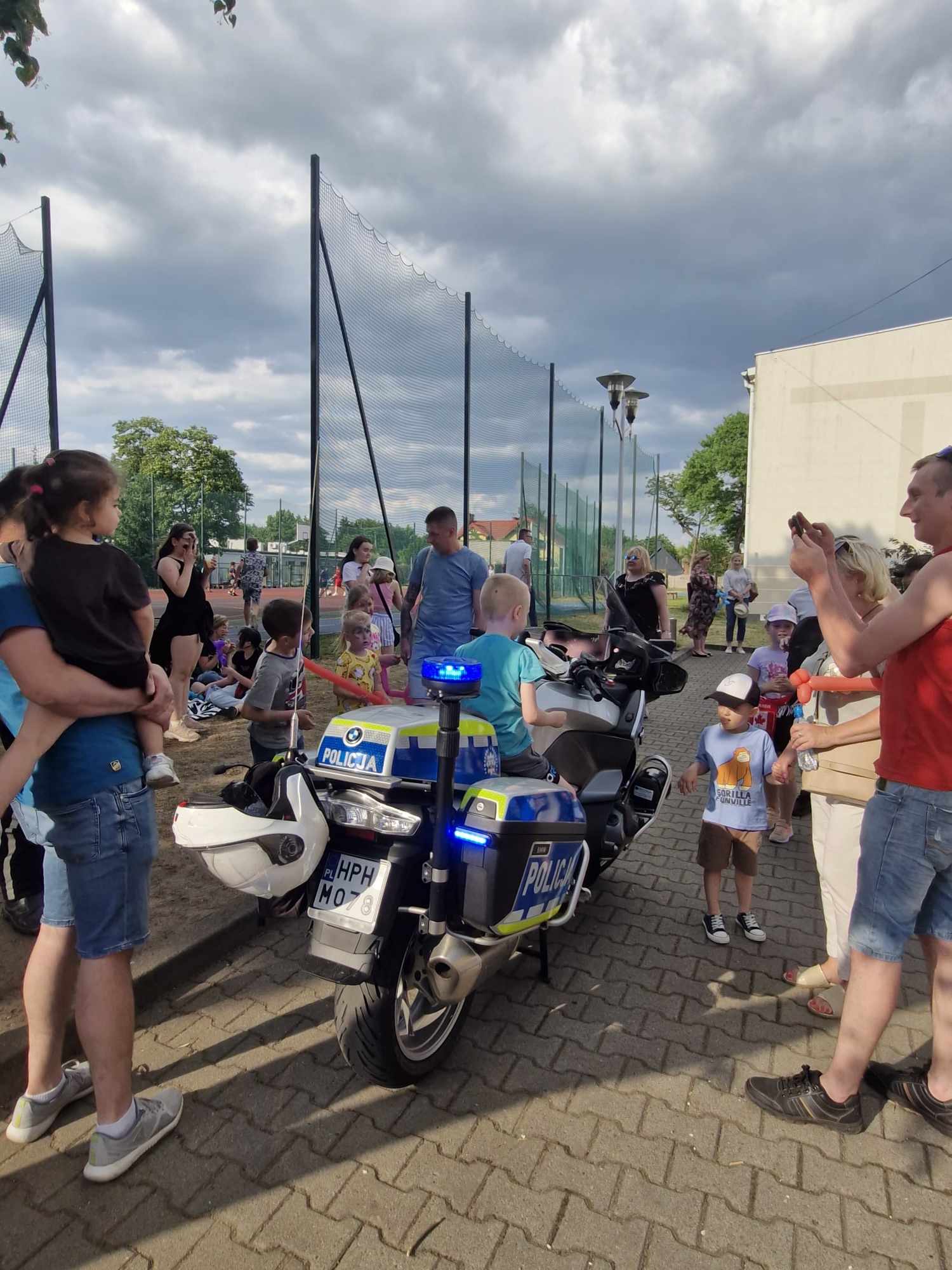 Przyjazd motocykla policyjnego i samochodu był niespodzianką, szczególnie wjazd na teren szkoły na sygnałach dźwiękowych. Każdy mógł obejrzeć z bliska sprzęt policyjny, wsiąść, włączyć sygnały świetlne i dźwiękowe, zadawać pytania na tematy pracy policyjnej i wyposażenia.