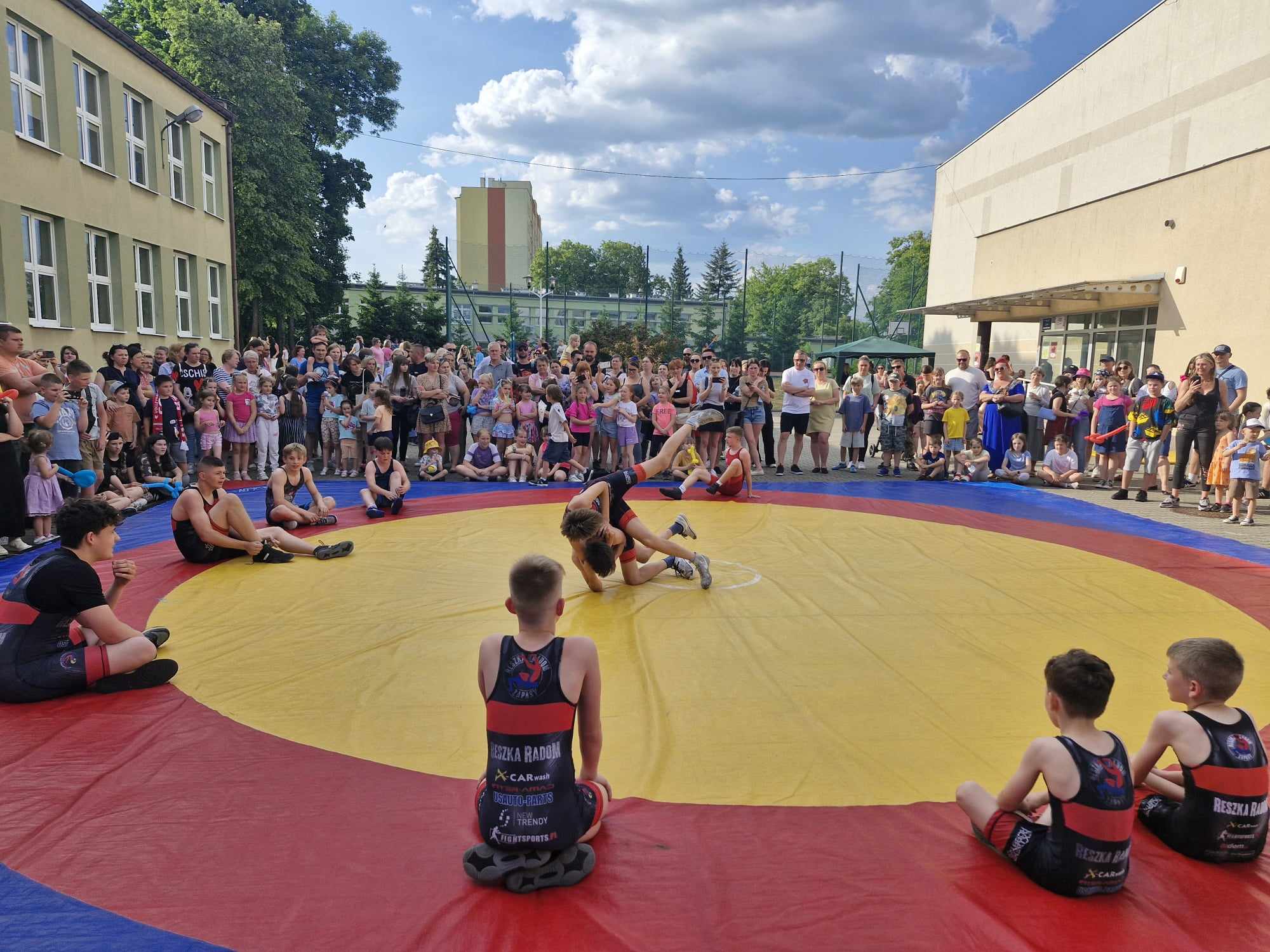 Bardzo podobały się pokazy zapaśnicze UKS Reszka. Wiele osób skorzystało też z kącika ciekawej książki oraz akcji bookcrossingu. Na scenie festynowej odbyły się pokazy teatralno – taneczne dzieci z klas 0-4 i wychowanków Domu Kultury „Borki” oraz solowy występ gitarowy jednego z uczniów klasy 7B.