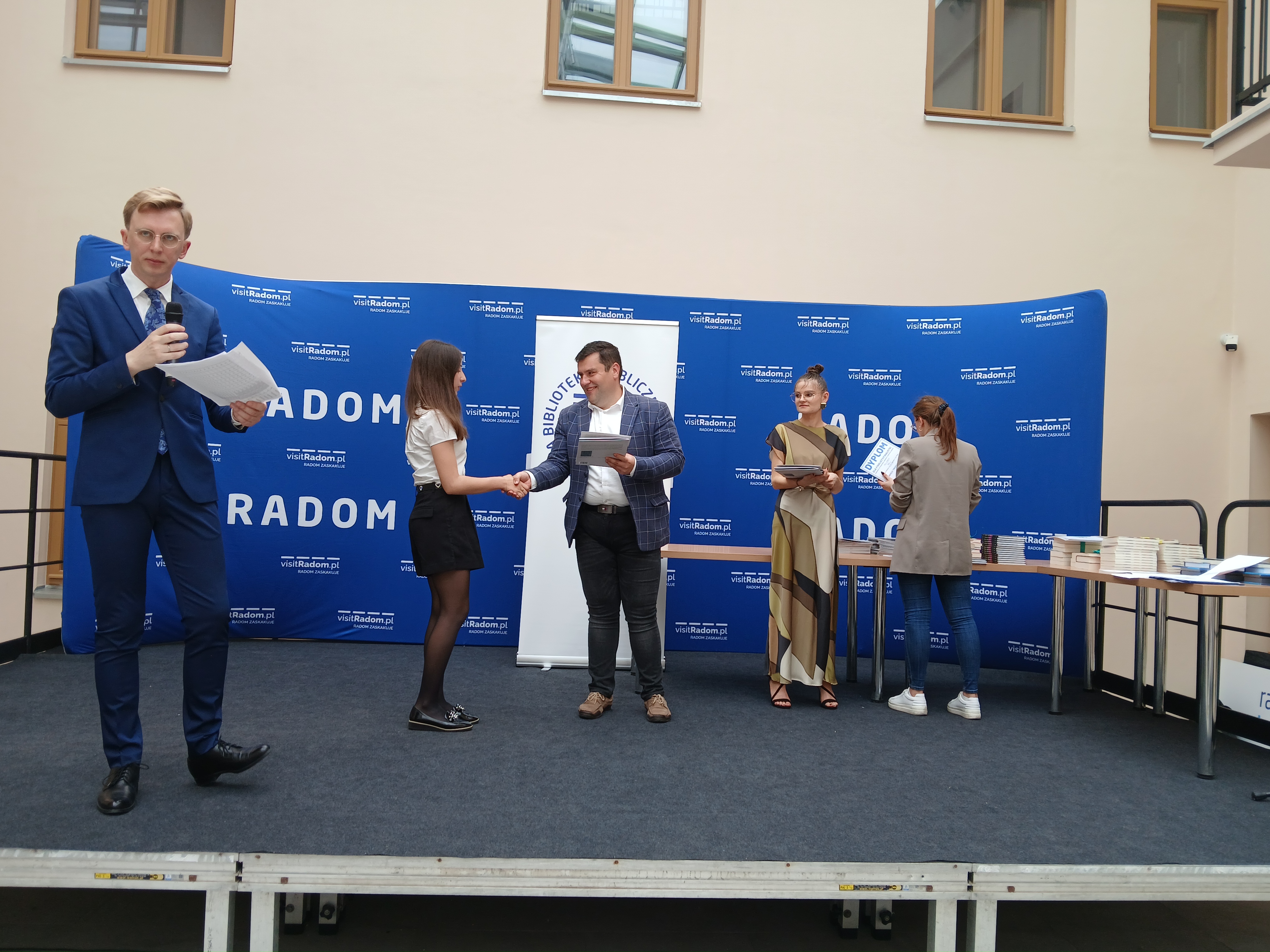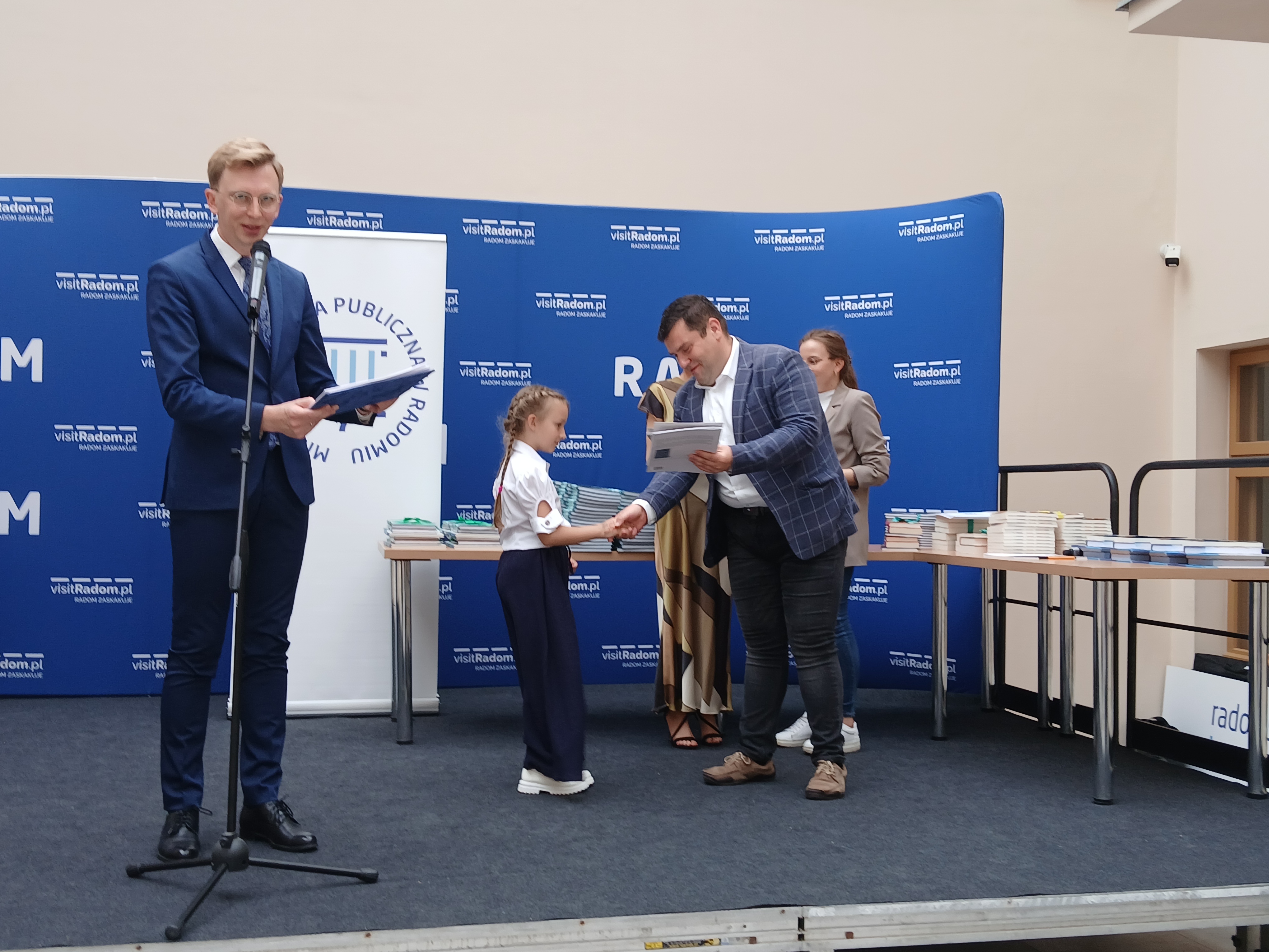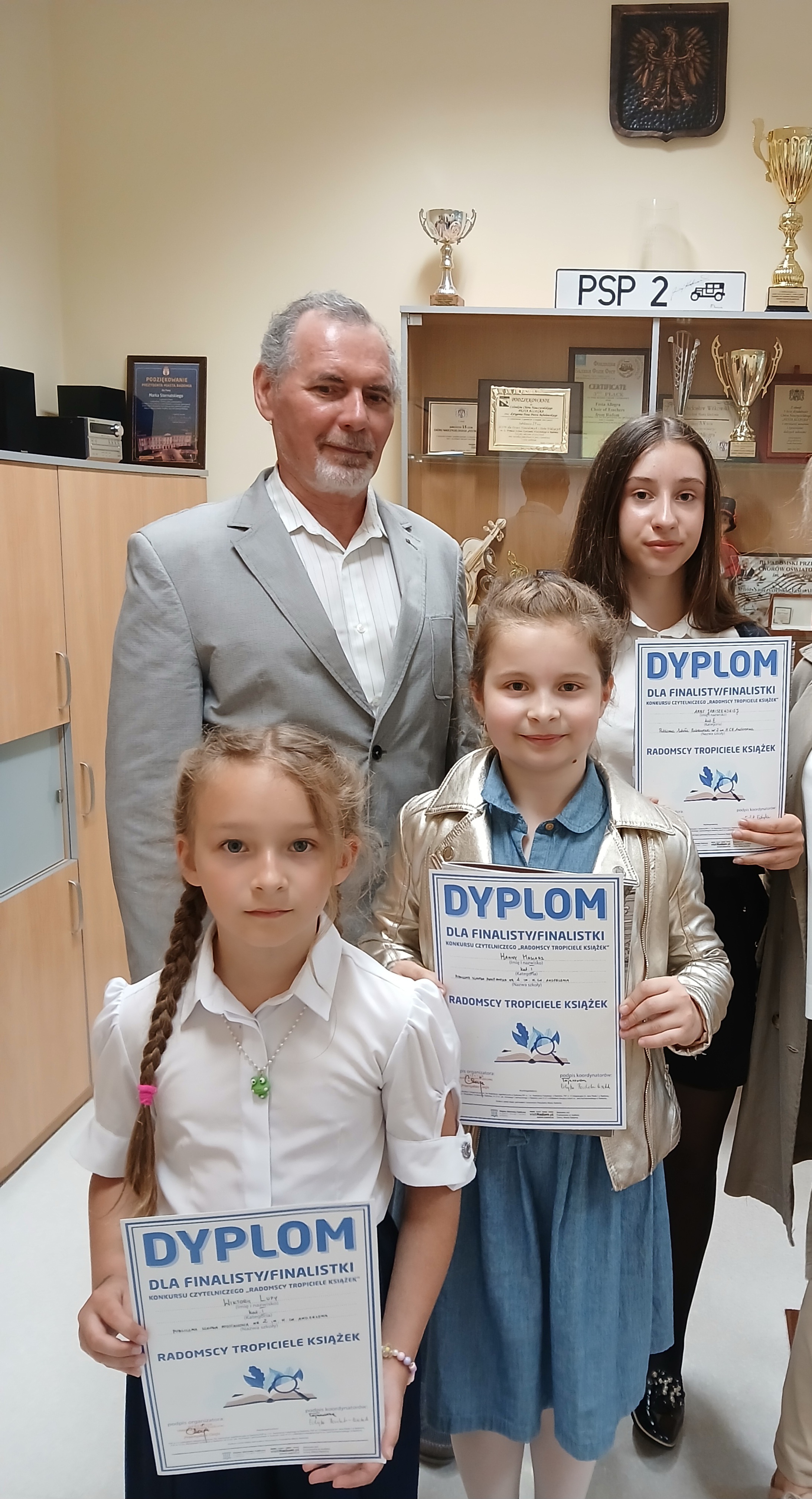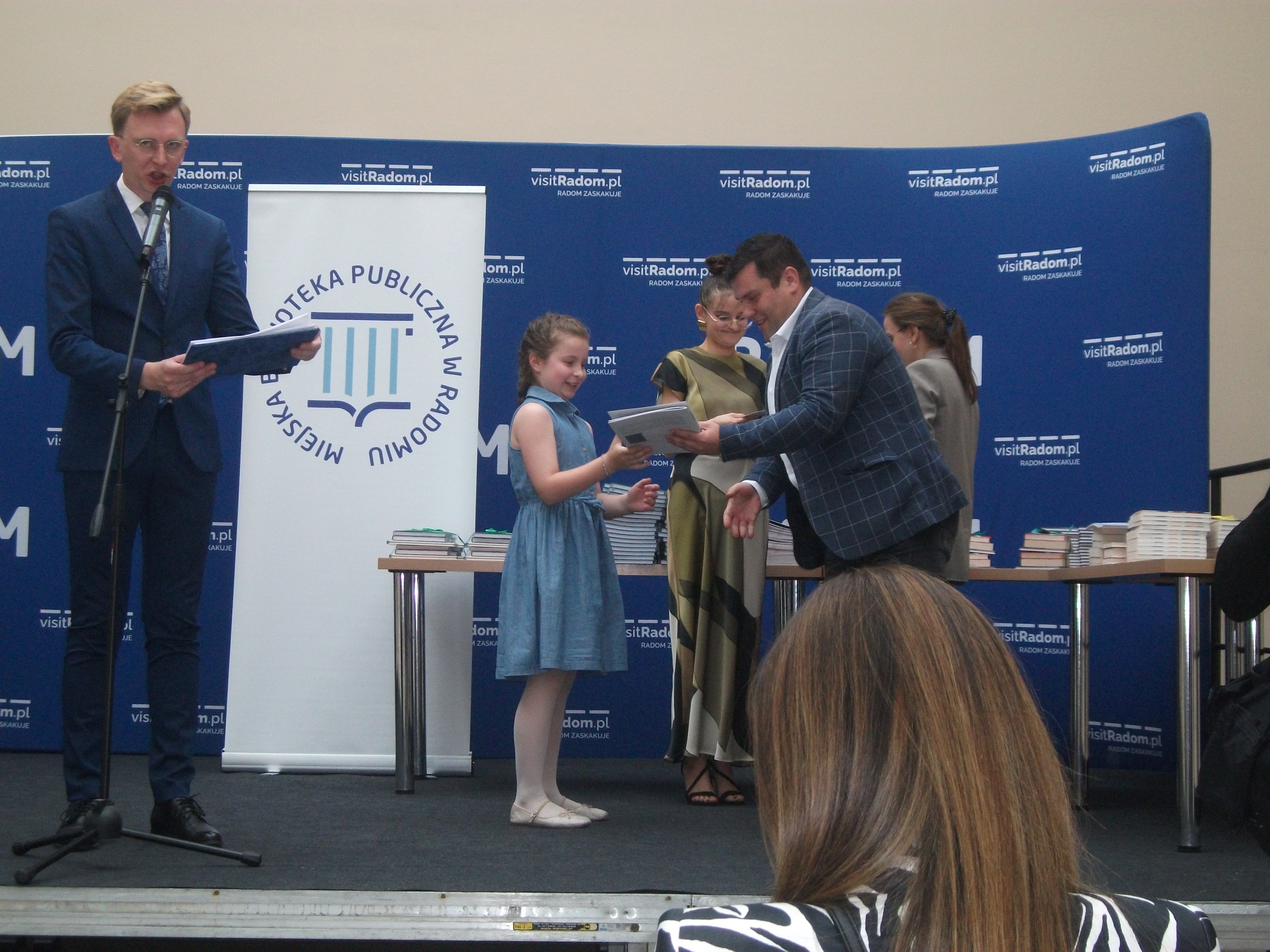 23 maja w Kamienicy Deskurów odbyła się uroczysta gala wręczenia nagród finalistom i laureatom II Edycji konkursu czytelniczego Radomscy Tropiciele Książek. Na uroczystość przybyli uczniowie wraz ze szkolnymi opiekunami, nauczycielami oraz rodzicami. Miło nam poinformować, że po niełatwych zmaganiach, czterech konkursach szkolnych i konkursie finałowym oraz dużej konkurencji (ponad 700 uczniów) - trzy uczennice z naszej szkoły zostały finalistkami: Hanna Masiarz z kl. 2a, Wiktoria Lupa z kl. 3a i Anna Janiszewska z kl. 5b. Dyplomy oraz nagrody książkowe otrzymały z rąk dyrektora PSP 4 w Radomiu pana Łukasza Zawistowskiego.