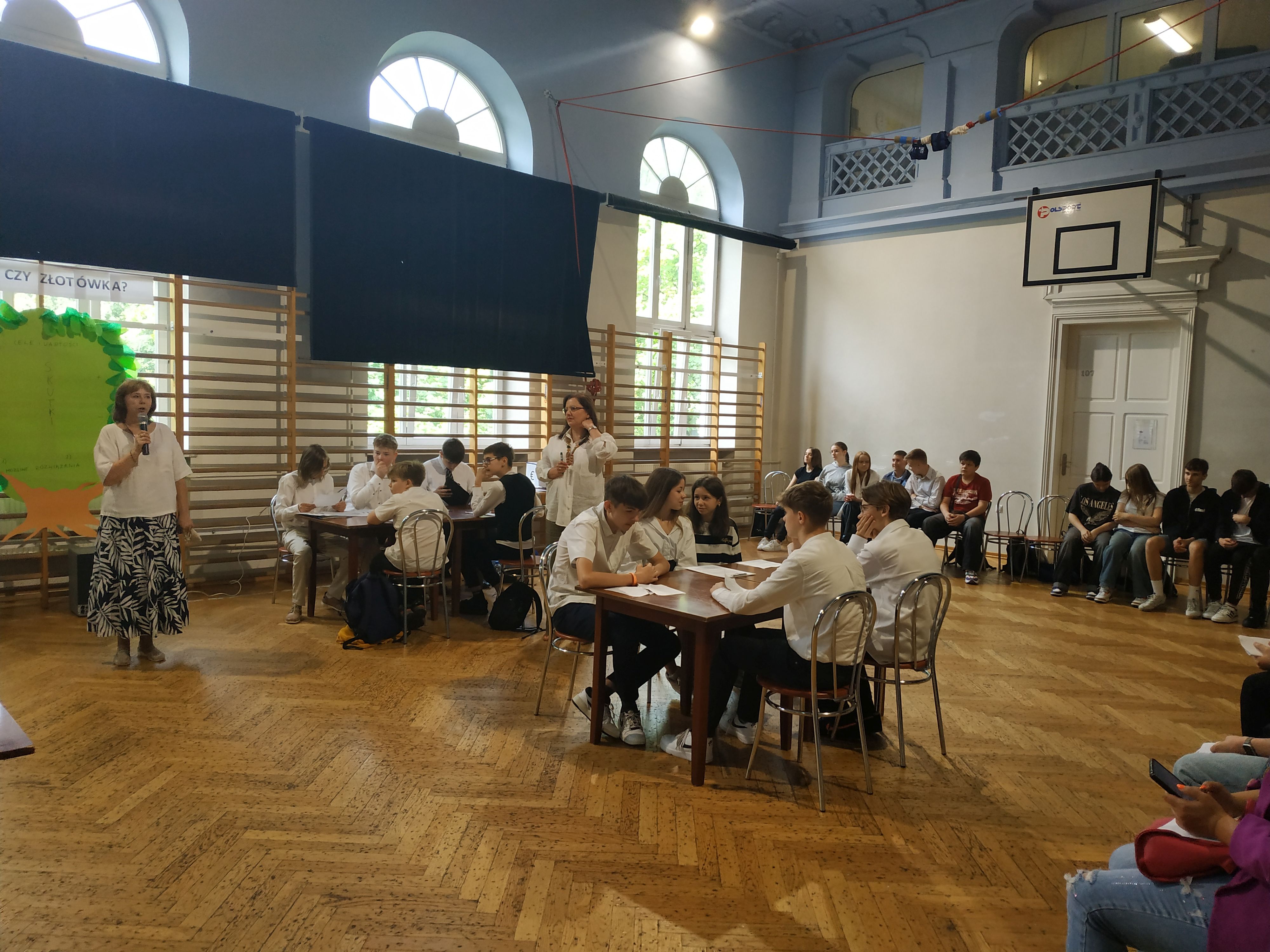 W ramach spotkania odbyła się ciekawa i burzliwa debata pt. "Euro czy Złotówka". Uczniowie wykazali się dużą wiedzą i znajomością tematu, przedstawiając interesujące argumenty zarówno za zachowaniem złotego polskiego, jak i za wprowadzeniem euro. Dyskusja była dynamiczna i angażująca.