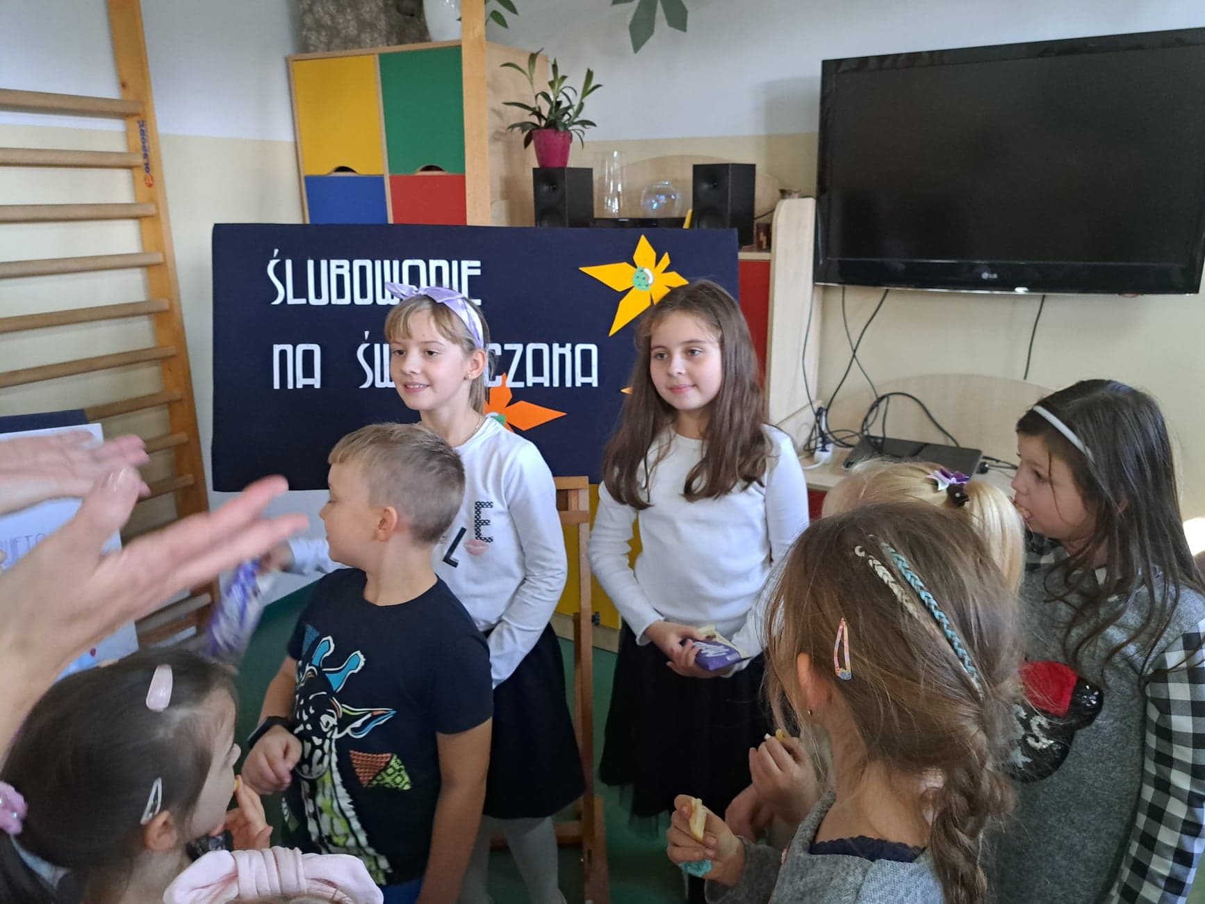 W dniu 28 października w świetlicy szkolnej odbyła się uroczystość „Ślubowanie na Świetliczaka”. Głównym celem tego wydarzenia było przyjęcie do grona Świetliczaków uczniów klas pierwszych i zerówki. Podczas uroczystości uczniowie brali udział w zabawach, próbach i zgadywankach, z których rozwiązaniem nie mieli najmniejszych problemów. Były również tańce i śpiewy. Uroczystość przebiegła w bardzo miłej i wesołej atmosferze. Na koniec uczniowie złożyli uroczystą przysięgę oraz „podpis” pod kodeksem Świetliczaka poprzez odciśnięcie na nim swojego odcisku palca.