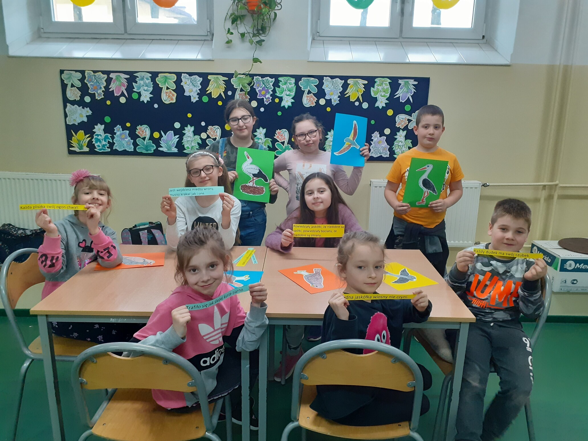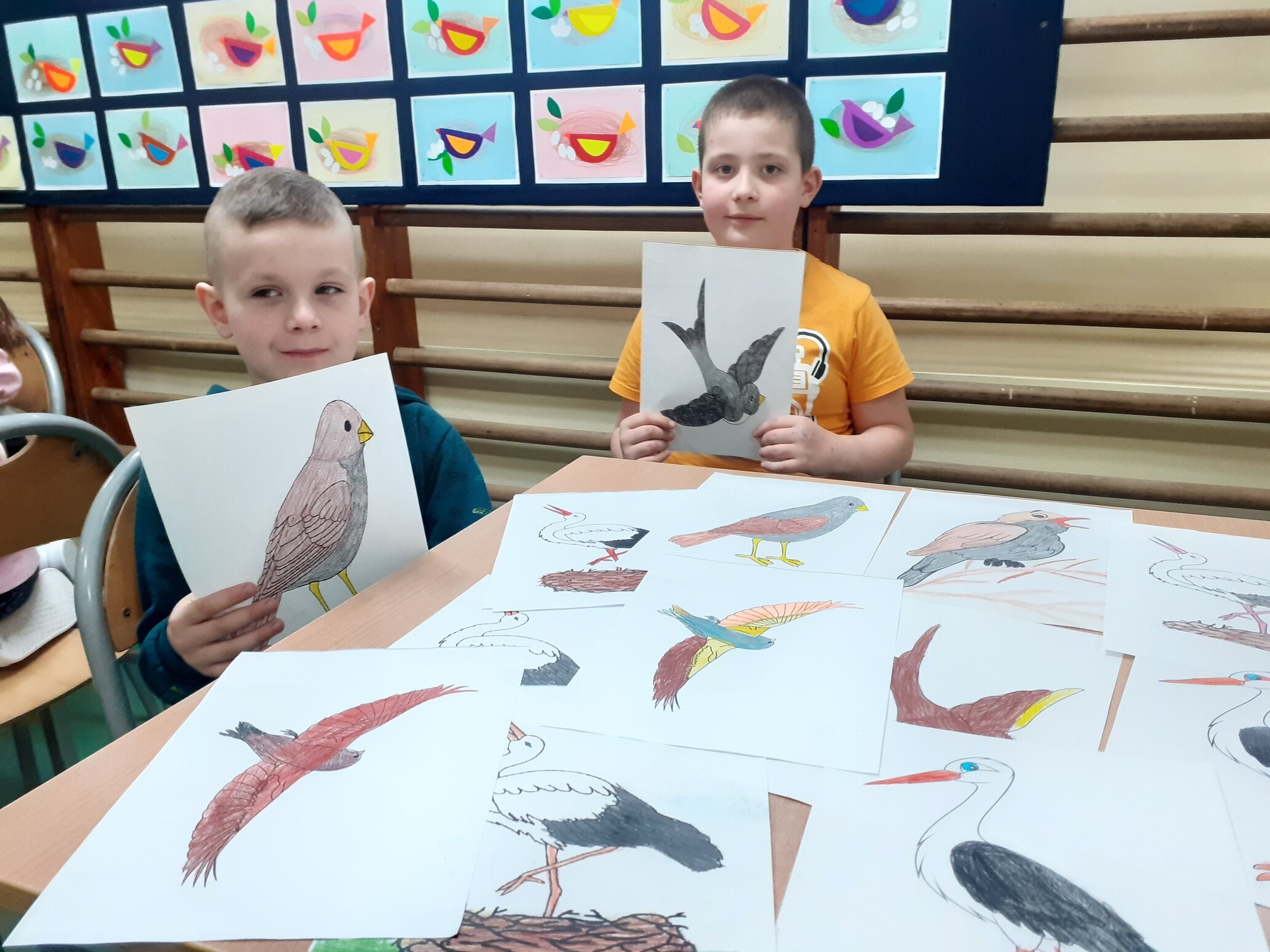 Ile jaskółek wiosnę zwiastuje? Świetliczaki obejrzały film dotyczący różnych gatunków ptaków, omówione zostały przysłowia związane z nimi. Dzieci wykonały prace plastyczne przedstawiające wybranego ptaka.
