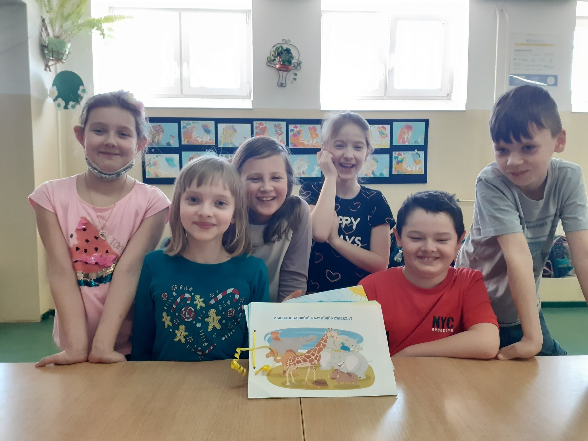 Kto na podium dzisiaj stanie? Rekordy zwierząt - dzieci z zainteresowaniem oglądały albumy i filmy dotyczące ciekawostek z życia zwierząt. Następnie wykonały prace plastyczne wybraną techniką, z których powstała księga rekordów „Naj” wśród zwierząt.